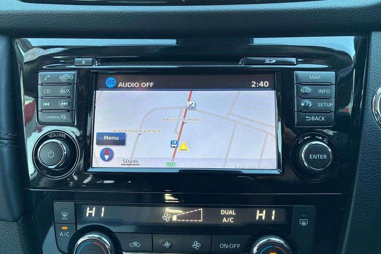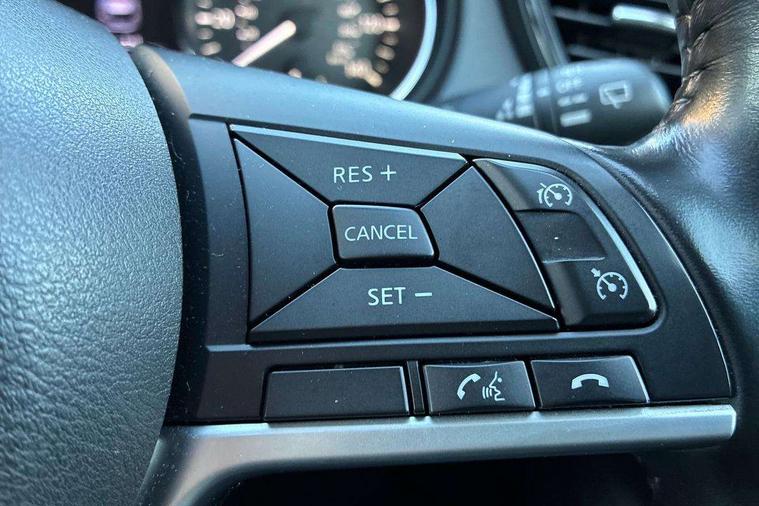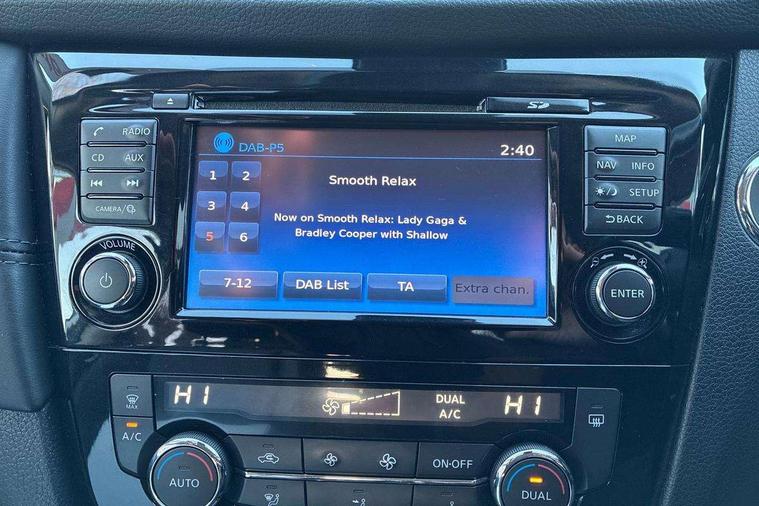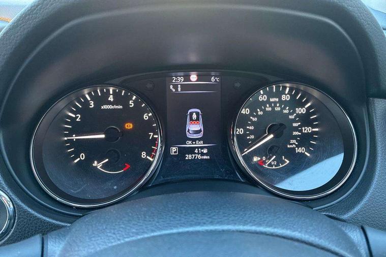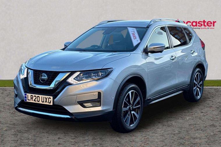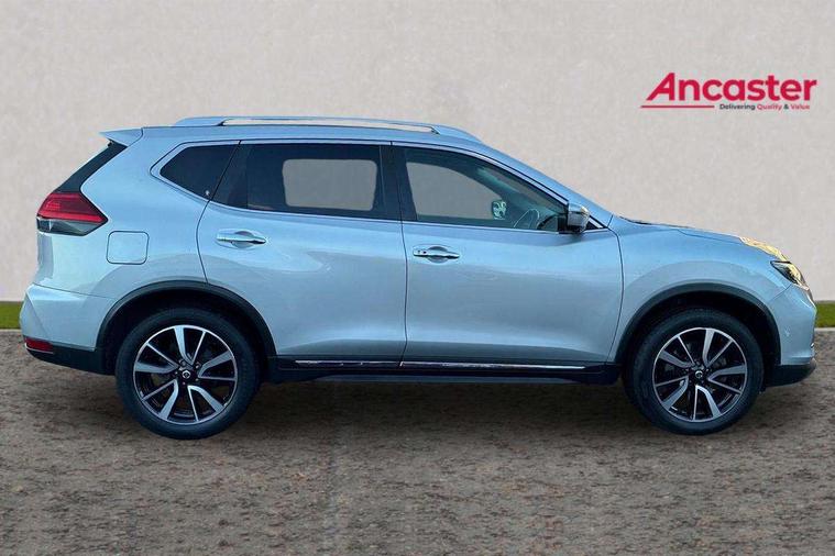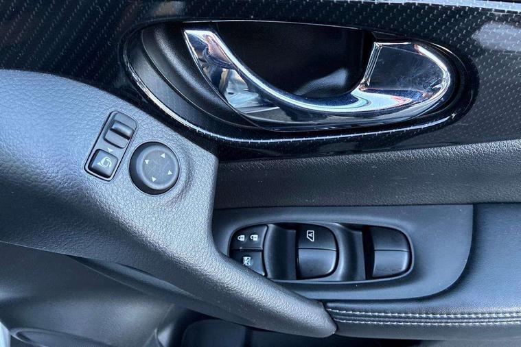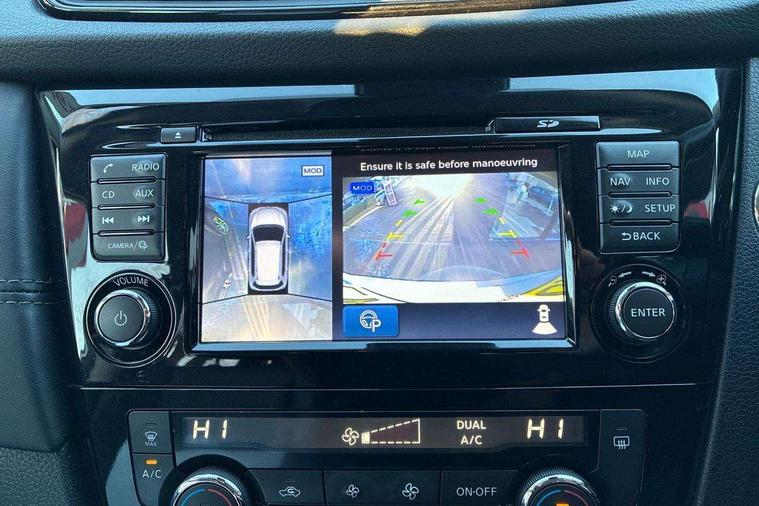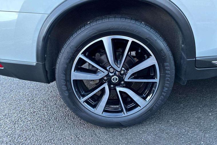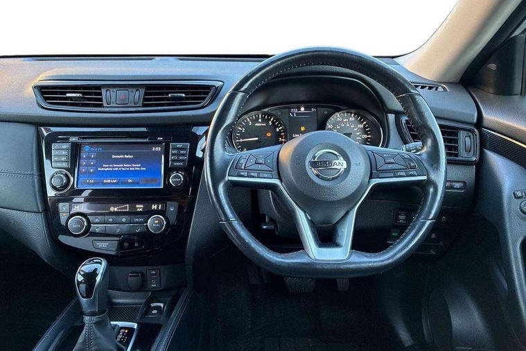 5" TFT driver information centre, Automatic tailgate opening, Blind spot monitoring, Bluetooth phone integration system, Cruise control + speed limiter, Driver attention alert system, Front and rear parking sensors, Intelligent around view monitor, Intelligent parking assist, Lane departure warning system, Moving object detection, Nissan connect evo 7" touchscreen navigation and entertainment system, PAS, Push button start, Rear cross traffic alert, Traffic sign recognition, Trip computer, Nissan chassis control (intelligent ride control, intelligent trace control, intelligent engine brake), DAB Digital radio, Radio/CD, Smartphone apps, Steering wheel mounted audio controls, USB/aux input socket, Adaptive front lighting system, Anti dazzle rear view mirror, Automatic headlights, Automatic rain sensing wipers, Black honeycomb front grille, Body colour door mirrors, Chrome door handles, Chrome side mouldings, Chrome window surround, Electric folding door mirrors, Electric heated door mirrors, Front and rear electric windows, Front fog lights, LED daytime running lights, LED Headlights, Panoramic sunroof with one touch shade, Rear privacy glass, Satin silver roof rails, Shark fin roof aerial, 3 rear headrests, 60/40 split rear bench seat, Centre console storage box/armrest, Configurable luggage board system, Driver's electric lumbar adjustment, Dual zone climate control, Electric adjustable front seats including height adjust, Front and rear door pockets with bottle holders, Front cupholders, Front/rear armrests, Heated front seats, Heated rear seats, Height adjustable front headrests, Individual rear reading lights, Isofix child seat attachment, Leather D shaped steering wheel, Leather steering wheel and gear knob, Pollen filter, Tilt/telescopic adjustable steering wheel, 3 point seatbelts on all seats, 6 airbags - Driver, front passenger, curtain and side airbags, ABS, Child locks on rear doors, EBD + Brake Assist, Electric parking brake, ESP + traction control, Intelligent emergency braking with pedestrian recognition, Seatbelt warning, Tyre pressure monitoring system, Immobiliser, Intelligent Key, Remote central locking, Thatcham Cat.1 alarm, Full size spare wheel,