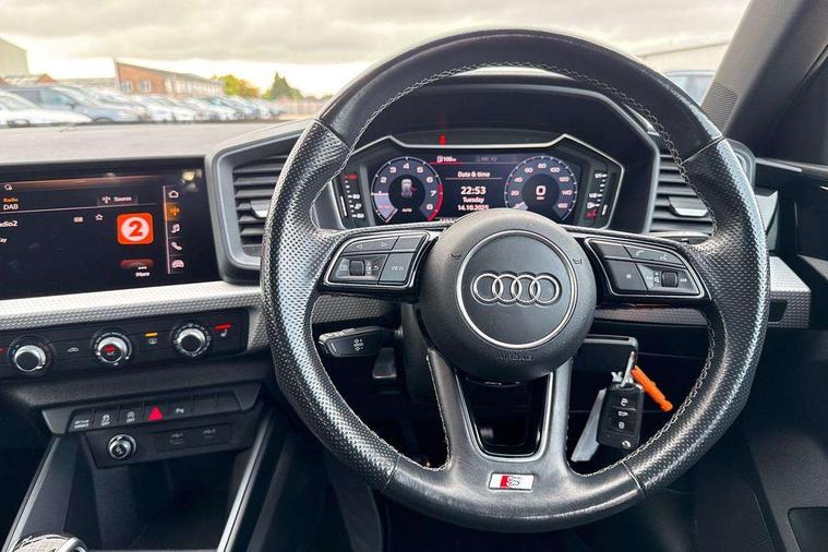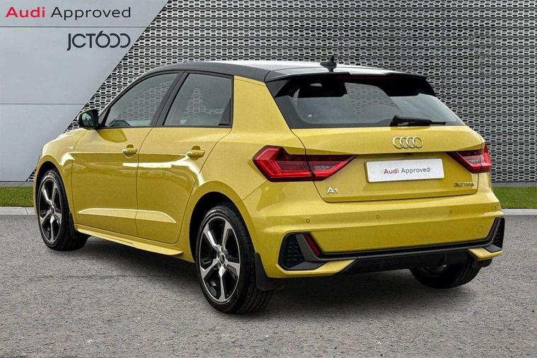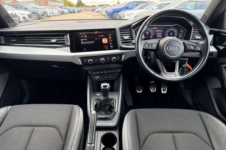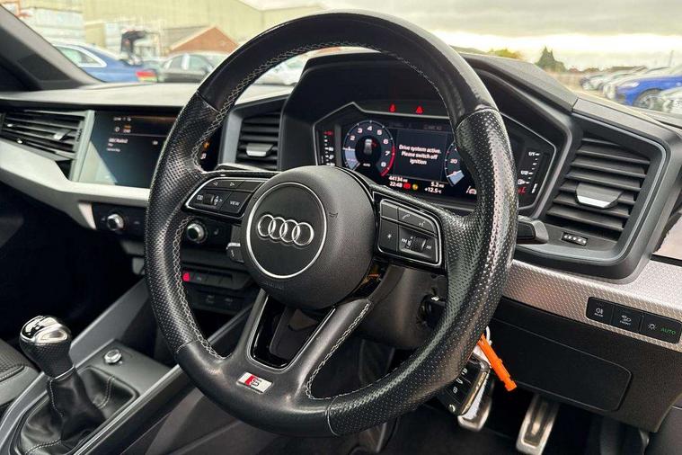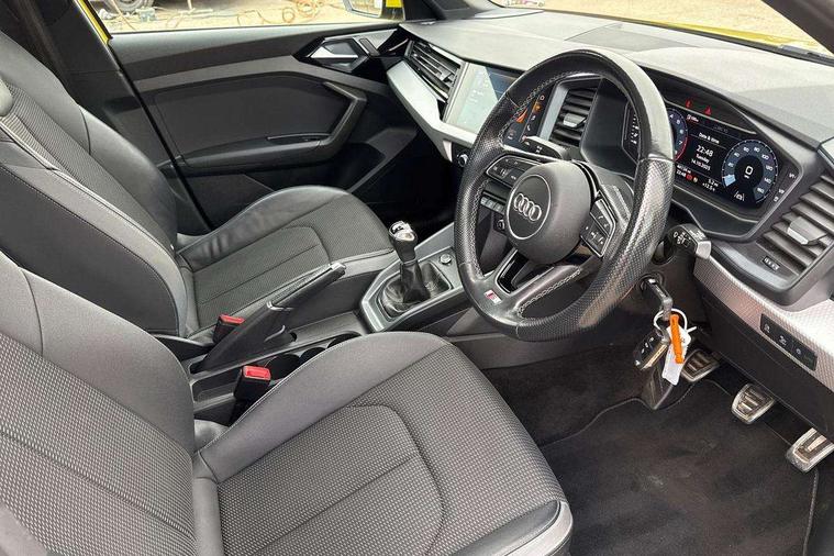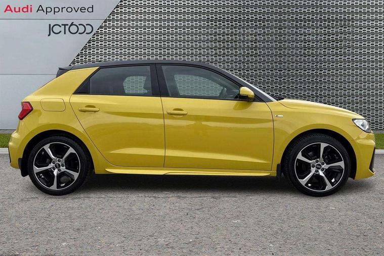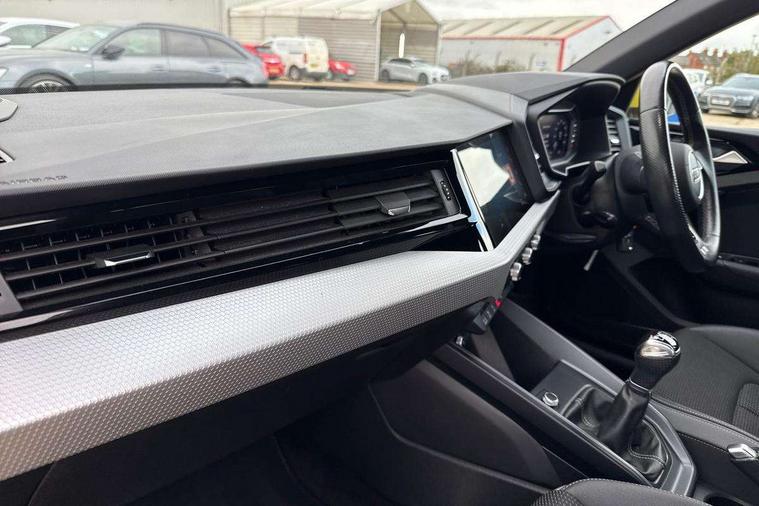 10.25" Digital instrument cluster display classis style instrument dials + speed, odometer, time, outside temperature, telephone menu + fuel level warning, Audi connect safety emergency and service including E-call, Audi drive select - power steering assistance + engine, Audi smartphone interface with connect compatible smartphone via USB directly MMI display + Nav, music, third party apps controlled via MMI controller, Automatic start/stop system, Bluetooth interface, Cruise control, Driver's information system, Electromechanical power steering, Lane departure warning system, Service interval indicator, Speed limiter, Voice control system, Washer fluid level indicator, Sports suspension, 1 x SDXC card reader, 2 x USB type C connection points, DAB Digital radio, MMI radio plus with 8.8" colour MMI display screen and MMI touch, Auto dimming rear view mirror, Body coloured door mirrors, Door sills with aluminium inlays and S Line logo, Electric front and rear windows, Electrically adjustable, heated, folding door mirrors with integrated LED side indicator, Front side air inlets in grained matt black and C frame in titanium black, Heat insulating glass windscreen and side windows, Heated rear windscreen, LED headlights with LED rear lights + dynamic rear indicators + headlight adjustment and high beam, turning light + LED daytime running lights, Radiator grille and rear diffuser in matt titanium black, Radiator protective grille frame in matt aluminium silver, Rain and light sensors, Rear fog lights, Rear wiper, S line badges on front wings, Side front spoiler lips in grained matt black, 12V socket in centre console with two cup holders, 3 rear seats with headrests, 40:60 Split folding rear seat or folded fully, Black cloth headlining, Driver and passenger seat with manual height adjust with forward and backwards adjustment, Front and rear black floor mats with contrast stitching in fine silver, Front head restraints, Height and reach adjustable steering wheel, ISOFIX child seat mounting for front passenger and outer rear seats including top tether attachment point of outer rear seats, Leather gear knob with aluminium trim, Luggage compartment light with front and rear reading lights, Manually adjustable lumbar support in front seats, Stainless steel pedals, LED interior lighting pack - A1, Luggage compartment pack - A1, S line exterior styling pack - A1 Sportback, 3x3 point rear seatbelts, Audi pre-sense front with pedestrain and cyclist recognition, Brake assist function, Driver and front passenger airbag with front side and head airbags, Electronic Stability Control including ABS, EBD, ASR and EDL, Front and rear seatbelt reminder, Front passenger airbag deactivation switch, Hill hold assist, Seatbelt height adjustment for front seats, Seatbelt monitoring, Tyre pressure warning light, Warning triangle and first aid kit, Anti theft alarm, Anti theft wheel bolts and loose wheel warning, Immobiliser, Remote central locking with 2 foldaway keys, Aluminium trim for control switches, air vents and digital instrument cluster, Silver grey inlays polygon structure in diamond paint finish, Structured grey accent areas including air vents, door handle recesses and centre console in quartz paint finish,
