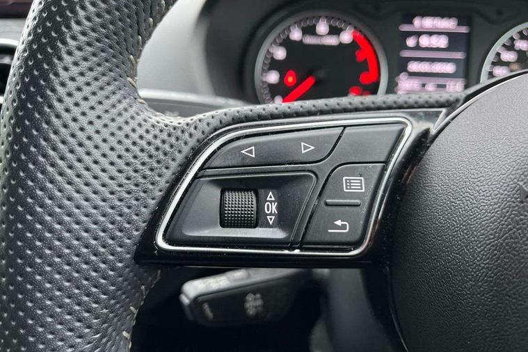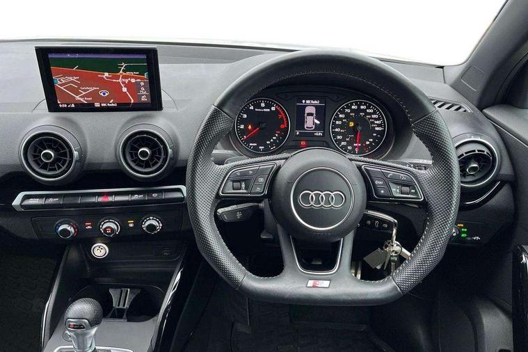 Aluminium interior element, Black inlays - decorative trims in black for centre console and front and rear door pull handles, Black styling pack - Q2, LED interior lighting pack - Q2, Non smoking pack - Q2, Anti theft alarm, Anti theft wheel bolts, Central locking system with remote control key, 2 x SDXC card reader, Audi music interface - apple iPod, apple iPhone, USB storage media, compatible MP3 players, 2 x USB charging points and 1 x Aux-in, CD Drive, DAB digital radio and AM/FM radio, MMI radio plus with 7" colour MMI screen and MMI controller, 3x3 point rear seatbelts, 6 airbags - Front, curtain and front side airbags, Electromechanical parking brake, Electronic stabilisation control including ABS, ASR and EDL, Extended and proactive pedestrian protection, Hill hold assist, Multi collision brake assist, Pre-sense front with pedestrian recognition, Seatbelt monitoring, Tyre pressure warning light, Warning triangle and first aid kit, Black window trims, Bumper in full body colour paint finish, Chrome exhaust tailpipe, Electrically adjustable and heated door mirrors with integrated LED side indicators, Front and rear electric windows, Front underbody guard and rear diffuser trim in selenite silver, Front windscreen with grey tinted sunband, Headlight washers, Interior mirror, LED headlights with LED rear lights + dynamic rear indicators, LED indicator lights, Manual folding door mirrors, Privacy glass - dark tinted rear and rear side windows from B-pillar backwards, Rain and light sensors, Rear wiper, S Line body styling - front and rear bumpers, side skirts, radiator grille, rear diffuser insert and front air intakes, 3 spoke flat bottomed high multi-function leather sport steering wheel with gearshift paddles, 60/40 split folding rear seat bench, Black cloth headlining, Electronically operated child locks, Floor mats with contrast stitching, Front centre armrest, Front headrests, Front sport seats with S embossed logo, Height/reach adjust steering wheel, Illuminated door sill trims with S logo, ISOFIX child seat mounting for front passenger with airbag deactivation and outer rear seat including top tether attachment point for outer rear seats, Manual seat adjustment including seat height adjustment for front seats, Stainless steel pedals, Storage compartments - Glovebox, cupholder compartment in centre console, storage compartment in rear centre console, front and rear door pockets, Three rear headrests, Audi drive select, Audi smartphone interface, Automatic start/stop system with recuperation, Bluetooth interface includes bluetooth audio streaming, Cruise control, MMI - Multi Media Interface control system, MMI SD card integrated nav with 3D map display, dynamic route guidance with TMC, MMI search, natural voice recognition and myAudi special destinations, Power operated tailgate, Progressive steering, Service interval indicator, Dynamic suspension,