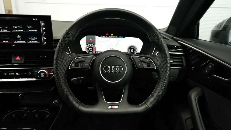 Audi connect safety and service (e-call), Audi drive select, Audi smartphone interface, Audi virtual cockpit, Automatic start-stop system with coasting functionality and efficiency programme, Bluetooth interface, Camera based traffic sign recognition, Electromechanical power steering, Email, calendar and text messages displayed via MMI, Front and rear parking sensors, Lane departure warning, MMI Navigation plus with MMI touch includes 10.1" high resolution colour MMI display, 3D map, Power operated tailgate, Rear view camera, Voice control system, 54 litre fuel tank, Sports suspension lowered by 23mm, 2 USB charging ports, 8 passive loudspeakers, DAB digital radio reception, Audi beam uses LEDs to project the audi logo onto the ground as you exit your A4, Auto dimming rear view mirror, Black Audi rings and black badging (with removed engine badging), Body colour door handles, Body colour front spoiler lip, Body colour side sill trim, Electric adjustable/heated/folding door mirrors with auto dimming, Exhaust tailpipes in dark chrome, Grained matt black side air inlets with matt aluminium silver inlay, High beam assistant, High gloss black B pillar trims and triangular rear door trim, LED headlights with LED rear lights + dynamic rear indicators + headlight adjustment and high beam, turning light + LED daytime running lights, LED third brake light, Privacy glass, Rain and light sensors, Rear diffuser in matt black with trim strip in matt aluminium silver, Rear side wing doors, Rear wiper, RS4 rear spoiler in body colour, S Line roof edge spoiler, Sport front and rear bumpers with side skirts, Variable intermittent front wash/wipe, Windscreen with acoustic glazing, 4 way electric lumbar support for driver and front passenger, 40/20/40 split folding 3 rear seat bench in 3 parts with rear centre armrest, Black carpets, Black cloth headlining, Black perforated leather gearknob, Contrast stitching on seats, steering wheel and gear lever gaiter, Deluxe 3 zone electronic climate control, Electric load area cover, Front and rear head restraints, Front centre armrest, Heated front seats, Illuminated door sill trims with S logo, ISOFIX child seat mounting and top tether, Manual seat adjustment, Single front passenger seat, Stainless steel pedals and foot rest, Black styling pack - A4 Avant, LED Interior light pack - A4/S4, 3 rear seatbelts, 6 airbags - Driver, front passenger, curtain and side windows, Attention and drowsiness assist, Electronic Stabilisation Control (ESC) including ABS, ASR and EDL, Hill hold assist, Multi collision brake assist, Pop-up bonnet for pedestrian protection, Pre sense city, Rear door child safety locks, Seatbelt monitoring, Warning triangle and first aid kit, Anti theft alarm, Anti theft wheel bolts, Central locking, Keyless Go, Piano black finish inlay, Tool kit, Tyre repair kit,