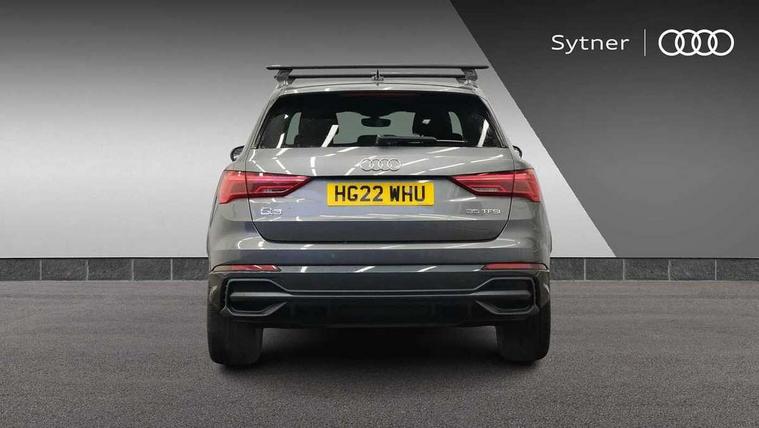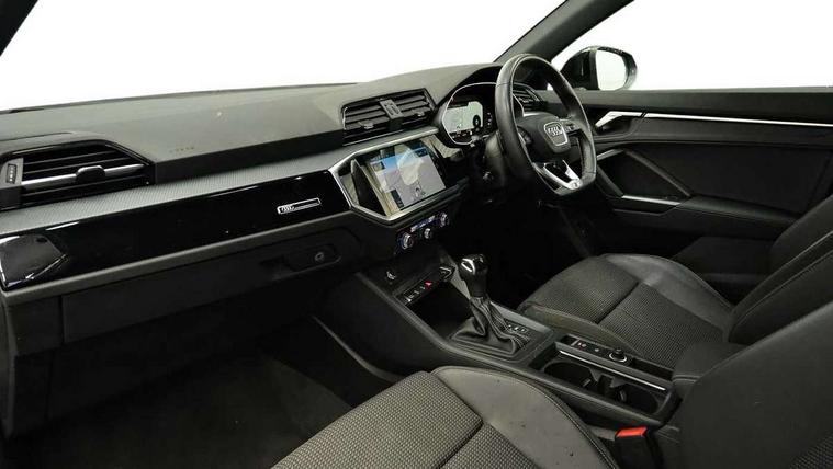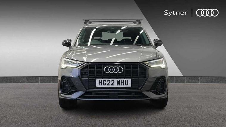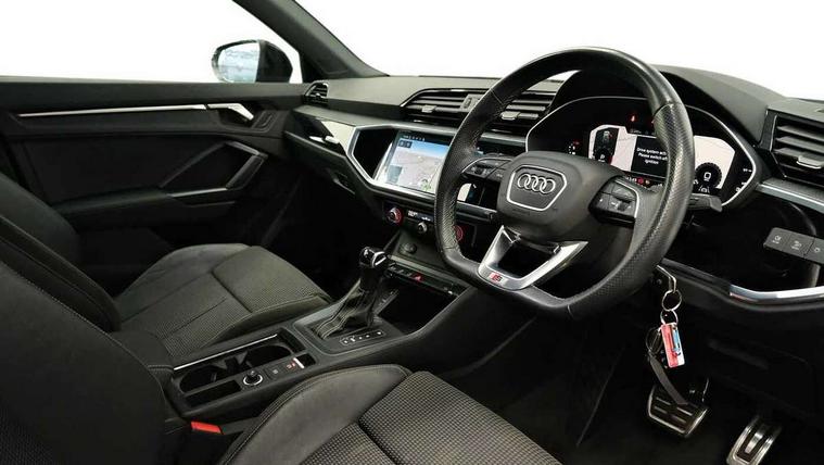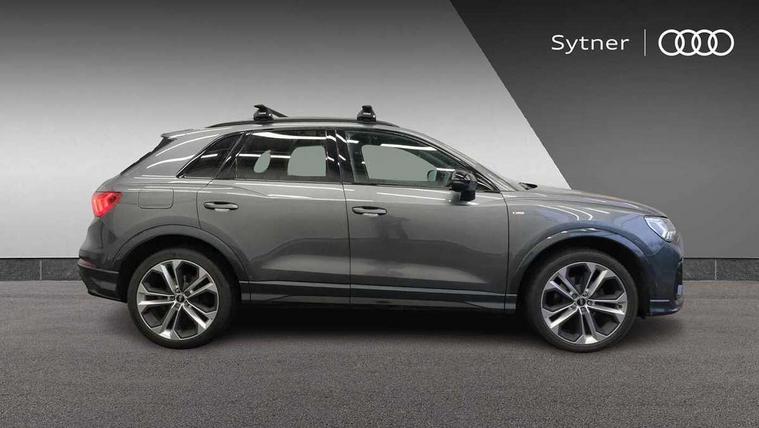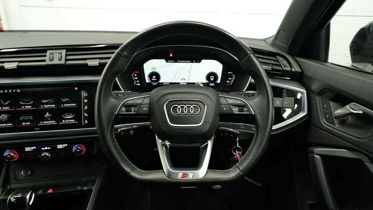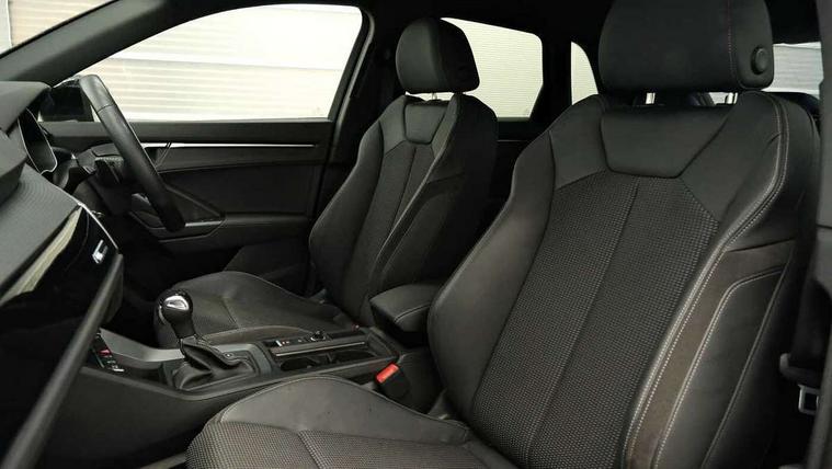 Amazon alexa Integration, Audi drive select, Audi lane departure warning, Audi smartphone interface includes wireless Apple carplay/Android Auto, Audi Virtual Cockpit - 10.25" display, Bluetooth interface, Camera based traffic sign recognition, Legal emergency call, MMI Navigation Plus with high resolution 10.1 inch touchscreen colour display, Power operated tailgate, Progressive steering, Service interval indicator, Start stop system with recuperation, Voice control system with natural language interaction, Sports suspension, 2 USB-C ports with charge and data functions, 6 passive loudspeakers, DAB digital radio module, Acoustic windscreen, Auto dimming frameless rear view mirror, Black roof rails, Electrically folding, adjustable and heated door mirrors with integrated LED side indicators and kerb view function for passenger side, Front and rear electric windows, Front fog lights, Grille vertical bars in aluminium silver/Matt, High gloss black finish B and C pillars, LED headlights with LED daytime running lights, LED rear lights, LED third brake light, Privacy glass dark tinted rear and rear-side windows (from B-pillar backwards), Rain and light sensors, Rear diffuser grille in grained matt black, Rear diffuser strip in matt titanium black, Rear side wing doors, Rear wiper, S line bumpers in contrasting Manhattan grey, Variable front intermittent wipers, 12V socket in rear centre console, 3 seat bench in 2nd row, 40:20:40 folding with manual adjustment for 60:40 forwards/backwards position and backrest angle, Adjustable rear seat bench/backrest with centre armrest and cupholder, Black cloth headlining, Dual zone electronic climate control, Front and rear black floor mats with contrast stitching in rock grey, Front and rear headrests, Front and rear roof module including reading lights, Front centre armrest, Glove compartment lighting, Height and reach adjustable steering wheel, Illuminated door sill trims with S logo, ISOFIX child seat mounting for front passenger with airbag deactivation and outer rear seat including top tether attachment point for outer rear seats, Luggage compartment light, Manual front seats with height adjustment, Perforated leather gearknob, Single front passenger seat, Stainless steel luggage compartment sill finisher, Stainless steel pedals, Black styling pack - Q3, Non smoking pack - Q3, 3x3 point rear seatbelts, 6 airbags - Driver, front passenger, curtain and side windows, Electromechanical parking brake, Electronic stabilisation control including ABS, ASR and EDL, Front seatbelt reminder, Hill descent control, Hill hold assist, Manual child lock in rear doors, Pre sense basic, Seatbelt monitoring, Tyre pressure warning, Warning triangle and first aid kit, Anti theft alarm, Anti theft wheel bolts, Audi pre-sense front with pedestrain and cyclist recognition, Immobiliser, Remote central locking, Leatherette door armrest, MMI touch colour display in glass look, black with surround in aluminium look, Piano black inlay,