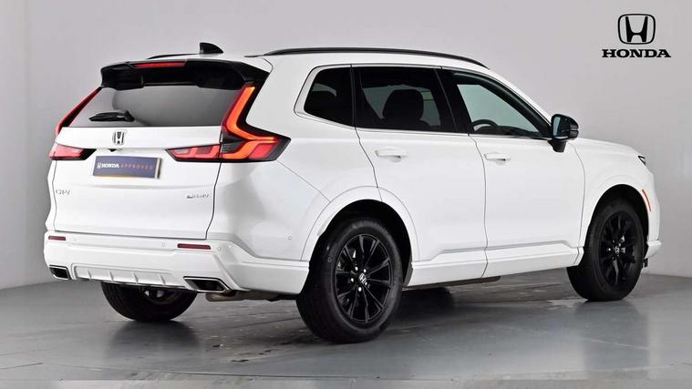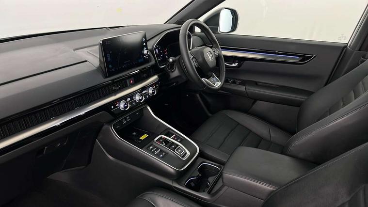 10.2" Multi information display, 4 x front 4 x rear 4 x side parking sensors, Active lane change assist, Adaptive cruise control with Cornering speed assist, Adjustable speed limiter, Agile handling assist, BLIS (Blind Spot Information System) with Cross Traffic Monitor, Bluetooth hands free telephone connection, Crossing traffic warning front, Drive Mode (EV, Econ, Sport, Normal, Snow, Tow), Driver attention monitoring system, E-call, eCall emergency call system, Electric power steering, Emergency stop signalling system, Forward collision warning, Handfree power tailgate with kick sensor and walk away close, Head up Display, HEV mode, Honda 360 sensing, Honda CONNECT navigation with My Honda+ 9" touchscreen, AM/FM/DAB, Apple Carplay and Android Auto, live traffic info, Honda parking pilot, Intelligent speed limiter, Lane change collision mitigation, Lane departure warning system, Lane keep assist system, Lane watch, Lead car departure notification system, Low speed following, Power meter, Road departure mitigation, Traffic jam assist, Traffic sign recognition, Wireless apple carplay, Wireless charging, Adaptive performance damper, Vehicle stability assist, 12 speakers, 1X USB (A/2.5A) and 1x Charger (C/3A) on Front, Bose premium sound system, Centre speakers, DAB+ radio, Dashboard centre speaker, Front tweeters, Rear USB 2x Charger (C/3A), Steering wheel mounted controls, Subwoofer, Active cornering lights, Adaptive driving beam, Auto dimming rear view mirror, Auto headlight adjuster, Auto headlights, Auto wipers, Black door mirror caps, Black paint + exculsive grille, Black Shark-fin antenna, Body colour bumpers, Body colour door handles, Body colour plus black colour roof spoiler, Electrically adjustable and heated door mirrors, Electrically folding door mirrors, Exhaust pipe finisher, Exterior mirror tilt for reverse, Front and rear electric windows, Front LED Indicator lights, Front turn type led with sequential, Headlight auto on/off timer, High gloss black window garnish, LED 3rd brake light, LED daytime running lights, LED front fog lights, LED Headlights, LED rear lights, Multi view camera system in door mirrors, Panoramic opening glass sunroof, Privacy glass, Rain sensor, Rear side wing doors, Rear wiper, Roof rails, Trailer stability assist, Welcome home function, 3 seat bench in 2nd row, 4 way driver lumbar support, 4 way electrically adjustable passenger seat without height adjust, 60/40 split folding rear seat, 8 way electrically adjustable drivers seat + mirror memory, Accessory sockets in Front & Trunk, Air conditioning - Rear vent, Ambient light in roof, Cargo net hooks, Courtesy lights, Dark roof lining, Driver and front passenger seat armrests, Driver/passenger front seatback pockets, Driver/passenger sunvisors and vanity mirrors, Driver/passenger sunvisors with illuminated vanity mirrors, Dual zone automatic climate control, Film layered honeycomb metal interior panels, Footwell ambient interior light front and rear, Front and rear ambient light (door handle&door line) and front cup holder, Front centre armrest, Front map lights, Front ventilated seats, Genuine leather steering wheel, Heated front seats, Heated rear seats, Heated steering wheel, Hybrid emblem, I-Size ISO Fix Points, Instrument panel with garnish wood film, Leather upholstery, Luggage floor box, Meter illumination, Platinum chrome interior door handles, Rear centre armrest, Rear headrests, Rear reading lights, Reclining rear seats, Single front passenger seat, Sport pedals, Sunglasses holder with mirror, Synthetic headrest, Tilt/telescopic adjustable steering wheel, Tonneau cover, Trunk light, Exclusive styling with sport paint pack - CR-V, 5 x 3 point seatbelts, ABS/EBD, Anti-whiplash front headrests, Brake assist function, Collision mitigation braking system, Deflation detection system, Driver airbag, Driver SRS airbag (single stage inflation), Electronic parking brake with auto hold, Front and rear collision mitigation throttle control, Front and rear curtain airbags, Front and rear seat belts with emergency locking retractor (ELR), Front centre airbag, Front passenger airbag, Front side airbags, Hill descent control, Hill start assist, Knee airbags (DR) and (AS), Low speed brake system, Manual child lock in rear doors, Paddle deceleration control, Passenger SRS airbag with cut off switch, Rear side airbags, Honda super locks, Immobiliser, Mirrors and windows key fob operation, Remote central locking with 2 key fobs, Security alarm, Selectable door unlock, Smart entry + Smart start, Tilt sensors, Ultrasonic security sensor, Flat tyre solution temper tyre/repair kit,