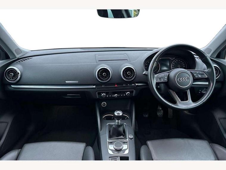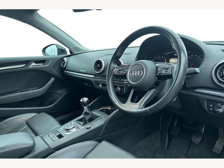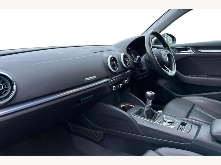 Audi connect, Audi drive select, Audi smartphone interface, Automatic start/stop system, Colour driver's information system display, Electro - mechanical power assisted steering, Mobile telephone preparation - bluetooth interface, SD card based satellite navigation system, Service interval indicator, Speed limit display, Voice control system, Voice recognition for navigation system, 2 USB interfaces and Aux-In jack, Audi music interface, CD player, DAB Digital radio, MMI radio plus with 7" colour MMI screen and MMI controller, Aluminium window trim, Auto dimming rear view mirror with light and rain sensors, Body colour bumpers, Body colour door mirrors, Body colour roof spoiler with aerodynamic inserts in high gloss black, Chrome exhaust tailpipes, Electric front windows, Electric rear windows, Electrically adjustable and heated door mirrors with integrated LED side indicators, Heated windscreen washer jets, Matt black radiator grille, Rear wiper, Sport specific side air inlet grille and diffuser insert, Xenon headlights with LED Daytime running light, 3 adjustable rear headrests, 4 lashing points to secure luggage, Adjustable front centre armrest, Aluminium door sill trims, Cloth headlining, Dual zone electronic climate control, Front and rear interior lights with delay, Front sports seats, Front/rear floor mats, Glovebox light, Height/depth adjustable steering column, Isofix child seat preparation for front passenger/outer rear seats inc passenger airbag deactivation, Rock grey headlining, Storage compartments in doors side trims, centre console and under front drivers seat, Non smoking pack - A3, 3 point seatbelts on all seats, ABS/EBD, Active bonnet, Active front headrests, Airbags - front driver/passenger, front & rear side, curtain, drivers knee, ASR, EDL, Electromechanical parking brake, ESC - Electronic Stability Control + traction control, Front passenger airbag deactivation, Hill hold assist, Manual rear child locks, Multi-Collision braking, Seatbelt warning, Tyre pressure warning, Warning triangle and first aid kit, Anti theft alarm, Anti-theft wheel bolts, Remote control central locking, Thatcham category 1 alarm + immobiliser, Aluminium air vent surrounds, Aluminium mistral silver inlay, Aluminium trim elements,