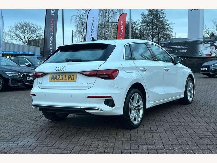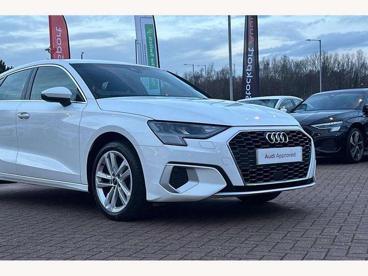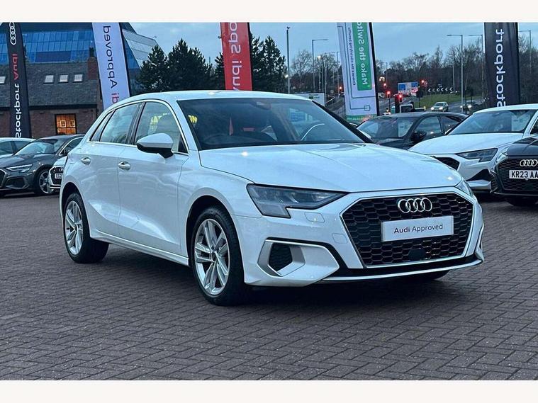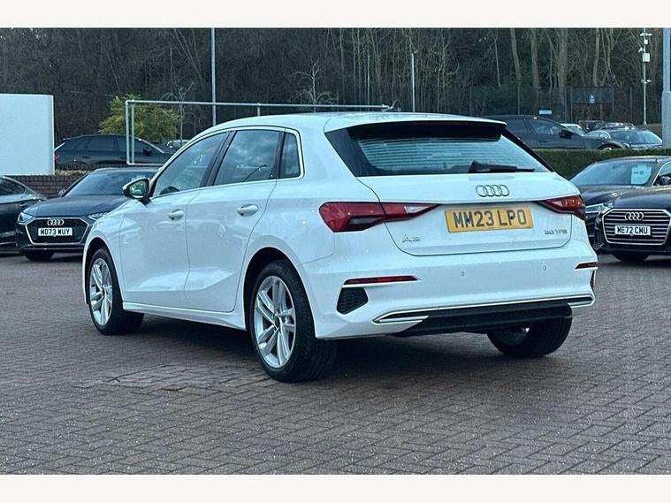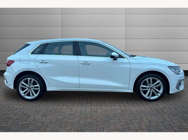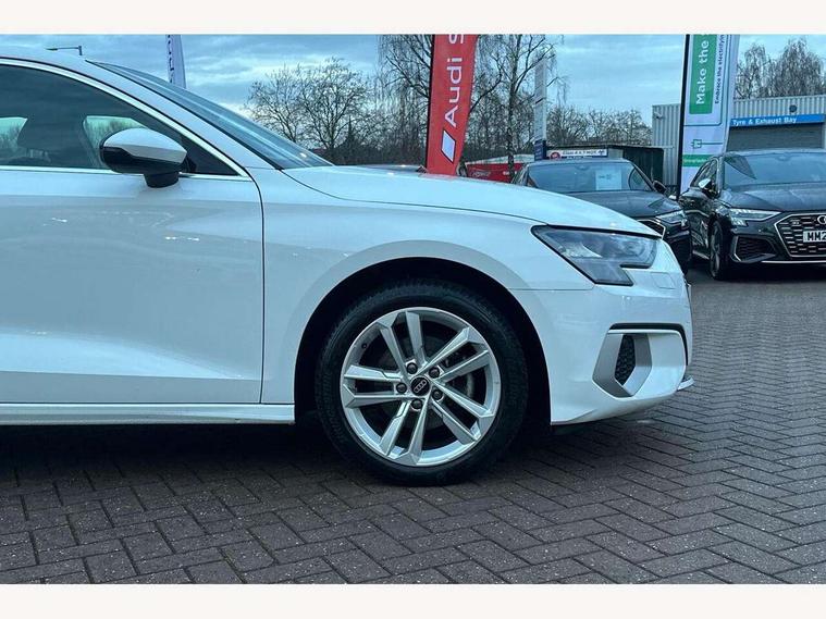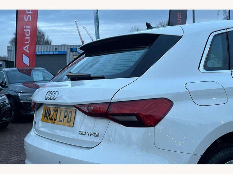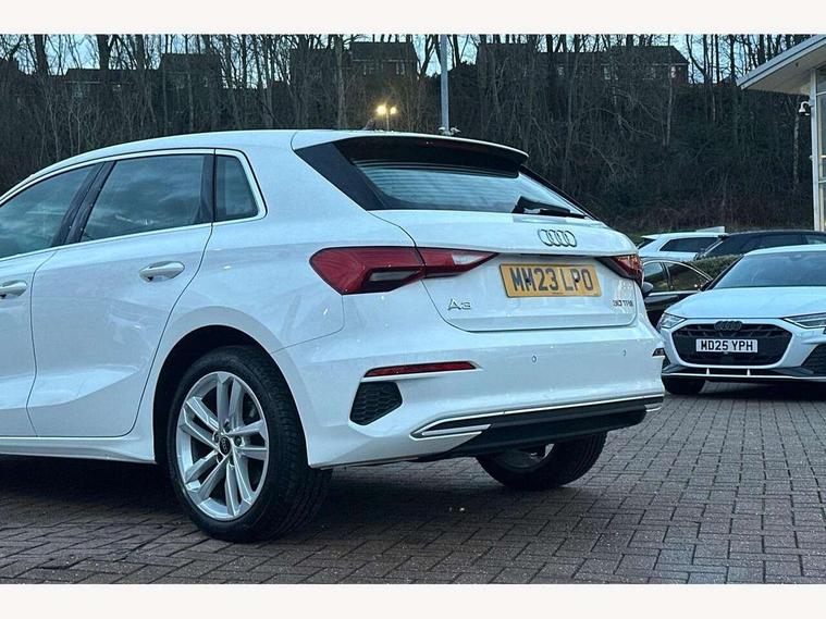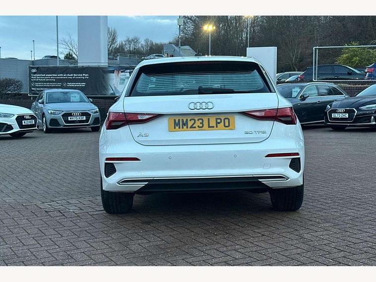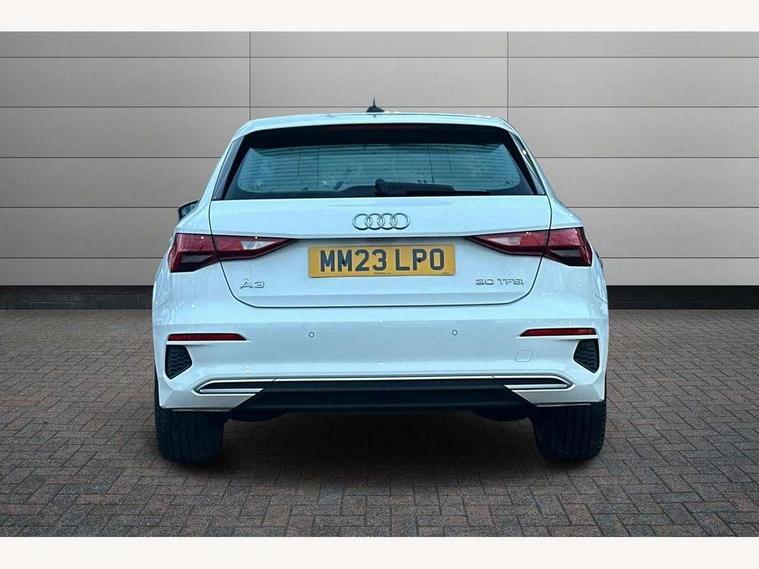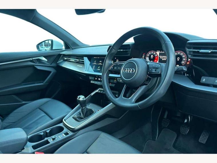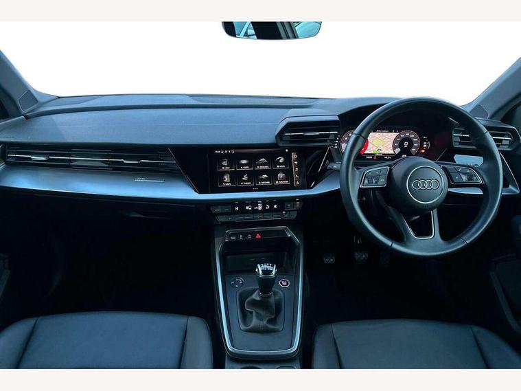 Audi drive select (Auto, Comfort, Dynamic and Individual), Audi smartphone interface, Audi Virtual Cockpit - 10.25" digital and colour instrument cluster, Automatic start/stop system with recuperation, Bluetooth interface, Camera based traffic sign recognition, Collision avoidance assistant, Cruise control, e-Call (emergency call), Electromechanical power speed sensitive steering, Lane departure warning system, MMI Navigation Plus with high resolution 10.1" colour touch screen display, Rear parking sensors, Service indicator, Trip computer, Voice control system with natural language interaction, Standard suspension, 2xUSB-C connection with data and charging functions, 6 passive loudspeakers, DAB Digital radio, 3rd brake light, Acoustic glass windscreen, Aluminium window trim, Auto dimming frameless rear view mirror, Body colour exterior mirrors, Body colour roof spoiler, Electrically adjustable/heated/folding/auto dimming door mirrors with integrated LED indications + kerb view function for passenger side, Front electric windows, LED daytime running lights, LED headlights and halogen rear lights, Light and rain sensors, Rear electric windows, Rear side wing doors, Rear window, rear door windows and rear side windows in clear glass, Rear wiper, 12V socket and storage compartment in front centre console, 3 seat bench in 2nd row, 3 spoke leather multifunction steering wheel, 4 way electrically adjustable lumbar support for driver and front passenger, 60/40 split folding rear seat bench, Dual zone electronic climate control, Front and rear headrests, Front centre armrest, Front door sill trims with aluminium inlay, Front/rear floor mats, Height and reach adjustable steering wheel, Interior lighting - Front and rear roof module including reading lights, glove compartment light and right hand side, Interior lighting - glove compartment light and right hand side, Luggage compartment floor covering, Manual boot compartment lid, Manually adjustable front seats, Routine cloth upholstery with front sports seats, Seat side bolsters, Single front passenger seat, Steel grey cloth headlining, Aluminium interior elements pack - A3 Sportback, LED interior lighting pack - A3 Sportback, Sport styling pack - A3 Sportback, 3x3 point rear seat belts, Driver and front passenger airbag with passenger airbag deactivation, Electronic Stabilisation Control (ESC) including ABS, ASR and EDL, First aid kit with warning triangle and 2 safety vests, Front side airbags with head airbags and interaction airbag, Pre-sense front with pedestrian and cyclist detection, Seatbelt monitoring, Tyre pressure loss indicator, Anti theft alarm, Anti-theft wheel bolts, Electronically operated child lock, Immobiliser, Remote control central locking, Inlays with silk effect paint in platinum grey,
