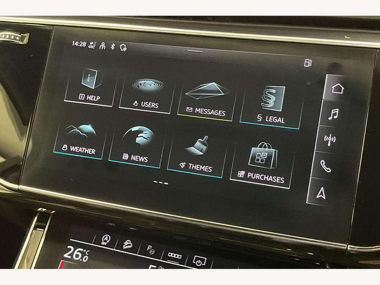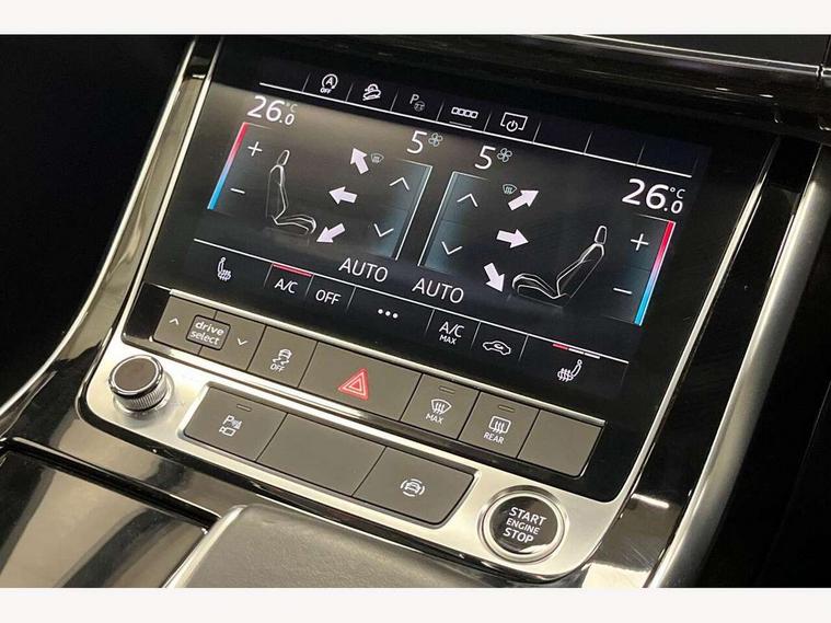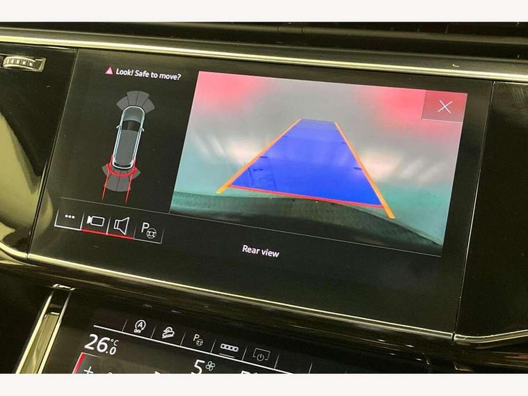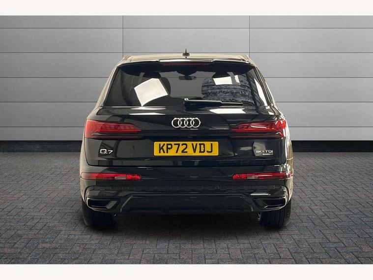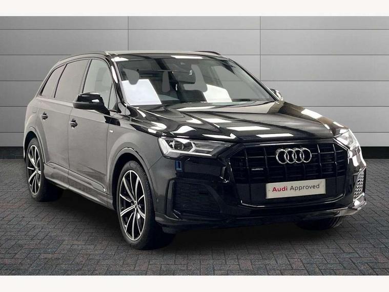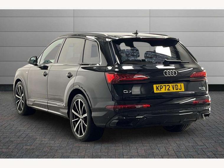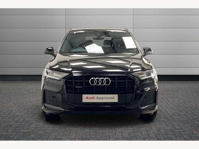Audi connect safety and service (e-call), Audi connect with Amazon Alexa Integration, Audi drive select (Auto, Comfort, Dynamic, Efficiency, Individual, Off-road and All road), Bluetooth interface, Camera based traffic sign recognition, Electromechanical steering, MMI navigation plus with MMI touch screens includes 10.1" and 8.6" screens with haptic feedback, Natural voice recognition, Parking system plus with 360 degree display (front, rear and side sensors) - acoustic and visual park assist system, Power operated tailgate, Rear view camera, Smartphone interface includes wireless Apple carplay/Android Auto, Start/stop system, 48V Mild hybrid technology, Adaptive air sports suspension, Quattro all wheel drive with self locking centre differential, Audi music interface - front 2 USB-C ports with charger and data functions, Audi sound system with 6 channel amplifier, 180 watt amplifying capacity and 10 loudspeakers including subwoofer, DAB digital radio module, 3rd brake light, Audi matrix LED headlights with dynamic front and rear indicators, Auto dimming frameless rear view mirror, Black roof rails, Bumpers in contrast paint scandium grey finish includes door trim and wheel arch trim strips, inlays in door strip contain quattro embossing, Electrically adj heated/folding + automatically dimming exterior mirrors with memory + automatic kerb side function for passenger side exterior mirror, Heat insulating glass in windshield, Integrated LED indications in door mirrors, LED daytime running lights, LED rear tail lights, Privacy glass - dark tinted rear and rear side windows from B-pillar backwards, Rear side wing doors, Rear wiper, 2 seat bench in 3rd row, 3 seat bench in 2nd row, 4 zone deluxe automatic climate control, 7 seat layout with ISOFIX points for the front passenger seat and rear passenger seat, Black cloth headlining, Comfort front centre armrest, Electric adjustable front seat with 4 way lumbar support, driver memory functionality, Folding rear seats, Front head restraints, Front/rear floor mats, Heated front seats, Illuminated door sill trims with S logo, LED interior ambient lighting, Luggage compartment cover, Luggage compartment sill protection in stainless steel, Rear head restraints, Single front passenger seat, Stainless steel pedals, Sunvisors with illuminated vanity mirrors, Titanium black styling pack - Q7/SQ7, 3 point seatbelts on all rear seats, Audi pre sense front, Child locks on rear doors, Driver and front passenger, front side and curtain airbags, Electromechanical parking brake, Electronic Stabilisation Control (ESC) including ABS, ASR and EDL, Extended pedestrian protection measures, Hill hold assist, Seatbelt monitoring, Tyre pressure loss indicator, Warning triangle and first aid kit, Anti theft alarm, Anti-theft wheel bolts and wheel loosening detection, Keyless Go, Remote central locking, Polished oak trim with grey finish inlay, Tool kit, Tyre repair kit,