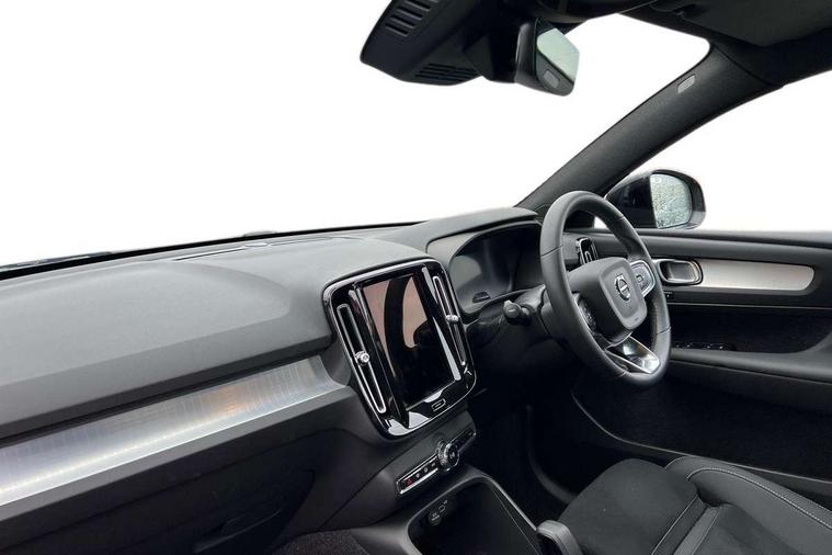 12.3" Progressive Driver Display, 9" centre console portrait touch screen, Adjustable steering wheel force, Android auto (Wired), Apple carplay (wired), Bluetooth handsfree system, Driver alert control, Driver assistance (pilot assist and adaptive cruise control), Driver awareness - Blind spot information system with steer assist, cross traffic alert with autobrake and rear collision warning and mitigation, E-call, Front and rear parking sensors, Front park assist, Google automotive services - Enabled entertainment apps, navigation with google maps, voice recognition with google assistant, Hands free power tailgate, Intelligent speed assistance, Lane keeping aid, Oncoming Lane Mitigation, Speed sensitive steering, Volvo cars services with app - Driving journal, emergency and breakdown call, engine remote start, remote door locking/unlocking and vehicle dashboard, Wireless/Inductive Mobile Phone Charging, Automatic transmission with start/stop and manual change functions, Dynamic chassis, DAB Digital radio, Steering wheel mounted remote controls, Adaptive brake lights with high level LED brake lights, Auto dimming feature for exterior door mirrors, Auto dimming interior mirror, Auto folding and heated power door mirrors, Automatic headlamp levelling, Automatic LED Headlights + Active high beam incorporating daytime running lights, Front aluminium tread plates, Front and rear electric windows, High gloss black front and rear skid plate, High gloss black front bumper deco, High gloss black mesh front grille with high gloss black surround, High gloss black window trim, Home safe and approach lighting, Integrated roof rails in high gloss black, LED front fog lights, Puddle lights, Rain sensor with automatic windscreen wiper activation, Rear side wing doors, Rear wiper, Roof antenna, Roof spoiler, Visible VIN plate, 12V socket in front tunnel console and luggage compartment, 2-Zone electronic climate control with CleanZone air quality system and pollen filter, 3 seat bench in 2nd row, 3 Spoke tailored steering wheel with chrome trim, 60/40 versatile split folding rear seat, Centre console cupholders and storage, Charcoal carpet and floor mats, Charcoal headlining, Connect suede textile/microtech upholstery, Flexible load floor and grocery bag holder, Front headrests, Front seat cushion extensions, Glovebox bag hook, Heated front seats, Height adjustable passenger seat, Height/reach adjustable steering column, High gloss centre tunnel deco, High level illumination - Front door pocket, front side step (under door), tailgate, instrument panel, front door inlay, rear courtesy&reading lights, Integrated waste bin, Isofix attachments on outer rear seats, Load cover, Load protection net, Mid level illumination - Front footwell, luggage & glovebox compartment, front cabin courtesy & reading lights, illuminated vanity mirrors+ticket holder, Multi directional lumbar support for driver and passenger seat, Power driver seat with memory + exterior mirrors memory, Rear armrest with cupholders, Rear headrests, Single front passenger seat, Underfloor luggage compartment storage, Climate pack without heated front seats - XC40, 3x3 point rear seatbelts, City safety with steering support with Pedestrian + cyclist + front collision warning with full auto brake and rear auto brake, Driver and passenger airbags, Drivers knee airbag, Electronic parking brake with auto hold, First aid kit, Front and outer rear seatbelt reminder and pretensioners, Front seats SIPS airbags, Hill descent control - Off-road drive mode, Hill start assist, IC (Inflatable Curtains) - Full Length, Passenger airbag cut-off device, Power child locks on rear doors, Road sign information display, Run off Road Protection, SIPS (Side Impact Protection System), Slippery road and hazard light alert, Stability and Traction Control with Spin control, Engine Drag Control and Corner Traction Control, Tyre pressure monitoring system, Vehicle deceleration control with Anti-lock Brake System, Electronic Brake Distribution and Emergency Brake Assist, Warning triangle, WHIPS whiplash protection system - front, 2 x Key integrated remote control central locking including with deadlocking system and auto open/close windows, Anti-theft alarm including immobiliser/volume sensor + level sensor, Keyless drive includes keyless entry and keyless start, Locking wheel nuts,
