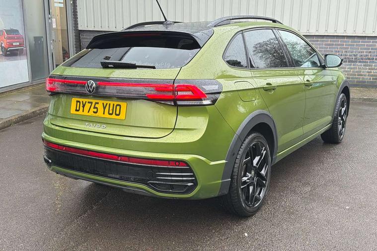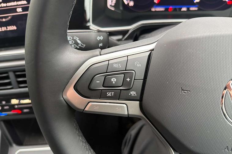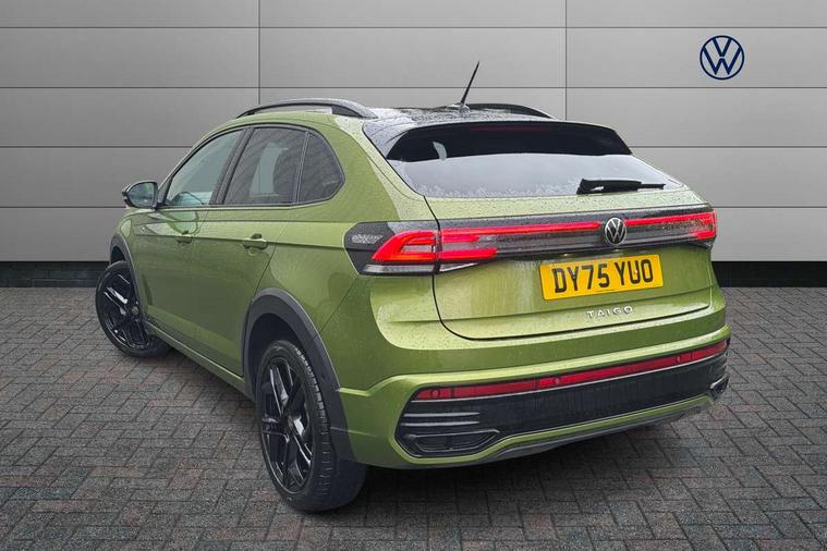 Advanced driver attention and drowsiness monitor, Digital cockpit pro - 10.25" high resolution TFT dash display screen with customizable menus and information, Driving profile selection, e-Call (emergency call), Power Steering, Predictive adaptive cruise control, Travel assist including emergency assist, Washer fluid level indicator, Wireless Charging including Bluetooth, Start-stop system with battery regeneration (recuperation - energy recovery during braking), XDS electronic differential lock for improved traction and handling, Digital radio reception (DAB+), WeConnect plus, Ambient lighting with logo projection, Aspherical driver's exterior mirror, Auto headlights, Body coloured bumpers, Body coloured door handles, Cornering headlights, Electric windows, External USB type C socket and charging sockets, LED rear combination lamp, LED third brake light, Left convex exterior mirror, Power folding adjustable/heated exterior mirrors and front passenger exterior mirror lowering function, Rear fog light on one side, reversing light on both sides, Rear side wing doors, Rear wash/wipe with intermittent wipe setting, 12V socket in centre console, 2 front reading lights, 3 rear head restraints, 3 seat bench in 2nd row, Air care climatronic air conditoning system with active combination filter and 2-zone temperature control, Black carpets, Black roof lining, Child seat anchor for child seat system i-Size, 2x top tether and child seat anchor in front on front passenger side, Chrome bezel for instrument cluster, vents, door handles + gear shift, Driver and front passenger seat height adjustment, Front + rear carpet mats, Front centre armrest, Front footwell illumination, Front sports comfort seats, Heated front seats, Height and reach adjustable steering wheel, Interior ambient lighting and surround lighting, Karoso artvelours cloth upholstery, Leather trimmed gear knob, Leather wrapped multifunction steering wheel, Luggage compartment floor, Luggage compartment light, Lumbar support for driver's and front passengers seat, Seat covers in grey + titanium black, Single front passenger seat, Split folding backrest with centre armrest and unsplit rear seat bench, Stainless steel pedals, Storage compartment under front seats, Sun visors with illuminated vanity mirrors, Black design pack - Taigo Black Edition, Black roof pack with mirror housing - Taigo, IQ.LIGHT - LED matrix headlights pack - Taigo, Light and Sight pack including High beam assist - Taigo, 2 x 3-point seatbelts/outer rear seats with ECE label, 3-point seat belts in front with pretensioner and height adjustment, 3-point seatbelt for centre rear seat, Adaptive driver and front passenger airbags with passenger airbag deactivation function, Driver and front passenger safety-optimised head restraints, Electronic stability control, Extended and predictive pedestrian/ cyclist protection, Front and rear disc brakes, Front curtain and side airbags with center airbag, Hill start assist, Manual rear child locks, Single tone horn, Tyre pressure loss indicator, Anti-theft alarm system with interior monitoring, backup horn, and towing protection, Grey anodised matte decorative inserts in dash and front door panels, 18" York black alloy wheels with anti theft wheel bolts, Breakdown kit, Low rolling resistance tyres,