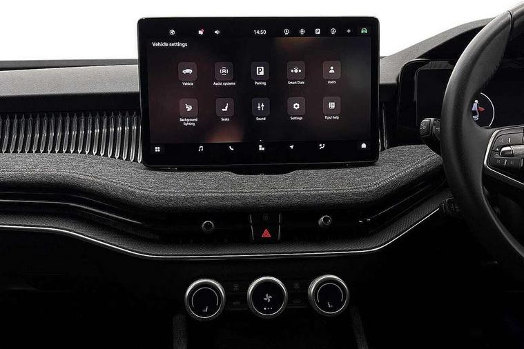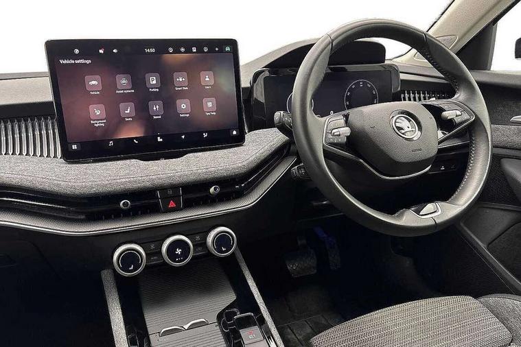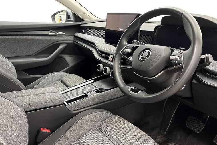 13" touchscreen display with satellite navigation, 4x USB-C ports (2x in front centre console and 2x in rear) (45W), Adaptive cruise control with speed assist, lane assist plus and traffic tram assist, Blind spot detection with door exit warning, Bluetooth system, CareConnect and Emergency Call, ChatGPT functionality, Driver fatigue sensor, Front assist with extended predictive pedestrian protection, Front cross traffic assist, PAS, Quick start all heating software functionality, Rear view camera with washer, Stop/start engine system, Traffic sign recognition, Turn assist with evasive assistance, Virtual Cockpit - 10.25" digital display, Voice control system, Wireless charging for one smartphone (15W) with cooling function, Wireless smartlink apple carplay, SmartLink+ android auto, 8 Speakers, DAB Digital radio, Display cleaner, FM radio connection, Web radio connection, Acoustic side windows and interior noise suppression, Backdrop lighting, Body colour door handles, Body coloured door mirrors, Chrome window surround, Electrically adjustable, heated, folding and driver side auto-dimming door mirrors with integrated indicators and logo projection, Frameless auto-dimming rear view mirror with USB-C, Front windscreen with heat-insulating glass, Ice scraper in fuel tank cap, LED 3rd brake light, Light assist with High beam control, Light assistant (coming/leaving home/tunnel light), Privacy glass, Rear fog light (x1), Rear side wing doors, Tow bar preparation, Unique dark chrome design logo on alloy wheels, Unique dark chrome grille surround with dark chrome rib elements, Windscreen wipers with rain sensor, 12V socket 1x centre console 1x boot, 12V socket and 2x cargo elements in boot, 2 spoke multifunction steering wheel with DSG paddles, 3 seat bench in 2nd row, 60:40 Split folding rear seats, Bottle holders in the front doors 1.5 litre bottle and rear 1.5 litre bottle, Cup holder in front with easy open mat, Front and rear footwell illumination, Front armrest with storage box, Front comfort seats, Heated front seats, Height adjustable driver and front passenger seats with 2-way electric tilt, 4-way pneumatic lumbar support, and extendable thigh support, Height adjustable front and rear head restraints, Height adjustable front passenger seat, Illuminated glovebox, Interior lights with control switches, Isofix child seat fittings in outer rear and front passenger seats, LED front and rear reading lights, Massage function for front seats, Single front passenger seat, Skoda lettering on steering wheel, Storage pockets on back of front seats, Sun visors with illuminated vanity mirrors, Ticket holder on A Pillar, Tri zone climate control, Umbrella in driver's door, 3 rear seatbelts, 8 Airbags - Front driver and passenger, front side driver and passenger, centre, curtain front and rear, drivers knee, Crew protect assist, Driver and passenger seatbelts with warning light, Electronic parking brake, ESC including ABS, EBV, MSR, ASR, EDS, HBA, DSR, RBS, CBC, multi-collision brake (MKB) and Auto hold, Hill hold assist, Power operated child lock in rear doors, Alarm with interior monitoring tilt sensor and back up horn, Backrest remote release from trunk, Electronic engine immobiliser, Keyless start/stop, Remote central locking with SAFE system, Third key, Decorative front door sills,