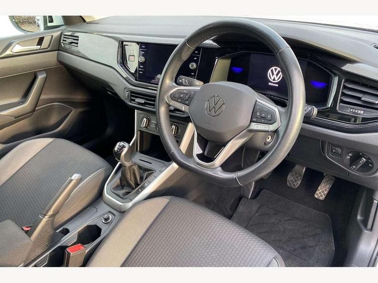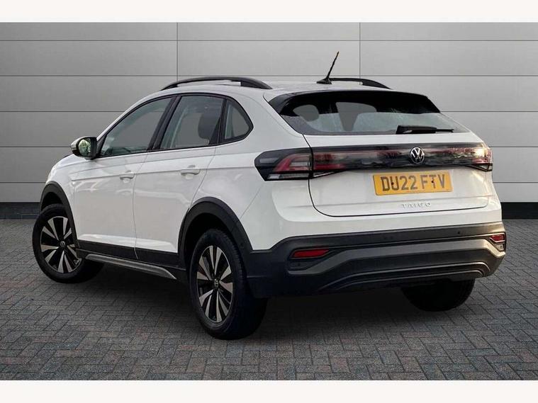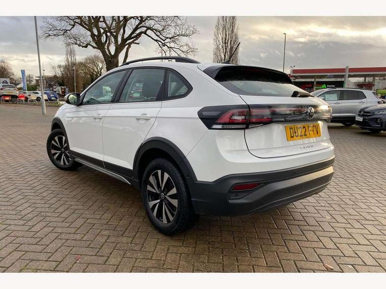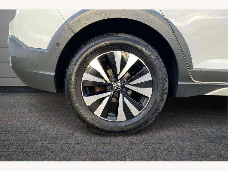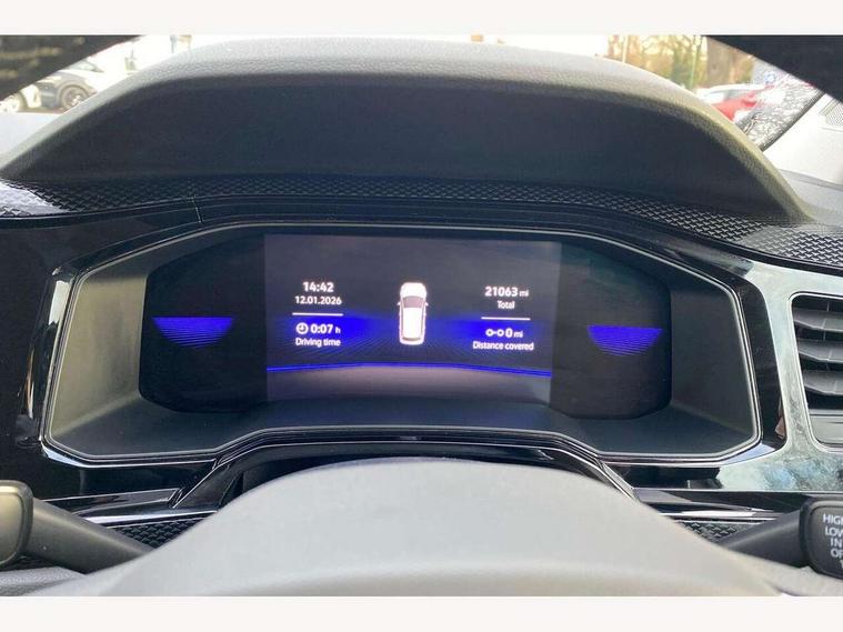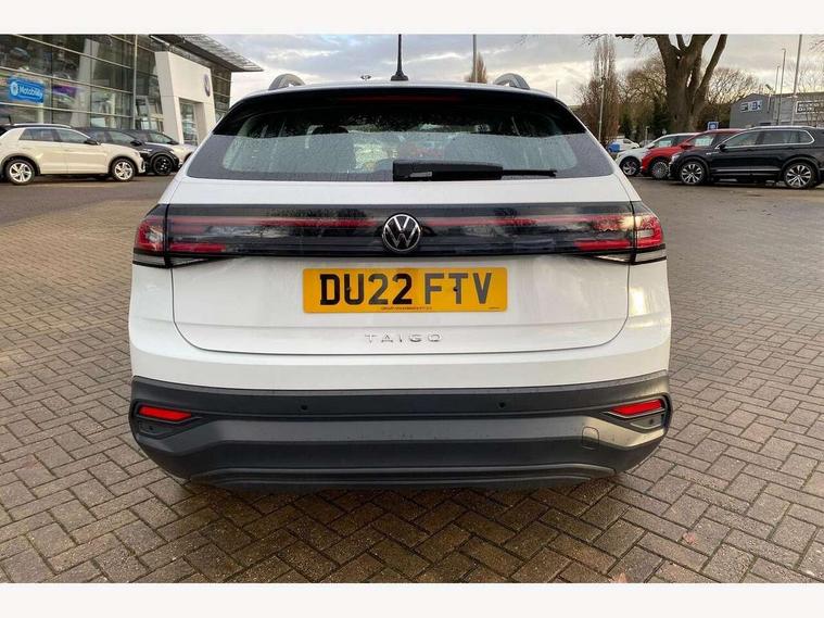 App-Connect including App-Connect Wireless, Driver alert system, e-Call (emergency call), Power Steering, Travel assist including emergency assist, Washer fluid level indicator, Wireless Charging including Bluetooth, Start-stop system with battery regeneration (recuperation - energy recovery during braking), Digital radio reception (DAB+), Diversity antenna for FM reception, WeConnect plus, Ambient lighting with logo projection, Aspherical driver's exterior mirror, Auto headlights, Body coloured bumpers, Body coloured exterior mirror housings and door handles, Electric windows, External USB type C socket and charging sockets, Front fog lamps with cornering function, Headlight range control, Heat insulating glass windscreen, LED headlamps, LED rear combination lamp, LED third brake light, Left convex exterior mirror, Power folding adjustable/heated exterior mirrors and front passenger exterior mirror lowering function, Rear fog light on one side, reversing light on both sides, Rear side wing doors, Rear wash/wipe with intermittent wipe setting, 'Slash/ Austin' Cloth upholstery, 12V socket in centre console, 2 front reading lights, 3 rear head restraints, 3 seat bench in 2nd row, Black carpets, Child seat anchor for child seat system i-Size, 2x top tether and child seat anchor in front on front passenger side, Door and side trim panels in titan black, Driver and front passenger seat height adjustment, Front centre armrest, Handbrake lever handle in leather, Height and reach adjustable steering wheel, Leather trimmed gear knob, Leather wrapped multifunction steering wheel, Luggage compartment floor, Luggage compartment light, Lumbar support for driver's and front passengers seat, Seat covers in titanium black, Single front passenger seat, Split folding backrest with centre armrest and unsplit rear seat bench, Storage compartment under front seats, Sun visors with illuminated vanity mirrors, Chrome Package - Taigo, Drivers assistance pack - Taigo, Light and Sight pack including High beam assist - Taigo, 2 x 3-point seatbelts/outer rear seats with ECE label, 3-point seat belts in front with pretensioner and height adjustment, 3-point seatbelt for centre rear seat, Driver and front passenger airbags with front passenger airbag de-activation, front side and curtain airbags, Driver and front passenger safety-optimised head restraints, Electronic stability control, Extended and predictive pedestrian/ cyclist protection, Front and rear disc brakes, Front curtain and side airbags with center airbag, Hill start assist, Manual rear child locks, Single tone horn, Tyre pressure loss indicator, Anti-theft alarm system with interior monitoring, backup horn, and towing protection, Anti-theft wheel bolts, Lava stone black gloss/matt decorative inserts in dash and front door panels, Low rolling resistance tyres,