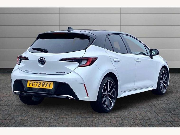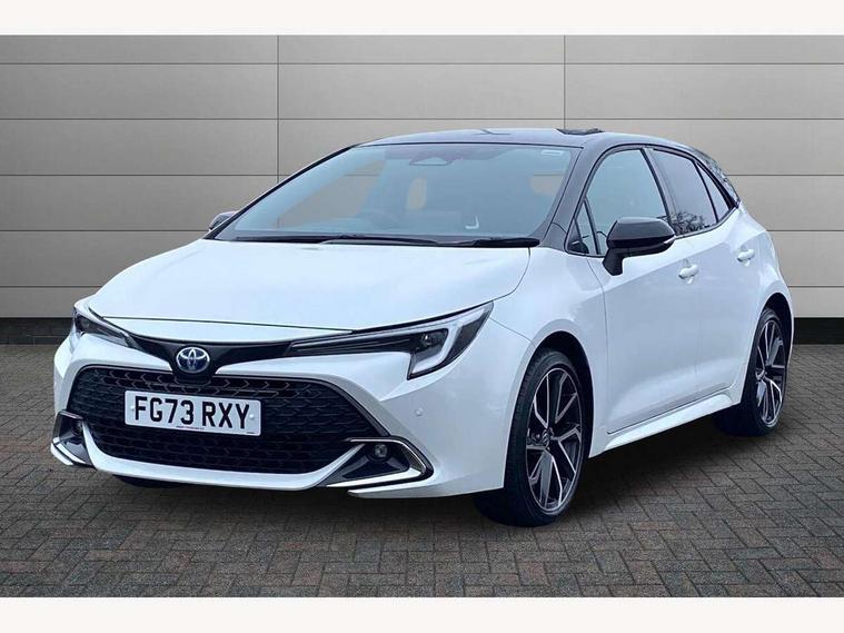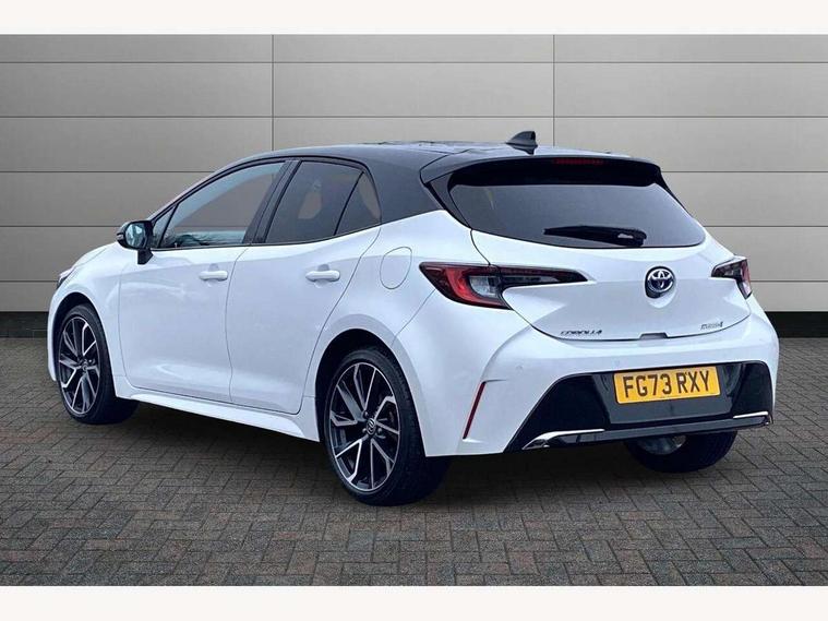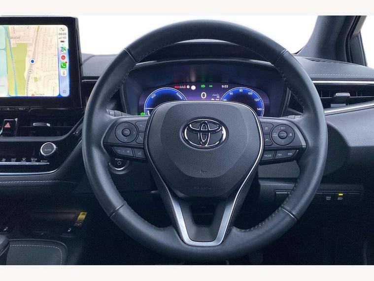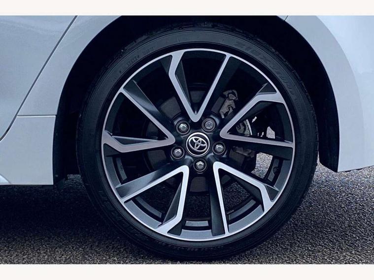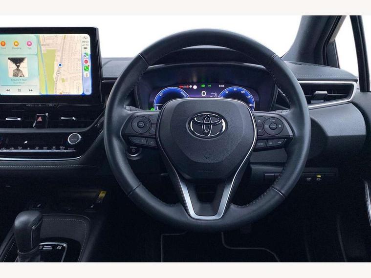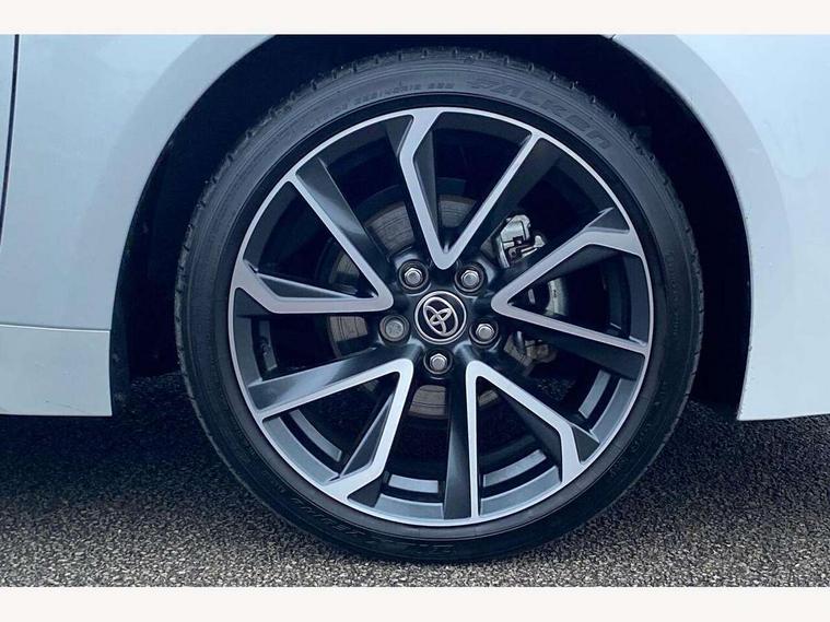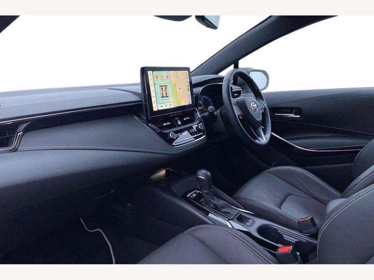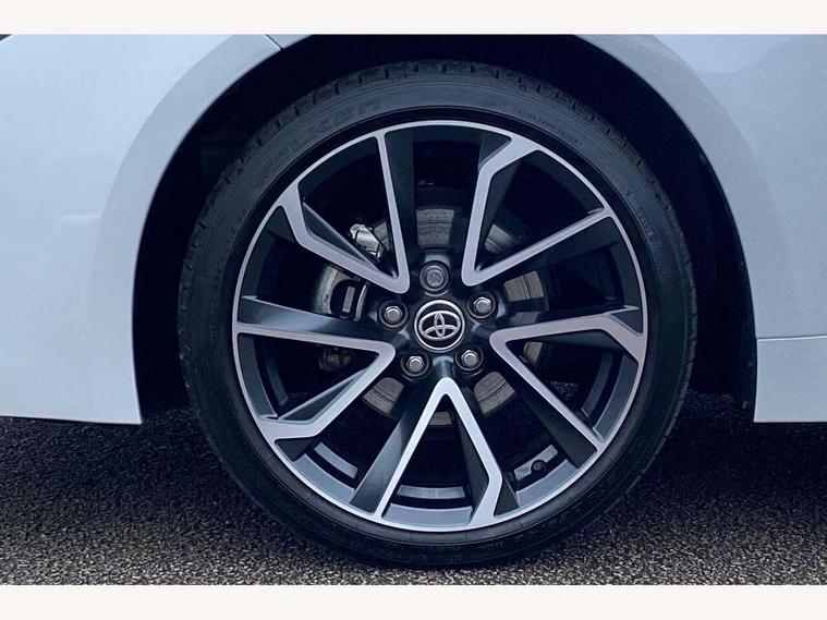 10.5" Multimedia display screen, Attention assist, Blind spot monitor and safe exit assist, Bluetooth telephone connectivity, Connected car functionality upgrade, tracker, remote status and e-care, Drive mode select (Eco, Normal), E-call, Electrically assisted power steering, EV drive indicator, Front and rear parking sensors with auto brake, Full Digital 12.3" TFT Digital Combimeter, Head up Display, Key reminder warning, Lane Departure Alert (LDA) switch on steering wheel, Memory on adjustable speed limiter, MyT connected services, Proactive driving assist (PDA), Rear cross traffic alert, Reversing camera, Smart entry and push button start, Smartphone integration with Apple CarPlay and wired android auto, Tailgate, Toyota remote services, Toyota smart connect navigation, Wireless charger, Gasoline particulate filter, Vehicle Stability Control (VSC), 6 speakers, AM/FM radio, DAB Digital radio, Front USB-C in centre console, Front USB-C in dashboard, Rear USB-C device charger, Smart voice assist/ Voice recognition, USB and Aux in connectors + 12V front outlet, Adaptive high beam system (AHS), Anti-jam protection on power windows, Auto headlight levelling system, Auto up and down function on all power windows, Automatic folding mirrors, Automatic headlights with high beam assist, Black centre and side air vents, Black metallic meshed front grille, Black toyota logo in front, Body coloured bumpers, Body coloured door mirrors, Body coloured front spoiler, Body coloured outside door handles, COROLLA alloy door scuff plates, Electrochromatic mirror, Follow me home headlights, LED daytime running lights, LED front fog lights, LED High mounted stop light, LED multi beam headlights, LED rear combi lights with LED lightguide, Noise reduction layer on windscreen, Piano black diffuser, Power adjustable heated door mirrors, Power front windows, Power rear windows, Privacy glass with UV filter, Rain sensing wipers, Rear bumper decoration with chrome plated inserts, Rear side wing doors, Rear under guard with chrome ornament, Rear window defogger, Rear window wiper, Reverse tilting door mirrors, Roof spoiler, Satin chrome insert on front air vents, Satin chrome insert on front door assist grips, Satin chrome inserts on rear passenger air vents, Shark fin antenna, Tailgate release with push button, Time adjustment on intermittent wiper, Turning signal integrated indicators in door mirrors, Unique grille pattern, Unique lower skirt, Unique side rocker with black insert, UV-filter on driver and passenger windows, 2 Shopping bag hooks in luggage compartment, 3 rear headrests, 3 seat bench in 2nd row, 3 spoke leather steering wheel with satin insert + gear knob, 4 tie down hooks in luggage compartment, 60/40 split folding rear seat, Adaptive cruise control (ACC) switch on steering wheel, Adjustable speed limiter switch on steering wheel, Audio, multimedia and telephone switches on steering wheel, Black armrest on centre console box, Black gear shift console, Boot light, Centre room light, Driver and front passenger personal light, Driver and passenger assist grip, Driver and passenger seatback pockets, Driver and passenger sun visor with mirror and light, Dual zone automatic air conditioning with ECO mode switch, Front and rear cup and bottle holders, Front door pockets, Front head restraints, Front passenger seat, Front sliding synthetic leather armrest, Heated seats, Illuminated entry system in room lamp, ISOFIX seat fixing (2 fixings on rear outer seats), Leather gear shift with satin chrome on gear shift console, Manual height adjustable for driver and front passenger seat, Manually tilt with sliding driver and front passenger seat, Parcel shelf, Perforated leather upholstery, Pollen filter, Power window switches with satin chrome inserts, Rear air conditioning, Rear armrest with 2 cupholders, Rear passenger coat hooks (2), Remote air conditioning, Satin chrome inside door handles, Satin chrome surround on heater control panel, Satin chrome surround on speedometer, Sliding armrest on centre console box, Slow opening glovebox with lights, Sports seats, Textile floor mats, Tilt/telescopic steering column, Voice recognition switch on steering wheel, Whiplash Injury Lessening (WIL) feature (active headrest) for seats, White ambient lighting on open tray and front cup holder, Toyota safety sense 3 pack - Corolla, 3x3 point rear seatbelts, Adjustable driver and front passenger seat belt extender to top anchor point, Anti lock braking system + Electronic brake force distribution, Brake assist function, Child locks on rear doors, Downhill Assist Control (DAC), Electronic parking brake, Emergency brake light signal (EBS), Front passenger airbag on/off switch, Front seatbelt reminder, HAC - Hill start assist control, Rear seat belt reminder, Seatbelt pretensioners and force limiters, Supplemental restraint system (SRS) 7 airbags - dual driver, dual side curtain, side impact and driver knee airbags, Traction control, Tyre pressure warning system, Acoustic vehicle alert system (AVAS), Alarm with motion sensor and immobilizer, Power passenger window lock, Remote central locking + deadlocks, Satin chrome dash trim, Soft touch texture on upper dashboard, Stitching on lower dashboard, Stitching on upper dashboard, 18" Dark grey machined face 5 double spoke alloy wheels, Tyre repair kit, Unique wheel finish with red wheel cap,
