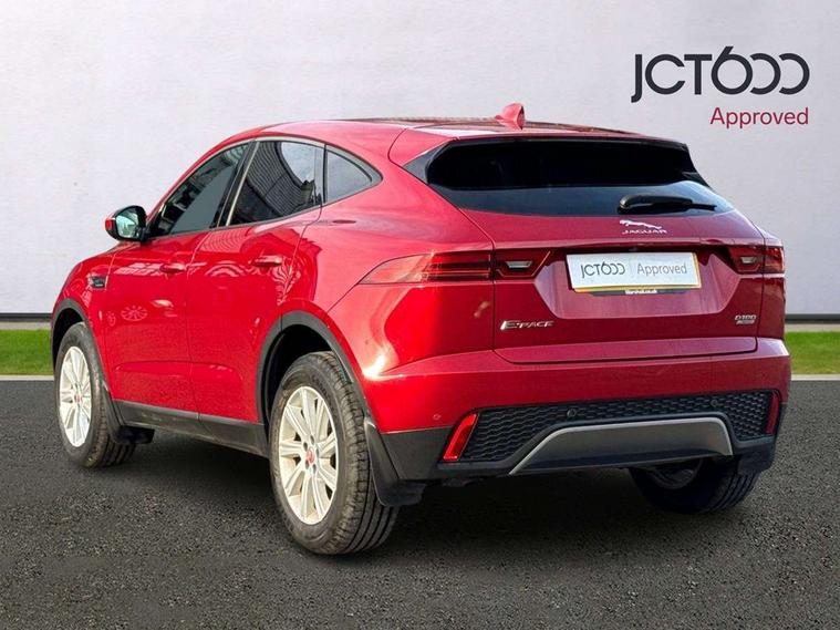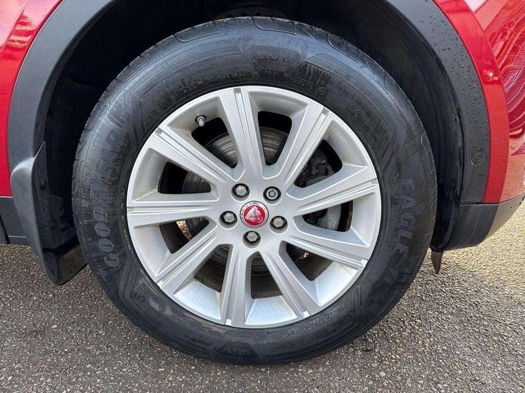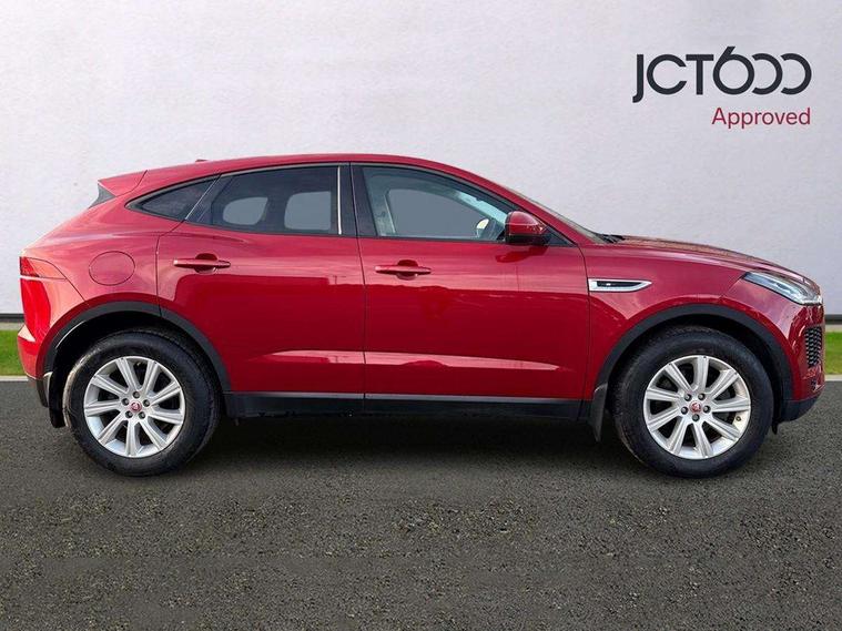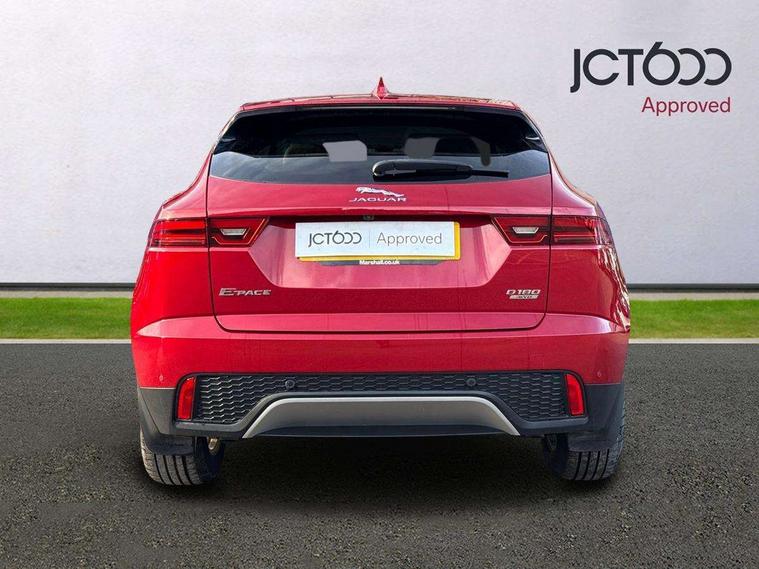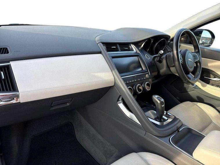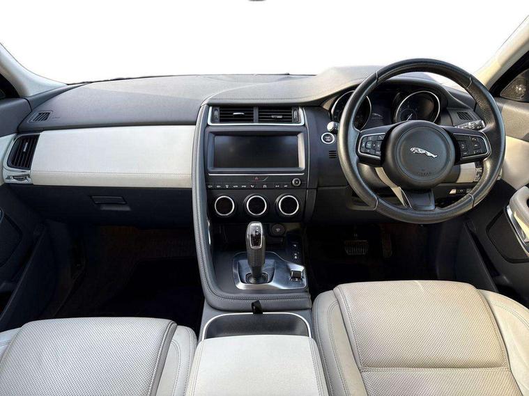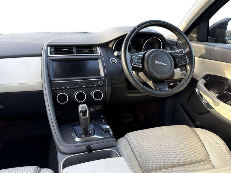 Driver condition monitor, EPAS, InControl Touch navigation pro, Lane keep assist, Outside temperature gauge, Push button starter, Traffic sign recognition with adaptive speed limiter, Trip computer, Voice control system, Diesel particulate filter, AM/FM DVD MP3 radio, Bluetooth connectivity including audio streaming, DAB Digital radio, Dynamic volume control, Approach Illumination, Auto dimming rear view mirror, Automatic headlights, Body colour bumpers, Electric front/rear windows with one touch/auto up/down, Grained black door claddings, Heated front windscreen, Heated rear window with timer, Heated washer jets, Rain sensor windscreen wipers, Tailgate spoiler, 12V power socket in rear, 2nd row 60/40 split/fold, 2nd row air vents, 3 seat bench in 2nd row, Centre armrest console, Centre headrest in row 2, Dual zone automatic climate control, Front head restraints, ISOFIX on outer rear seats, JaguarDrive selector, LED lighting in overhead console, Loadspace cover, Loadspace lamp, Storage net in luggage compartment, Sunvisors with illuminated vanity mirrors, Tie down hooks in luggage area, Twin front covered cupholders, Connect pro pack - E-Pace, Parking pack - E-Pace, Smartphone pack - E-Pace, 3x3 point rear seatbelts, ABS, All surface progress control (ASPC), Driver/Front Passenger airbags, DSC - Dynamic Stability Control, Electronic brake force distribution, Electronic parking brake, Emergency brake assist, Front and rear curtain airbags, Front and rear seatbelt reminder, Front passenger seat occupancy sensor, Front side airbags, Hill start assist, Power child locks, Torque vectoring brake, Tyre pressure monitoring system, Intrusion sensor and alarm, Locking wheel nuts,