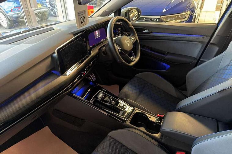 Adaptive cruise control (ACC) with speed limiter and front assist (reacting to vehicles pedestrians and cyclists), Car2X communication, Digital cockpit pro - 10.25" high resolution TFT dash display screen with customizable menus and information, Driver alert system, Dynamic road sign display, eCall - Emergency call service for SOS calls to emergency response, Lane assist, Lane change assistant, Mobile phone interface with wireless inductive charging function, Multifunction camera for distance control, PAS, Speedo, rev counter, electronic odometer, trip, service interval display, exterior temperature and fuel gauge, Start/Stop function, Travel assist with emergency side assist with electrically foldable door mirrors, USB-C ports in the front and rear centre console with increased charging performance, Warning buzzer and light for front seatbelts unfastened, Wireless app connect, 4Motion 4 wheel driver, Front differential lock, Petrol Particulate Filter, XDS electronic differential lock for improved traction and handling, Premium USB cable in choice of either Apple or Android smartphone compatibility, ''R' name plate, Ambient lighting, exterior illuminated styling elements at the sides, Auto dimming rear view mirror, Automatic headlamp activation with Coming home and Leaving home feature, Automatic headlights, Body colour bumpers, Body colour door handles, Body colour rear roof spoiler, Front and rear electric windows, Heat insulating glass windscreen, Heated rear windscreen, High level 3rd brake light, Highway light, Illuminated front grille, IQ.Light - LED Matrix headlights, dynamic headlight control with advanced high beam control matrix dipped main beam + LED DRL + 22 LED lights, LED front fog lights with 5 honeycomb design, LED License plate illumination, LED rear combination lamp inlcuding dynamic turn signal, Matt chrome effect door mirrors with integrated indicators, Performance rear spoiler, Rain sensor, Rear fog light on one side and reversing lights on both sides, Rear side wing doors, Rear tinted glass 65% light absorbing from B pillar backwards, Rear windscreen washer and wiper with interval delay, Remote electrically heated, adjustable and foldable door mirrors, including door mirror puddle lights and reverse activated kerb-view adjustment on pa, Welcome light, 12V socket in front centre console, 12V socket in luggage compartment, 3 rear head restraints, 3 seat bench in 2nd row, 3 zone climate with controls in the rear, Aluminium gear knob, Ambient lighting - Customisable 30 colour ambient lighting, Brushed stainless steel pedals, Chrome plated surround to electric mirror button, window switch and air vent surrounds, Drivers and front passengers sun visors with vanity mirrors, Front + rear carpet mats, Front centre armrest with storage compartment, Front cupholders x 2, Front passenger seat, Front reading lights x 2 incorporating LED technology, Front seat lumbar support adjuster, Front sports seats, Glovebox, Height adjustable front seats, Height and reach adjustable steering wheel, Isofix child seat preparation for 2 rear child seats and front passenger seat, Leatherette door armrests and centre armrest, Luggage compartment lighting, R leather wrapped multi function sports heated steering wheel with extended paddle shift, Removable luggage compartment cover, Soul black instrument panel, Soul black roof lining, Split folding backrest with centre armrest and unsplit rear seat bench, Woven fabric storage compartments in front and rear doors, R styling pack - Golf, 3 point height adj front seatbelts + pretensioners, 3 rear three point seatbelts, ABS, Blue brake callipers in front with R logo, Child locks on rear doors, Driver and front passenger airbag with front passenger airbag deactivation, Drivers and front passengers safety optimised head restraints, Electronic parking brake with auto hold, ESC (Electronic Stability Control), Extended pedestrian protection measures, Front and rear passengers curtain airbag system including front side airbags, Front centre airbag, Front disc brakes, Front side airbags with curtain airbags, Rear disc brakes, Two tone horn, Tyre pressure monitoring system, Alarm with interior protection and deactivation via infotainment system, Electronic engine immobiliser, Keyless entry with start/stop button on centre console, Carbon grey decorative inserts in dash and front door trim panels, High gloss black centre console, Tyre mobility kit Includes 12V compressor and tyre sealant,