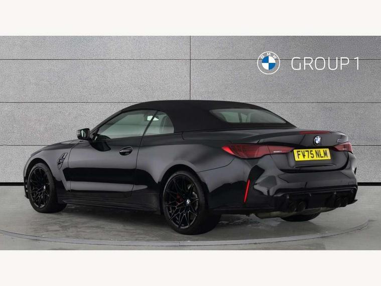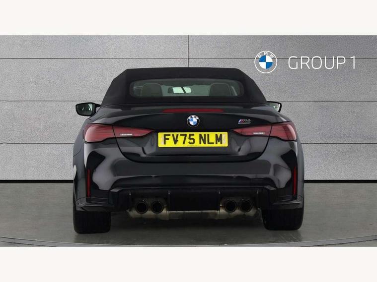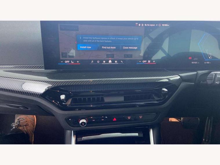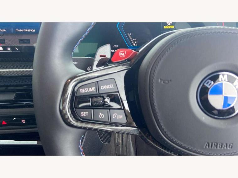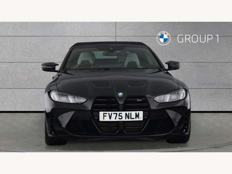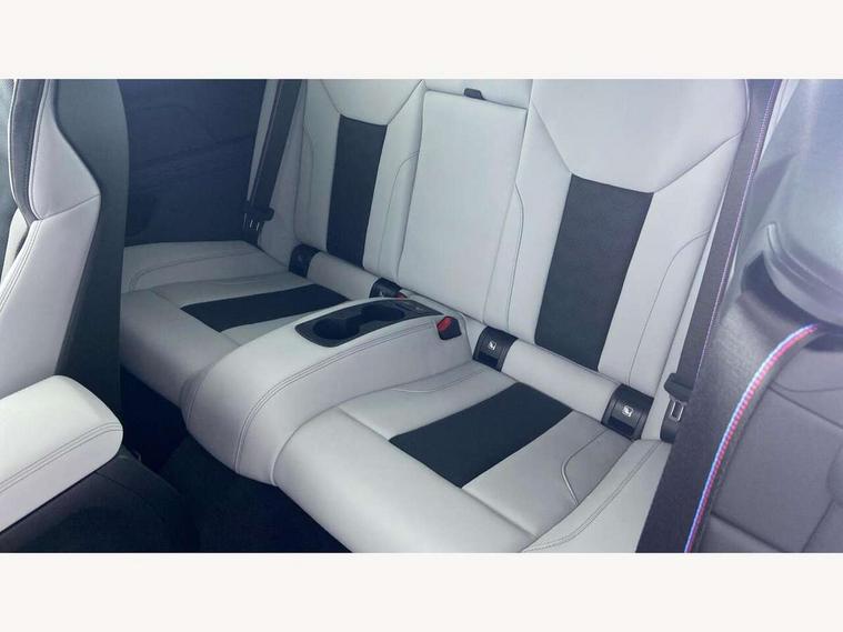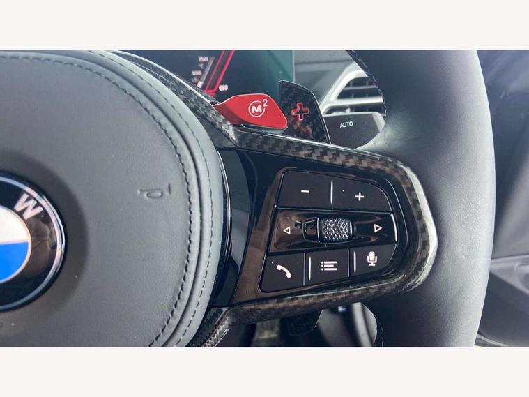 Active Guard, Automatic start/stop system, BMW ConnectedDrive online services, BMW legal emergency call, BMW Live Cockpit Pro with Head up display including 12.3" instrument display and 14.9" high resolution control display with navigation function, BMW Teleservices, Brake pad wear indicator warning light, Condition based service, Cruise control with braking function, Door/boot open warning light, Electric Power Steering (EPS) with Servotronic, Language version English, Lights on warning, M drive buttons, Oil sensor for level and grade, warning by check control system, Oil temperature gauge, On board computer, On board diagnostics, Optimum shift indicator, Outside temperature display, Park distance control, Pull away assistant, Run flat indicator, Service interval indicator, Shifting point display, Smartphone integration, Speed limiter, Start/stop button in red, Variable sport steering, Double joint spring strut front axle, M Adaptive suspension, M Drive Professional including track mode, laptimer, traction control & Drift analyser, M Sport differential, Safety battery terminal clamp, Sport automatic transmission with gearshift paddles, Auxiliary point for auxiliary devices, DAB radio with bluetooth music capability, Harman kardon surround sound audio system, Personal eSim, Acoustic laminated side glass, Auto dimming driver's door mirror, Automatic headlights + automatic windscreen wipers, Automatic parking function on front passenger's exterior mirror, Black chrome exhaust tailpipes, Black model designation badges, BMW high gloss shadow line with extended contents, BMW radiator grille, frameless, with horizontal double blind slats, black high-gloss, with model badge, Body colour bumpers, Bonnet and tailgate badge, Carbon fibre reinforced plastic (CFRP) roof, Day time running light, Door mirror integrated indicators, Dynamic brake lights, Electric adjustable heated door mirrors, Electric folding door mirrors, Electrochromic exterior driver side mirror, Electrochromic interior rear view mirror with automatic anti-dazzle function, Entry sills with aluminium inserts and model badge, Extended Stroage, Follow me home headlights, Front and rear bumper system, Front and rear plastic apron in vehicle colour, Front door sill strips in aluminium inlays with M4 inscription, Front electric windows with open and close fingertip control, anti trap facility and comfort closing, Headlight beam throw control, Heated washer jets, High gloss black lower bumper edges, side sills and diffuser edge binding, LED tail lights with 3D L-shaped LED light design, M designation, Mirror glass aspheric on driver's side, convex on passenger side, Rain sensor, Rear boot, Rear fog lights, Rear reflectors, Reversing light, Roof fin and roof trim strips in Black high-gloss, Shark fin roof aerial, Strakes in front side panel, black matt/high-gloss black, with model badge, Third brake light, Visible VIN plate, Welcome lighting, 2 cupholders in front centre console, 2 cupholders in rear armrest, 2 rear head restraints, 2 x 12 V Power sockets (luggage compartment and front centre console), 2 x USB Type C ports for charging and data transmission in front centre console, 40:20:40 split folding rear 2 seat bench with loading system, Ambient inside door handle light, Ambient lighting for storage compartment, Ambient lighting front and rear, Anthracite headlining, Battery in luggage compartment, Centre console armrest with storage compartment, Contour lighting for door trim, Driver/passenger sunvisors with ticket holders + illuminated vanity mirrors, Driving experience mode switch, Dual zone automatic air conditioning, Dynamic ambient interior lighting, Electric front seats + driver memory, English handbook, Floor mats in velour, Front and rear door exit lights, Front door storage bins with bottle holder, Front footwell ambient lighting, Front interior light, Front isofix attachment + airbag deactivation, Front reading light, Front seat backrest width adjustment, Front/rear door armrests, Heated front seats, Height adjustable front headrests, Illuminated bow-type door handles in vehicle colour, driver's side with door lock, Interior mirror lighting, Isofix on 2nd row seats, Lockable/illuminated glovebox, Luggage compartment lighting, Multifunction steering wheel, Rake/reach adjustable steering wheel, Single front passenger seat, Storage compartment in rear doors, Storage tray and compartment with cover in centre console, Through loading system, Toolkit located in luggage compartment, Waterfall lighting for central air vent, Wireless charging tray, Connected package professional - M4, Extended storage pack - M3/M4, High gloss shadowline exterior trim pack - M4, 4 x 3 point seatbelts, ABS/EBD, Automatic Stability Control (ASC), Brake energy regeneration, Brake fade compensation, Compound structure brake discs, Cornering brake control (CBC), Crash sensor, Curtain airbags, Driver/Front Passenger airbags, Dry braking, Dynamic brake control, Dynamic stability control + (DSC+), Dynamic Traction Control - DTC, Electromechanical parking brake, Electronic differential lock control (EDLC), Front and rear head airbags, Front seat side impact airbags, Front seatbelt pretensioners + load limiters, Hill start assist, M Sport seat belts, Seat occupancy detection for driver and passenger side, Seatbelt warning, Side impact protection, Two tone horn, Tyre pressure sensor, Warning triangle and first aid kit, Centre lock switch, Closing system with central locking, Electronic immobiliser, Locking wheel bolts, Remote central locking, Thatcham cat 1 remote alarm, Vehicle Key with 4 buttons including the integrated key, Galvanic embellisher for controls, Tyre repair kit,
