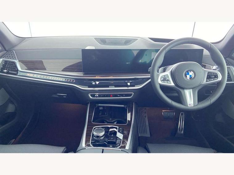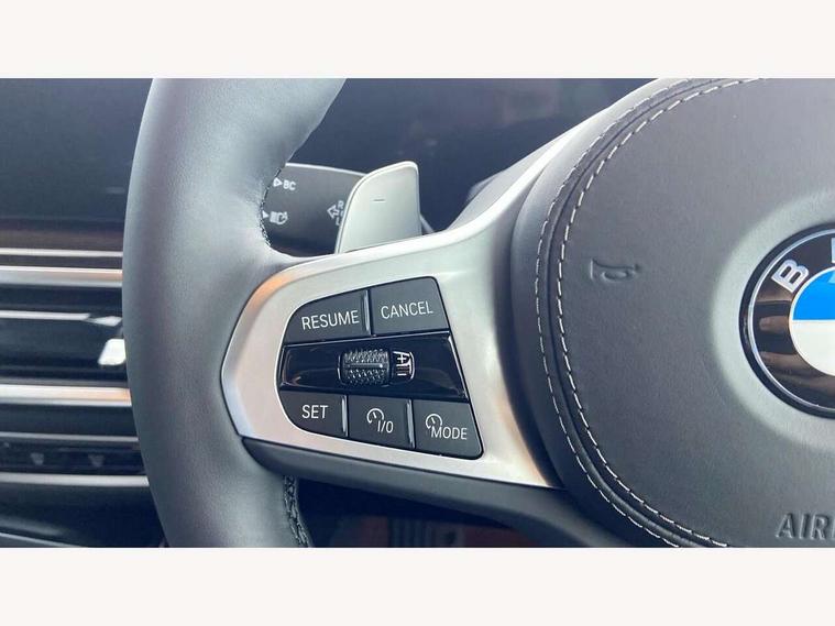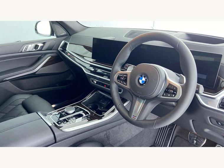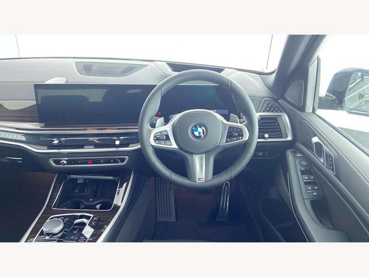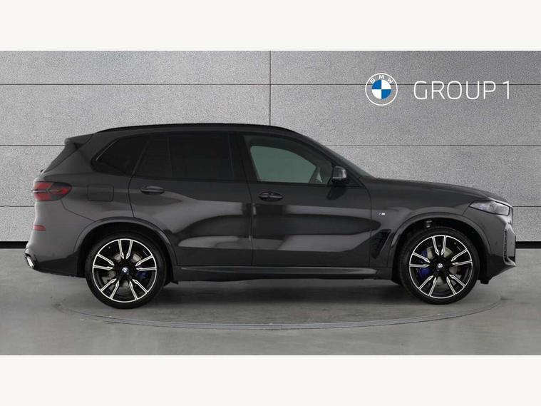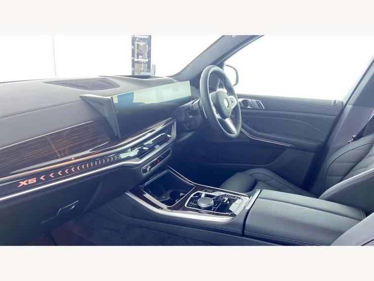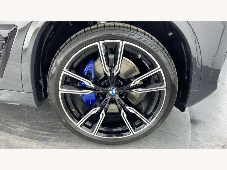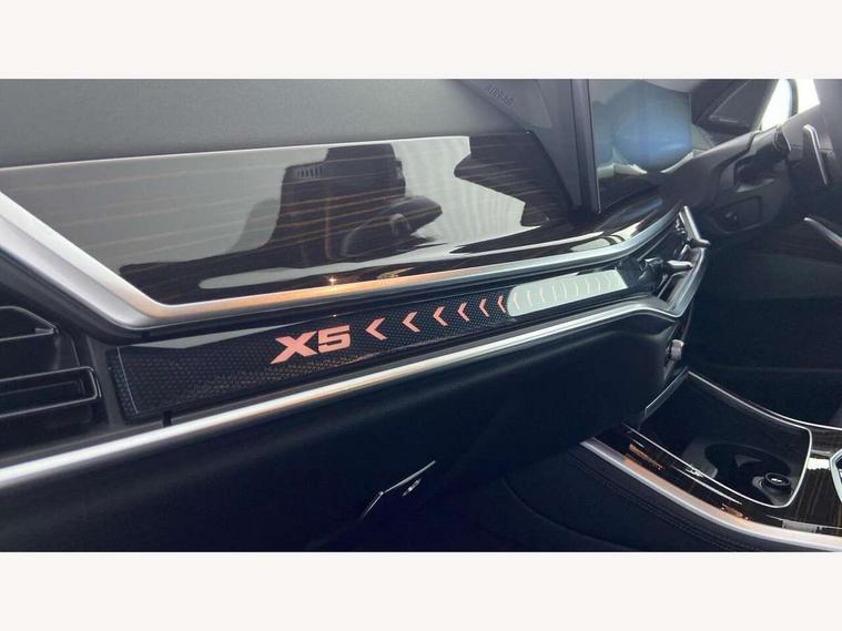Attentiveness assist, Automatic tailgate operation, BMW ConnectedDrive online services, BMW live cockpit + with curved 12.3 instrument cluster/14.9 central display, nav/Tuner with diversity reception, RDS/4GLTE/remote software upgrade, BMW Recovery system, BMW Teleservices, Condition based service, Cruise control with brake assist, eCall emergency call system, Enhanced bluetooth with wireless charging, Integrated owner's handbook, PAS, Speed limiter, Wi-Fi hotspot, Drive performance control with ECO PRO comfort + sport mode, Eight speed steptronic sport automatic transmission and gearshift paddles on the steering wheel, Adaptive LED Headlights, Front and rear electric windows, High beam assistant, High gloss black shadow line roof rails, LED daytime running lights, Rain sensor, Rear side wing doors, Third brake light in rear spoiler, Variable intermittent rear wash/wipe, 12V - Power sockets with 2x centre console and 1x luggage compartment, 3 seat bench in 2nd row, Entry sills illuminated BMW inscription front and rear, Foldable rear centre armrest with 2 cupholders and storage compartment, Front and rear side armrest integrated into door trim, Grab handles in 1st and 2nd row of seats with Integrated in headliner, at rear with coat hooks, plastic, Headrests for all seats, Luggage compartment separating net, Lumbar support with height and depth adjustment in backrest, Single front passenger seat, Sunvisors with illuminated vanity mirrors and ticket pocket, Three spoke sport M leather steering wheel, Velour floormats, Ambient light interior pack - X5, Driving assistant pack with radar based driver assistance system - X5, Expanded exterior mirror pack - X5/X5 M, M aerodynamics pack - X5, Parking assistant pack - X5, 3 rear seatbelts, Active protection, Airbags - driver/front passenger, rear and side, first and second row seats head airbags, front passenger seat airbag deactivation + knee airbag, Anti-lock braking system (ABS), Automatic Stability Control (ASC), Brake energy regeneration, Cornering brake control (CBC), Crash sensor activating central locking release, hazard warning lights, fuel cut off, interior lighting + activation of safety battery terminal clamp, DSC - Dynamic Stability Control, Dynamic Traction Control - DTC, Electromechanical parking brake with automatic drive away release and auto hold function, Electronic brake force distribution, Hill start assistant, M Sport blue painted brake calipers with 'M' designation, Mechanical child proof lock on rear doors, Tyre pressure monitoring system, Tyre pressure sensors, Ventilated front and rear disc brakes, Warning triangle and first aid kit, Alarm system, Closing system with central locking, Comfort access system, Locking wheel bolts,
