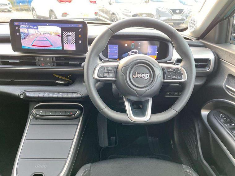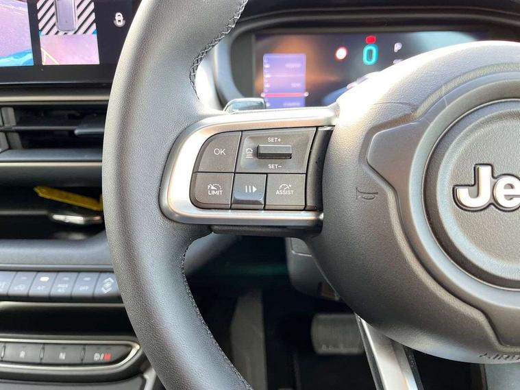 (AEB) Autonomous Emergency Braking with pedestrian and cyclist recognition, 10.25" Full TFT reconfigurable colour cluster, Adaptive cruise control, All-Terrain Mode Selector, Apple Carplay/Android Auto with wireless mirroring, BSRF connectivity box, Connectivity services, Drowsy driver detection system, eCall emergency call system, Front, rear and side parking sensors, Hands free power liftgate, Keyless Start/Engine On Button, Lane Centering, Lane keep assist, Odometer, PAS, Quick Guide English, Rear view camera with dynamic grid lines, Traffic jam assist, Traffic sign recognition, Urban blind spot monitor, Warranty Booklet - UK, Wireless charging, Battery default, High efficiency alternator, Idle coasting, Rear USB port with type-C charging, 3rd brake light, 7 Slots grille in gloss black, All power windows express Up/Down, Automatic headlights, Automatic high/low beam, Body colour exterior door handles, Day time running light, Foldable/Heated/Power door mirrors with Auto folding function and puddle light, Frameless auto dimming interior rear view mirror, Gloss black mirror caps, LED Fog lamps with cornering function, LED projector headlamps, LED rear lights, Privacy glass, Rain sensor, Rear side wing doors, Rear wiper, Silver skid plates, Welcome/leaving lighting, 3 rear headrests, 3 seat bench in 2nd row, Automatic A/C (1 Zone), Cargo Flex Kit - Flat floor on trunk area, height adjustable cargo floor, double face carpet/scratch resistant and washable, Central console dividers x2, Driver and front passenger sunvisor with vanity mirror, Foldable second row seats 40/60 - Fix and Fold, Front and rear velour floor mats, Front central armrest with storage, Front head restraints, Front passenger grab handle, Front passenger isofix child seat attachment, Front seat backrest pocket, I am Jeep label, Paddle shifter, Predisposal for tunnel pad cover, Single front passenger seat, Synthetic leather steering wheel, Tunnel pad cover and Interior rubber mats in Manovra, Anti-lock braking system (ABS), Child locks on rear doors, Electric parking brake with auto hold function, ESC - Electronic Stability Control + traction control, Hill descent control, Kit fix and go predisposition/housing only, Rear seat ISOFIX, Three 3 point rear seatbelts, Vulnerable road user recognition - Pedestrian/Cyclist incl. AEB, Passive entry, Volumetric anti theft alarm, 18" Diamond cut alloy wheels painted in matt black with summer not chainable, Fix and go puncture repair kit,