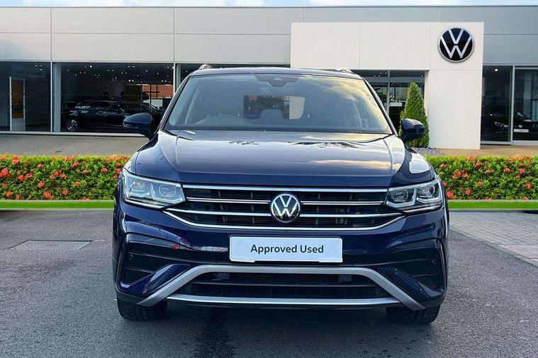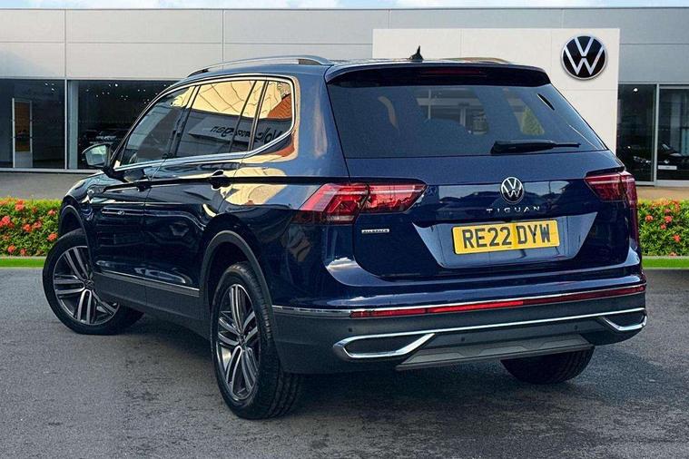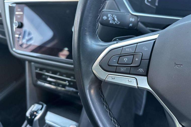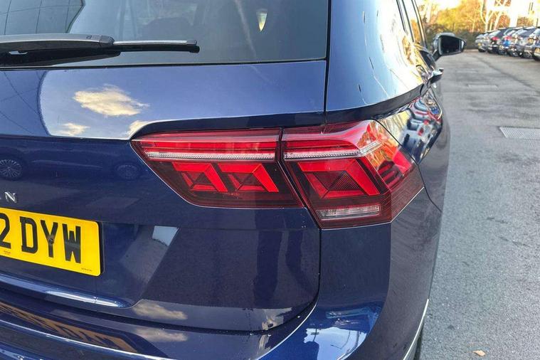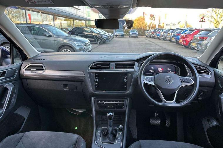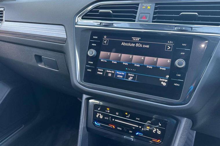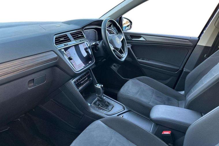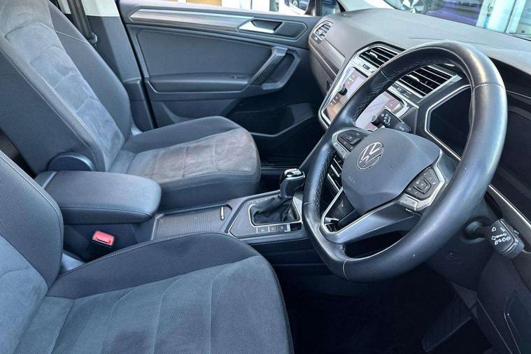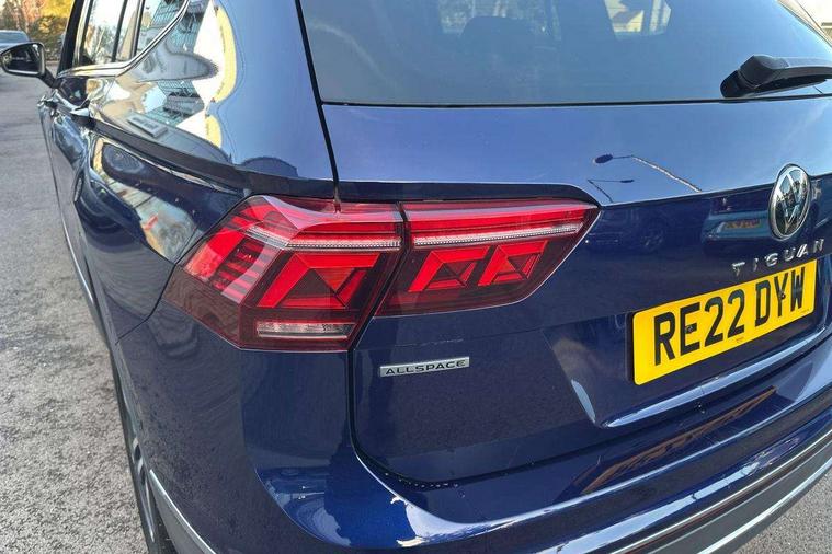 Adaptive cruise control, App-Connect, Digital cockpit pro, Driver alert system, Driver profile selection, Dynamic road sign display, eCall emergency call service, Electric boot lid, Lane change system side assist and rear traffic alert, Lane keeping system Lane Assist, Mobile phone interface comfort with inductive charging feature, Multifunction front facing camera, Power assisted speed sensitive steering, Speedo and rev counter, electronic odometer, trip, service interval display and exterior temperature gauge, Front wheel drive, Start-stop system with battery regeneration (recuperation - energy recovery during braking), 2 USB-C ports in the front, 1 USB-C charging socket on the center console in the rear, 8 Speakers, DAB Digital radio, Diversity antenna for FM reception, Radio, Auto dimming interior rear view mirror, Automatic headlight control system, Body coloured comfort bumpers, Chrome mouldings on side window, Coming/leaving home lighting function, Exterior badge deletion, Exterior mirror housings painted in silver, Heated windscreen washer jets, IQ light adv HBC, dyn light assist LED matrix headlamps, DH range, dark red LED rear combo light, poor weather, CL, LED headlamp with LED DRL and DCL - PXC, Privacy glass, Rain sensor, Rear fog light, Rear side wing doors, Rear wiper, Silver roof rails, Third brake light, Tilting and sliding panoramic sunroof, 12-volt outlet in centre console rear and luggage compartment, 12V socket in centre console, 3 head restraints in rear, 3 individual folding 2nd row seats, 3rd row 2 individual seats, Air Care Climatronic 3 zone automatic climate control with enhanced air filter and controls in the rear, Door and side trim panel, Drawers under front seats, Driver and front passenger seat height adjustment, Foldable front passenger seat backrest, Front + rear carpet mats, Front centre armrest, Front footwell illumination, Heated front seats, Illuminated scuff plates, ISOFIX anchorage points for mounting 2 child seats on rear seats and i-Size child seats, Leather gearshift handle, Leather-wrapped heated multi-function steering wheel with paddle shift, LED interior light with switch off delay/dimmer and 2 front/rear LED reading lights, Sun visors with illuminated vanity mirrors, Ambience pack - Tiguan Allspace, Driver assistance package - Tiguan Allspace, Easy open and close pack with safelock - Tiguan Allspace, Park assist pack - Tiguan Allspace, 3 point seat belt for centre rear seat, 3 rear three point seatbelts, ABS+EBD+Brake assist, Driver and front passenger safety-optimised head restraints, Driver's and front passenger's airbag with front passenger's airbag deactivation switch, Electronic parking brake, Electronic Stability Control (ESC) inc EDL (Electronic Differential Lock) and ASR (Traction Control), Height adjustable front 3 point seatbelts + pretensioners, Manual rear child locks, Pedestrian monitoring, PreCrash preventive occupant protection Front and rear, Rear disc brakes, Side airbag in front and rear with curtain airbag, Two tone horn, Warning buzzer for seatbelts if unfastened, Anti theft alarm system with interior monitoring, backup horn and towing protection, Anti-theft wheel bolts, Electronic steering lock, Remote central locking with 2 remote folding keys, Chequered flag tinanium decorative inserts,
