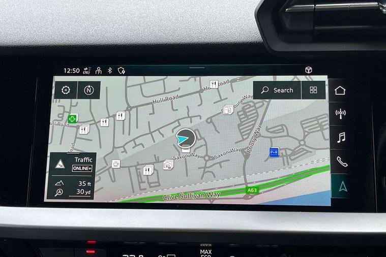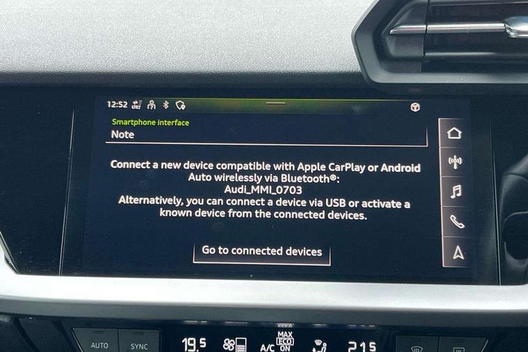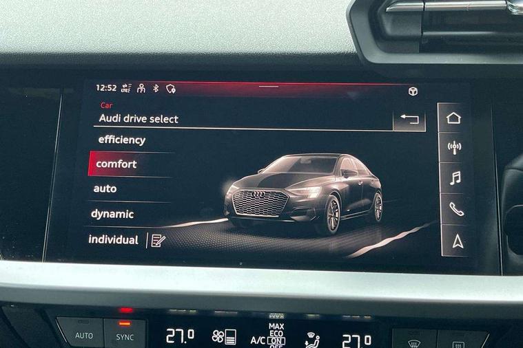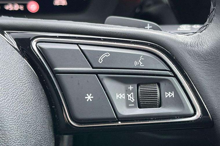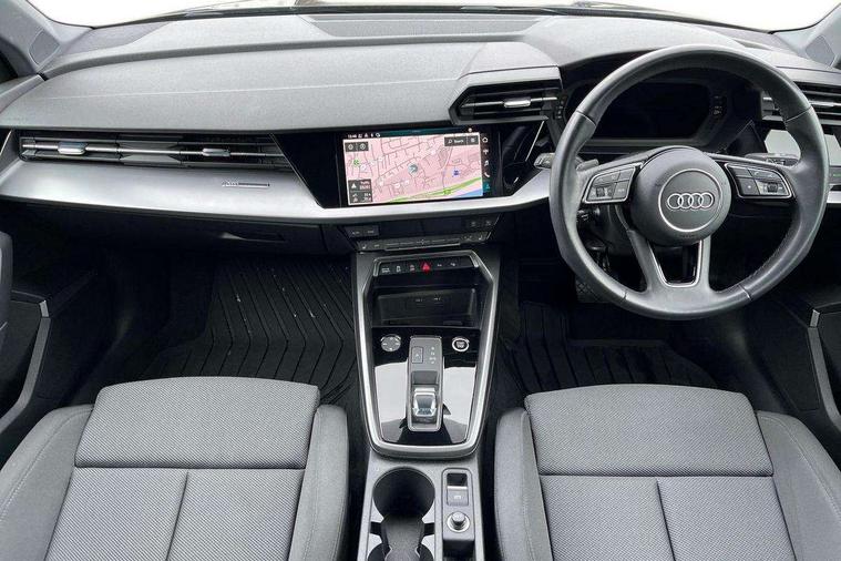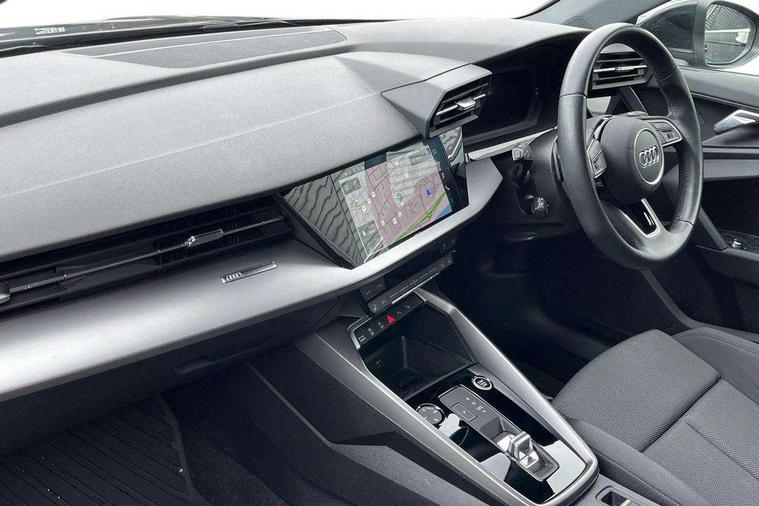 Audi drive select (Auto, Comfort, Dynamic, Efficiency and Individual), Audi smartphone interface, Audi Virtual Cockpit - 10.25" digital and colour instrument cluster, Automatic start/stop system with recuperation, Bluetooth interface, Camera based traffic sign recognition, Collision avoidance assistant, e-Call (emergency call), Electromechanical power speed sensitive steering, Lane departure warning system, MMI Navigation Plus with high resolution 10.1" colour touch screen display, Service indicator, Trip computer, Voice control system with natural language interaction, Diesel particulate filter, Standard suspension, 2xUSB-C connection with data and charging functions, 6 passive loudspeakers, CD player, DAB Digital radio, 3rd brake light, Acoustic glass windscreen, Aluminium window trim, Auto dimming frameless rear view mirror, Body colour exterior mirrors, Body colour roof spoiler, Electrically adjustable/heated/folding/dimming door mirrors with kerb view includes integrated LED indications + kerb view function for passenger side, Front electric windows, LED daytime running lights, LED headlights and halogen rear lights, Light and rain sensors, Model and engine designation badges at rear, Rear boot, Rear electric windows, Rear side wing doors, Rear window, rear door windows and rear side windows in clear glass, 12V socket and storage compartment in front centre console, 3 seat bench in 2nd row, 3 spoke leather multifunction steering wheel with gear shift paddles, 4 way electrically adjustable lumbar support for driver and front passenger, 60/40 split folding rear seat bench, Dual zone electronic climate control, Front and rear headrests, Front centre armrest, Front door sill trims with aluminium inlay, Front/rear floor mats, Height and reach adjustable steering wheel, Interior lighting - Front and rear roof module including reading lights, glove compartment light and right hand side, Interior lighting - glove compartment light and right hand side, Luggage compartment floor covering, Manual boot compartment lid, Manually adjustable front seats, Routine cloth upholstery with front sports seats, Seat side bolsters, Single front passenger seat, Steel grey cloth headlining, Aluminium interior elements pack - A3 Saloon, LED interior lighting pack - A3 Saloon, Sport styling pack - A3 Saloon, 3x3 point rear seat belts, Driver and front passenger airbag with passenger airbag deactivation, Electronic Stabilisation Control (ESC) including ABS, ASR and EDL, First aid kit with warning triangle and 2 safety vests, Front side airbags with head airbags and interaction airbag, Pre-sense front with pedestrian and cyclist detection, Seatbelt monitoring, Tyre pressure loss indicator, Anti theft alarm, Anti-theft wheel bolts, Electronically operated child locks, Immobiliser, Remote control central locking, Aluminium air vent surrounds, Inlays with silk effect paint in platinum grey,