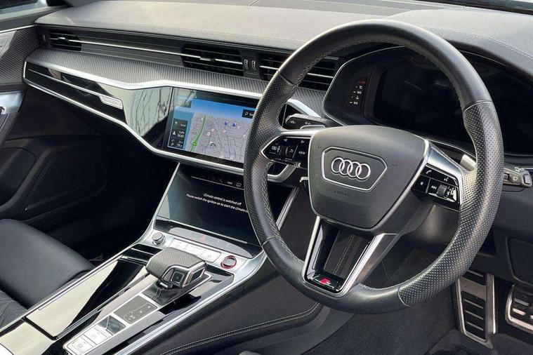 7" high resolution colour driver information display system, Audi connect safety and service (e-call), Audi connect with Amazon Alexa Integration, Audi drive select, Audi parking system plus - acoustic and visual park assist system for front and rear, Audi phone box with wireless charging, Audi virtual cockpit plus with digital 12.3" instrument cluster in full HD with additional dynamic and sport graphic display options, Automatic start/stop system with coasting functionality, Bluetooth interface, Lane departure warning system, MMI navigation plus with MMI touch with twin touch screens (10.1" and 8.6" screens) with haptic and acoustic feedback, Operating buttons in black gloss, Power operated tailgate, Rear view camera, Service interval indicator, Smartphone interface includes wireless Apple carplay/Android Auto, Voice control system, 24 litre AdBlue tank, 73 litre fuel tank, Diesel particulate filter, Quattro on demand, Audi front music interface, Audi sound system, Auxiliary input socket, DAB Digital radio, USB connection, All weather LED headlights, Black roof rails, Body colour S specific rear diffuser, Electric front/rear windows, Frameless auto dimming interior rear view mirror, Front intermittent wipers, Gloss black finish for the exterior audi rings and S6 logos, Gloss black highlights on the exterior area of the Audi Single frame, Gloss black highlights on the front and rear bumpers, Gloss black highlights on the radiator grille, Gloss black highlights on the side windows trim strips, Headlight washers, Heat insulating darkened glass in side and rear windows, Heat insulating glass in windshield, LED rear lights, LED signature front daytime running light, LED third brake light, Matt black side air intake grille with inlay in matt aluminium, Privacy glass, Rain and light sensors, Rear roof spoiler, Rear side wing doors, Rear wiper, 4 way electric lumbar support for driver and front passenger, 4 zone climate control, 40/20/40 split folding 3 rear seat bench in 3 parts with rear centre armrest, Aluminium gear knob, Black cloth headlining, Black steering wheel insert, Electrically adjustable front seats with driver memory, Front centre armrest, Front head restraints, Heated front seats, Height/reach adjust steering wheel, Illuminated door sill trims with S logo, Illuminated sun visors with vanity mirrors, ISOFIX child seat mounting and Top Tether with front passenger airbag deactivation, Luggage compartment system, Rear headrests, Single front passenger seat, Stainless steel pedals and foot rest, Valcona Leather with contrast stitching and S embossing + front super sport Seats + dinamica door insert, LED Interior Ambient Lighting Pack - A6, Non smoking pack - A6, Storage pack - A6, 3 point seatbelts on all seats, Airbags - Front side, front and rear including head, Audi pre-sense front, EBD - Electronic brakeforce distribution, Electromechanical parking brake, Electronic Stability Control (ESC) including ABS, ASR and EDL, Extended pedestrian protection measures, Manual child proof rear door locks, Seatbelt monitoring, Tyre pressure warning light, Warning triangle and first aid kit, Anti theft alarm with tow away protection, Anti-theft wheel bolts and wheel loosening detection, Immobiliser, Keyless Go, Remote central locking, Carbon twill inlays, 20" 5 V spoke star design Audi sport cast aluminium alloy wheels in matt titanium look,