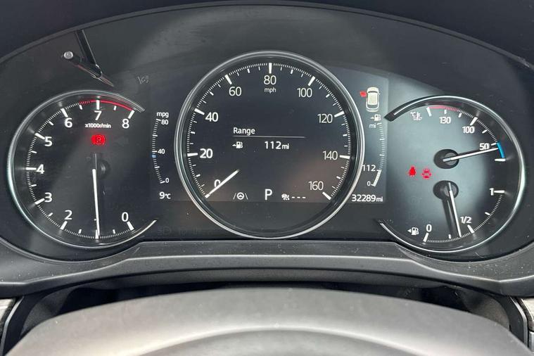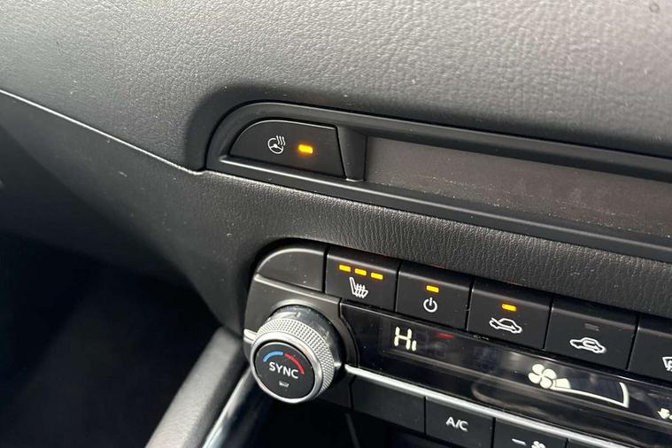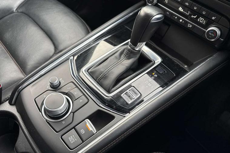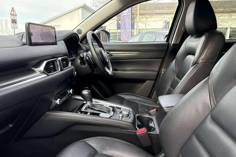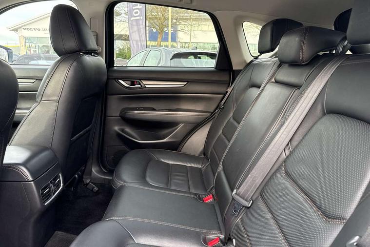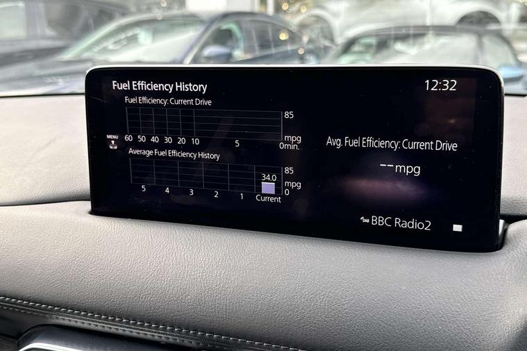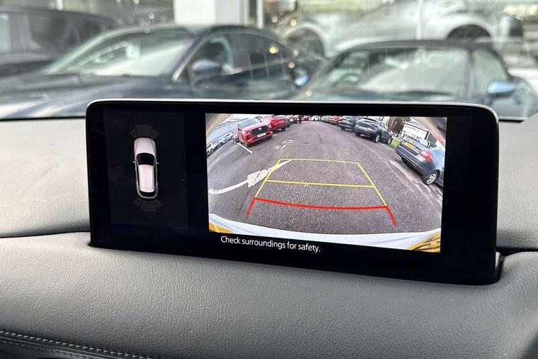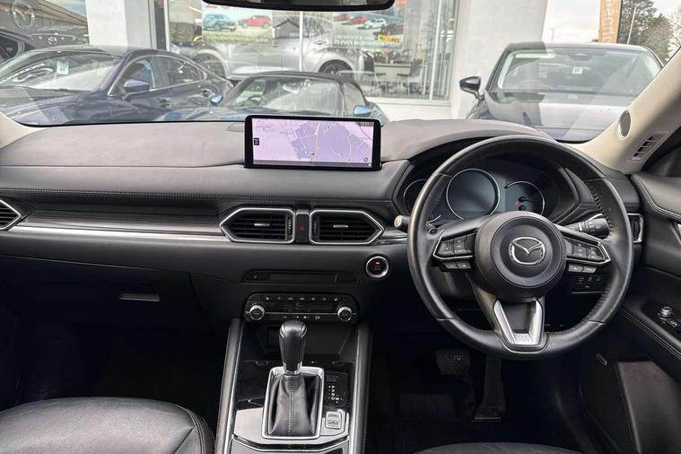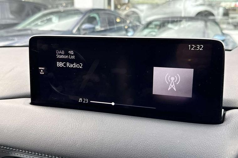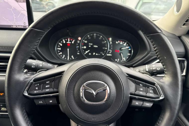 10.25" display with Mazda Connect infotainment, 7" colour TFT display, Advanced blind spot monitoring, Bluetooth connectivity with voice control, Collision prevention assist, Connected services, Cruising Traffic Support, Drive mode selector, Electric power steering, Emergency stop signalling system, Engine start/stop button, Forward collision warning, Front and rear parking sensors, Integrated navigation system, Intelligent speed assist, Lane departure warning system, Lane keep assist, Power liftgate, Qi wireless phone charging, Radar cruise control with Stop and Go, Rear cross traffic alert, Reversing camera, Service indicator, Traffic sign recognition (TSR), Trip computer, Windscreen projected colour active driving display (HUD) with memory, Wireless apple car play/android Auto, Cylinder Deactivation, i-stop, AM/FM radio, Bluetooth audio streaming, Bose premium sound system with 10 speakers, DAB Digital radio, Multimedia Commander including separate volume dial, Steering wheel mounted audio controls, Adaptive front lighting system, Auto dimming rear view mirror, Automatic headlights, Black inlay dashboard panel, Body colour door mirrors, Body colour roof spoiler, Body coloured front and rear black lower bumper mouldings, Coming/leaving home lighting function, Door mirror integrated indicators, Dual chrome tailpipes, Dusk sensitive headlamps, Electric front/rear windows with one touch auto up/down, Front grille in gloss black finish, Front grille in gloss black finish with chrome signature wing, Gloss black B and C pillars garnish, High beam assist, Intermittent rear wash/wipe, LED auto levelling, LED daytime running lights, LED front fog lights, LED Headlights, LED third brake light, Power folding and heated door mirrors, Power tilt/slide sunroof, Privacy glass (rear side windows only), Rain sensing front wipers, Rear side wing doors, Satin black side mouldings, Scuff plates, Shark fin antenna, Signature LED rear combination lights, Variable intermittent front wash/wipe, Vinyl with wood grain metal inlay door trim panel, Windscreen wiper de-icer, 12v electrical power outlet, 3 seat bench in 2nd row, 3 stage heated front seats, 40:20:40 Karakuri fold-flat seat system, 6 way electric adjustable passenger seat, 8 way electric driver seat with lumbar support + memory, Cargo room flat floor board with waterproof undertray, Driver seat power slide, recline and height adjustment, Driver, Front passenger and two rear grab handles with coat hooks, Driver/passenger front seatback pockets, Driver/passenger sunvisors + illuminated vanity mirrors (drivers with ticket holder), Dual zone climate control, Folding centre armrest with 2 cup holders, Front and rear door pockets, Front centre storage with two cupholders, Front passenger seat power slide, recline and height adjustment, Heated steering wheel, Humidity sensor, Illuminated glovebox, Interior dome light with integral spotlight, ISOFIX child seat anchorage points attached on outer rear seats, Karakuri tonneau cover, Leather upholstery, Leather wrapped steering wheel and gear knob, Light roof lining, Luggage compartment LED lighting, Luggage compartment power outlet, Paddle shifts, Rear air vents, Rear headrests, Rear seat recline, Roof mounted sunglasses holder, Single front passenger seat, Three height adjustable head restraints, Tilt/height adjustable steering wheel, USB Connectivity (2x front Type-C, 2x rear Type-B), White interior LED illumination lighting, 3 point front seatbelts with pre-tensioners, 3 rear 3 point seatbelts, ABS, Advanced Smart City Brake Support - SCBS, Child locks on rear doors, Driver and front passenger side airbags, DSTC-Dynamic Stability and Traction Control, Dual front airbags, Electronic brake force distribution, Electronic parking brake with auto hold, ESP, Front and rear curtain airbags, Front passenger airbag deactivation, G-Vectoring control, Hill hold assist, Seatbelt reminder front and rear, Single stage passenger airbags, Smart brake support with forward obstruction warning, Tyre pressure monitoring system, Automatic door locking when moving off, Deadlock, Immobiliser, Power door locks, Remote central locking, Smart keyless entry, Thatcham Cat.1 alarm, 19" diamond cut black alloy wheels, Tyre repair kit,