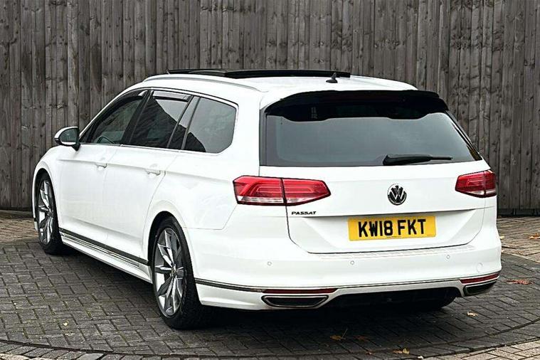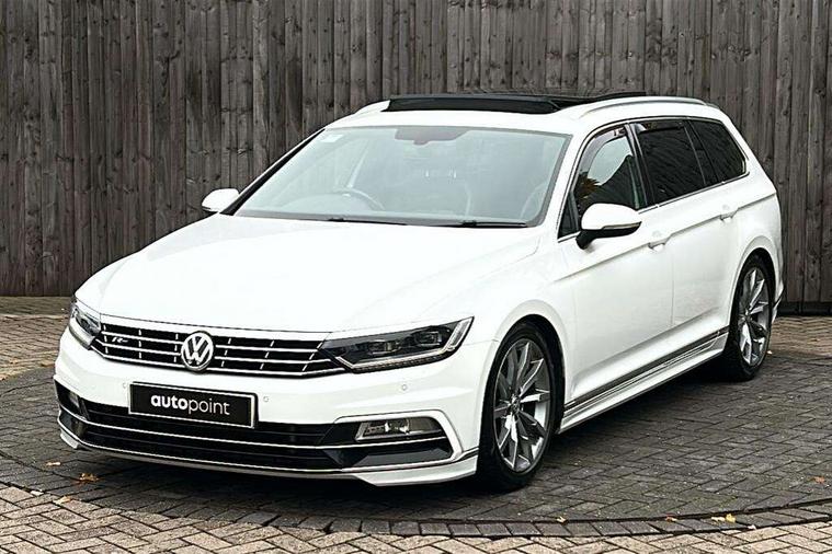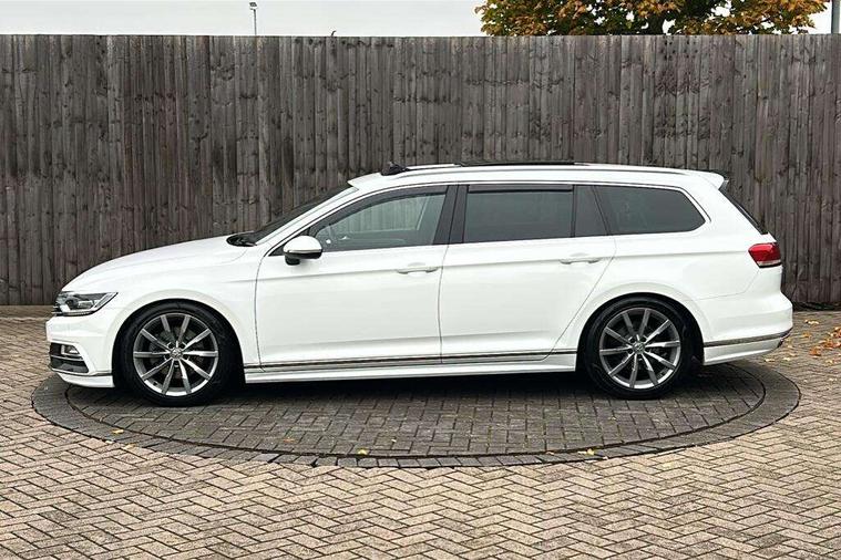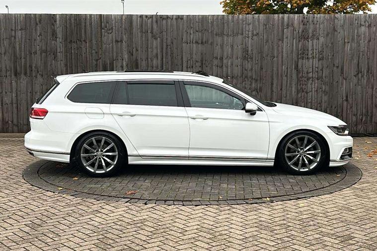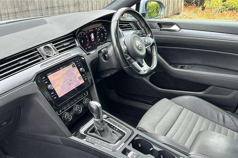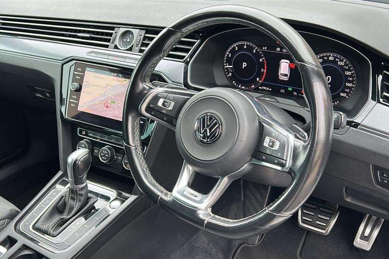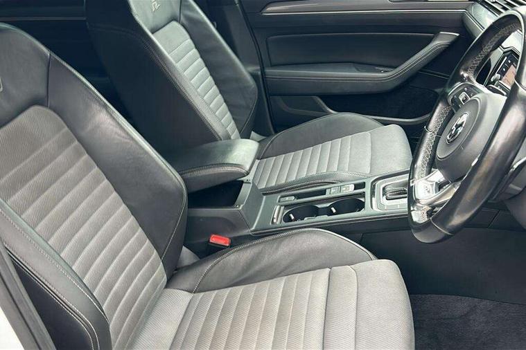 Adaptive cruise control, Analogue clock, App-Connect, Door/tailgate open warning lights, Driver alert system, Driver profile selection, Exterior temperature gauge with frost alarm, Information display, Low washer fluid warning light, Multifunction computer, Remote fuel flap release, Remote tailgate release, Rev counter with fuel gauge, Service interval indicator, Speed limiter, Warning buzzer and light for front seatbelts unfastened, Dynamic chassis control, XDS electronic differential lock, Auxiliary socket for external device, Composition media system with Radio/CD/MP3, DAB Digital radio, MDI with USB/iPod connection cables, SD card slot, Auto dimming driver's door mirror, Auto dimming rear view mirror, Automatic activation of hazard warning lights, Automatic coming/leaving home lighting function, Automatic headlights with dusk sensor, Body colour bumpers, Body colour door handles, Body coloured door mirrors, Chrome fog light surround, Chrome louvres in grille, Chrome side sills, Chrome side window surrounds, Chrome surround for air intake, Electric front windows, Electric panoramic sunroof with sunblind, Electric rear windows, Electrically adjustable and heated door mirrors, Front fog lights with static cornering function, Fully galvanised body, Gloss black finish on B pillar, Headlight range control, Headlight washers, Heated rear window, LED premium headlights with dynamic curve and LED daytime running lights, LED rear lights, LED rear number plate lights, Load sill protection, R Line body kit, Rain sensor, Rear wiper, Reverse activated kerb-view adjustment on passenger's door mirror, Silver roof rails, Trailer stability assist, Twin Trapezoidal tailpipes, Windscreen wipers/ intermittent wipe + 4 position delay, 12V Accessory socket in centre console, 12V socket in luggage compartment, 3 rear head restraints, 3 spoke multifunction leather steering wheel including paddle shift, 3 Zone electronic climate control with automatic air recirculation, 4 boot load lashing points, 40:20:40 split folding rear bench seat, Black roof lining, Driver's cushion tilt adjust, Entry lights on doors, Front + rear carpet mats, Front and rear interior lighting with delay and dimming function, Front centre armrest with storage compartment, Front comfort seats, Front cupholders x2 with covers, Front door pocket bottle holders, Height adjustable head restraints, Height/reach adjust steering wheel, Leather gearknob, Load through provision, Lockable, illuminated, cooled glovebox, Luggage compartment cover, removable, Luggage compartment lighting, Rear centre armrest with cupholder and storage, Stainless steel pedals, Storage compartment in driver's door, Storage compartment in passenger's door, Storage compartment in rear doors, Storage compartment in roof console, Storage pockets in backrests of front seats, Sunvisors with illuminated vanity mirrors, Variable boot floor, Winter pack - Passat - heated front seats, 3 rear 3 point seatbelts, ABS, brake assist and EBD, Automatic post collision braking, Curtain airbags, Door open warning reflectors, Driver/Front Passenger airbags, Driver/Front passenger WOKS head restraints, Drivers knee airbag, Electronic parking brake with auto hold, ESP with EDL + ASR, First aid kit, Front assist including city emergency braking, Front side airbags, Height adjustable front 3 point seatbelts + pretensioners, Hill hold function, Passenger airbag deactivation system, Pre crash system, Rear seatbelt warning indicator, Rear side airbags, Warning triangle, Alarm with interior protection, Electronic engine immobiliser, Keyless Start, Remote central locking with 2 remote folding keys, Brushed aluminium interior trim, Chrome air vent and instrument surround, Piano black centre console, White instrument dials,
