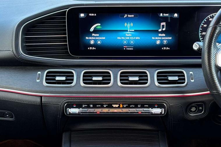 Attention assist, Blind spot assist, Brake wear warning display, Cockpit display 12.3" widescreen digital instrument cluster, Cruise control with variable speed limiter, Direct steer speed sensitive steering, DYNAMIC SELECT with a choice of driving modes (ECO, Comfort, Sport and Individual), Easy-pack tailgate - Powered opening/closing automatically, ECO start/stop function, Geofencing, Hard-disk navigation, Hey Mercedes Voice activation, High resolution 12.3" multimedia colour display, Lane keeping assistant (LKA), MBUX augmented reality for navigation, Mercedes me connect including emergency call system, accident recovery, breakdown management and maintenance, Outside temperature display, Remote boot release, Service indicator (ASSYST), Smartphone integration with Apple CarPlay and Android auto, Speed limit assist, Status display for rear seat belts in instrument cluster, Traffic Sign Assist, Traffic sign recognition including wrong way warning function and display of posted speed limits in the instrument cluster, Trip computer in multifunction display showing current fuel consumption, Wireless charging system for mobile devices, 85 litre fuel tank, Agility control suspension with selective damping system and lowered by 15mm, Diesel particulate filter (DPF), Incorrect fuelling protection, Additional USB connection, DAB Digital radio, Dual bluetooth interface, 2 USB ports (type C), MBUX multimedia system with DAB digital radio and touchpad including satellite navigation, Adaptive brake lights, Adaptive high beam assist, Aerial for GPS, Aluminium look, illuminated running boards with rubber studs, AMG bodystyling front and rear aprons and side skirts in polished aluminium, Body colour door mirrors, Body coloured bumpers, Electric windows with one touch opening/closing and obstruction sensors, Exterior mirrors heated and electronically adjustable, Front green tinted glass, Illuminated front door sill panels with "AMG" lettering, LED rear lights, Multi beam LED headlights, Privacy glass - heat insulating dark tinted glass, Radiator grille with integrated star and single louvre in matt iridium silver with chrome trim, Radio aerial integrated into rear window, Rain sensing windscreen wipers, Rear wiper, Roof rail system, Top surround of side windows in polished aluminium, Visible twin pipe exhaust system integrated into bumper, Waistline in polished aluminium, 3 spoke AMG multifunction steering wheel with touch control buttons, trimmed in black nappa leather with flattened bottom section, 3rd row of seats for 2 people, 4 way adjustable front head restraints and 2 way rear head restraints, 4 way lumbar support, 40:20:40 split folding rear seats, AMG brushed stainless steel sports pedals with rubber studs, AMG floor mats with AMG lettering, Artico man-made leather upper dashboard with contrast topstitching, Automatic child seat recognition sensor, Black fabric roof liner, Central stowage compartment with 12 V socket in centre console, Chrome door pins, Courtesy lights in rear grab handles with reading light functionality, Electric folding second row seats adjustments, Electronically adjustable three second row seats, Four way fully front electric seat adjustment, Front centre armrest with stowage compartment and illuminated grab handles, Glasses compartment in overhead control panel, Glove compartment - lockable, air conditioned and illuminated, Heated front seats, Interior lighting - 64 colour Ambient lighting, ISOFIX child seat attachment points two outer rear seats, Nappa leather upholstery, Seat occupancy sensor for front passenger seat, Steering column manually adjustable for height and reach, Steering wheel multifunction with gearshift paddles, Sunvisors with illuminated vanity mirrors, Thermotronic automatic 4 zone climate control, Touchpad, Airmatic package - GLE, Anti theft Protection package - GLE, Memory package - GLE, Mirror package - GLE, Parking package with 360 camera - GLE, Active bonnet, Active braking assist, Adaptive brake system with HOLD function and brake drying in the wet, Airbags - driver and front passenger, with extended adaptivity for front passenger airbag, Airbags - sidebag for driver and front passenger with combined thorax/pelvis bag, Airbags - windowbags, Anti-lock braking system (ABS), Childproof locks manually operated for rear doors and electrically operated for rear power windows, Drivers knee airbag, Electronic parking brake, Electronic Stability Programme (ESP), Perforated front brake discs and brake calipers with Mercedes-Benz lettering, Pre-Safe anticipatory safety system, Three point rear seat belts, Tyre pressure monitoring system and loss warning system, Warning triangle and first aid kit, Alarm system/interior protection/immobiliser, Central locking with interior switch, automatic locking and crash sensor with emergency opening function, Chrome surround electric key, Keyless Go starting function, Dashboard and door, anthracite open pore oak wood trim, Trim - Centre console, anthracite open pore oak wood trim, 22" AMG 5 twin spoke alloy wheels painted in tremolite grey with high sheen finish, Summer tyres with noise reducing absorber, TIREFIT with tyre inflation compressor,