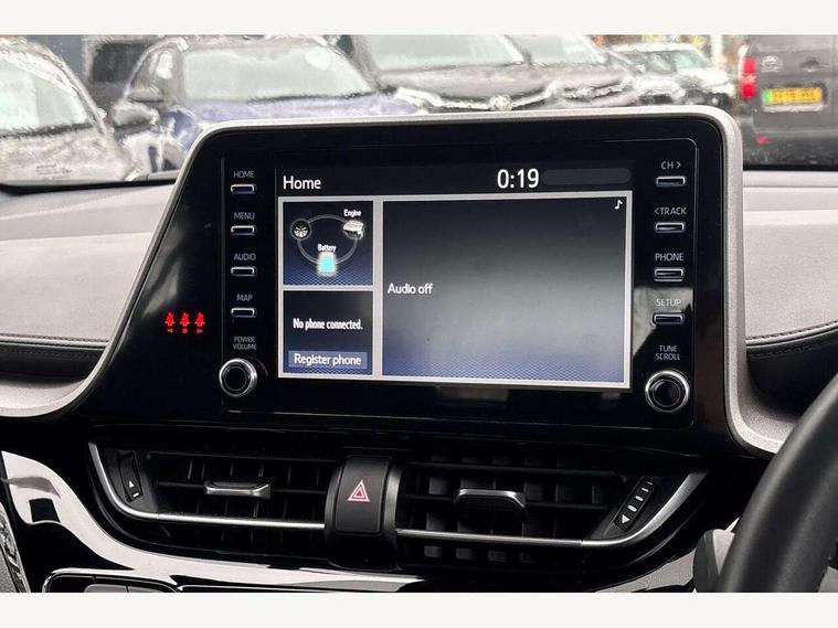 4.2" coloured TFT screen for multi-information display, Adaptive cruise control, Apple car play and Android auto, Bluetooth connectivity, E-call, Electric power steering, Hybrid system indicator, Lane departure alert with steering control, Lane trace assist, Push button start, Push button tailgate release, Remote boot door release in cabin, Remote boot door release in key, Reversing camera, Road sign assist - RSA, Smart voice assist, Trip computer, Voice recognition, Vehicle Stability Control (VSC), 6 speakers, AM/FM radio, DAB Radio (Digital Audio Broadcasting), Toyota touch 2 multimedia system with 8" display, USB connector, Wi-fi connectivity, Anti-jam protection on power windows, Auto high beam, Auto up and down function on all power windows, Automatic headlights, Automatic headlights cut-off, Black and body coloured rear bumper, Black lower front grille, Black upper front grille, Body colour door handles, Body colour door mirrors, Body colour front spoiler lip, Body coloured front bumper, Boot door release with push button, Electric heated door mirrors, Follow me home headlights, Front and rear power windows, Front fog lights, Headlight cut off reminder, Honeycomb lower front grille, LED daytime running lights, LED High mounted stop light, LED rear brake lights, LED rear combination lights, Manual headlight levelling, Manually retractable door mirrors, Noise reduction layer on front windows and windscreen, Power adjustable door mirrors, Rear side wing doors, Rear spoiler, Rear tailgate, Rear window defogger, Rear window wiper, Reflective LED headlights, Shark fin antenna, UV-filter on driver and passenger windows, UV-filter on rear windows, Variable front intermittent wipers, 12v power outlet - front, 3 rear headrests, 3 seat bench in 2nd row, 3 spoke leather steering wheel, 60/40 split folding 2nd row rear seats, Adjustable rear headrests, Adjustable speed limiter switch on steering wheel, Assist grips front and centre pillar, Audio and telephone switches on steering wheel, Black front door assist grips, Boot light, Chrome interior door handles, Cloth upholstery, Driver and front passenger personal light, Driver and front passenger Whiplash Injury Lessening seats, Dual zone automatic air conditioning, Floor mats, Front cupholders, Front head restraints, Front sports seats, Glovebox with internal light, Hard tonneau cover, Hooks for luggage holding net, Humidifying Nanoe air purifier, Illuminated entry system, Isofix attachments on outer rear seats, Leather gearshift, Light on driver sun visor, Light on passenger sun visor, Manual telescopic steering wheel, Manual tilt steering wheel, Manually adjustable lumbar support on driver seat, Manually height adjustable driver seat, Manually height adjustable front passenger seat, Manually reclining driver seat, Manually reclining front passenger seat, Manually sliding driver seat, Manually sliding front passenger seat, Microphone on front personal light, Mirror on driver sun visor, Mirror on passenger sun visor, Multimedia switches on steering wheel, Pollen filter, Shopping bag hooks, Single front passenger seat, Slow opening on lower glovebox, Voice recognition switch on steering wheel, 16 Disk front wheel brake, 3x3 point rear seatbelts, ABS+EBD+Brake assist, Electronic parking brake, Front and rear seatbelt reminder, Front passenger airbag on/off switch, Hill start assist control (HAC), Pre collision system with pedestrian detection, Pre-tensioners and force limiters, Rear door child safety locks, SRS Airbags - Driver + Front passenger, front side, front and rear curtain and driver's knee airbags, Toyota safety sense, Tyre pressure monitoring system, Tyre pressure warning system, Acoustic vehicle alert system (AVAS), Glass-breaking alarm sensors, Immobiliser, Intrusion alarm, Intrusion sensor, Motion sensor alarm, Power door locks, Power passenger window lock, Remote central locking, Black lower dashboard, Black upper dashboard, Grey deco line on upper dashboard, Matte black centre console, Tyre repair kit,