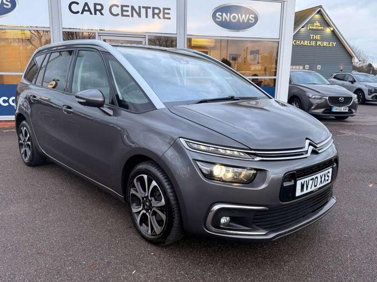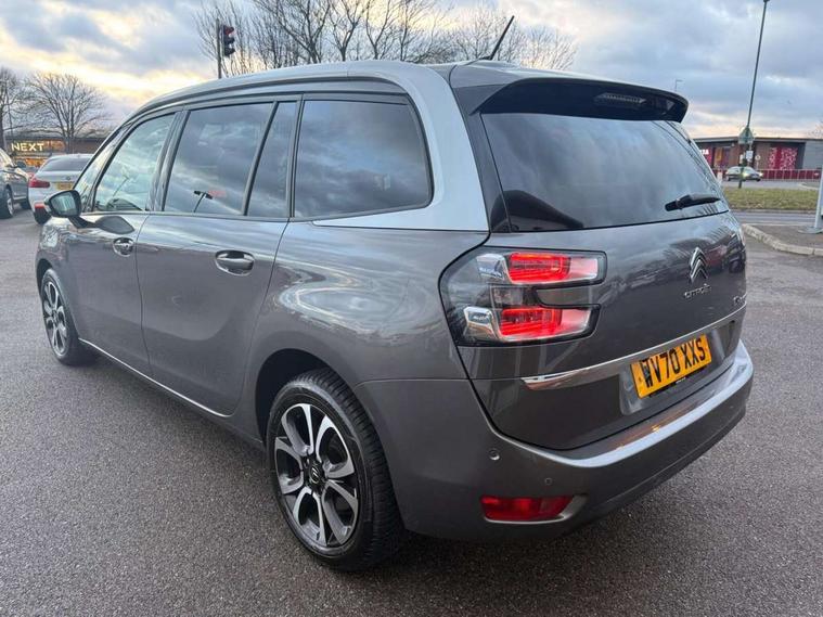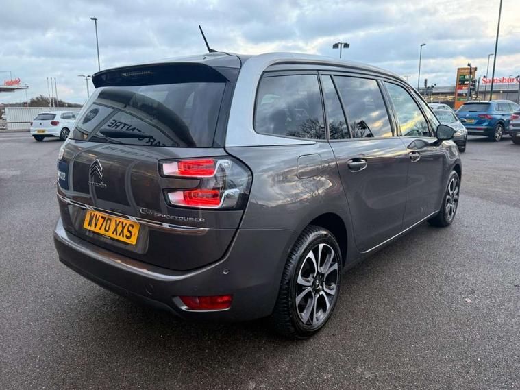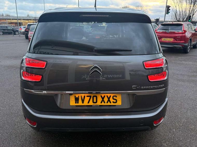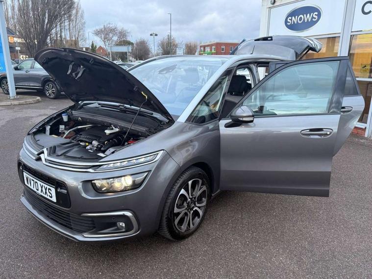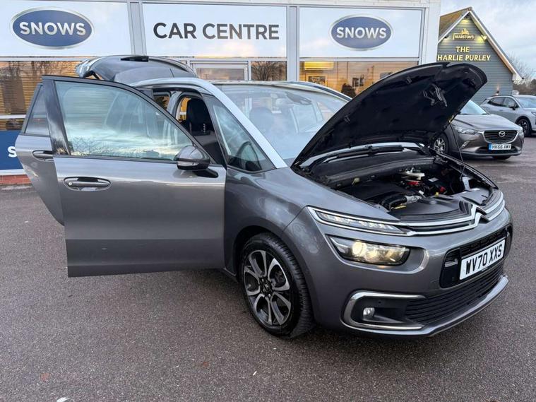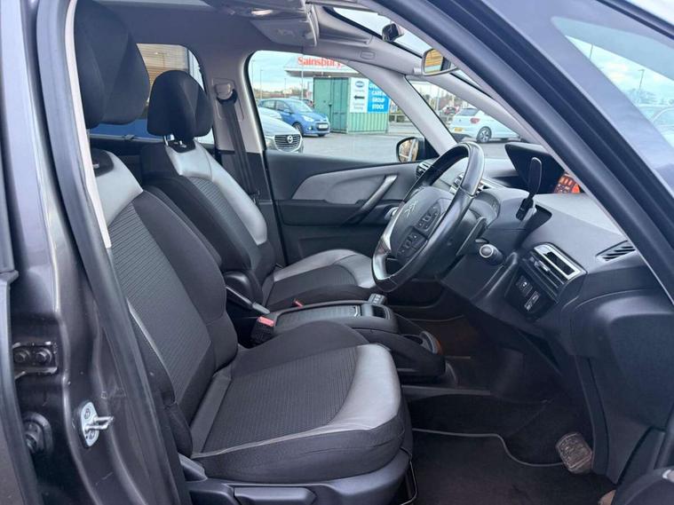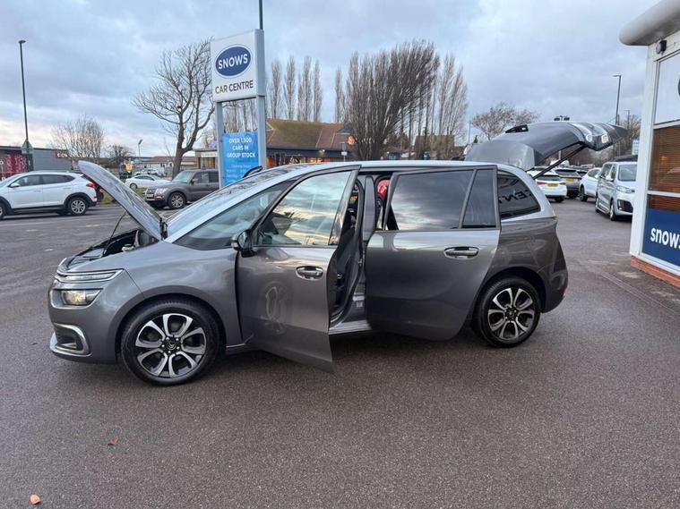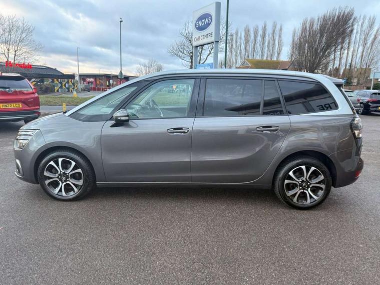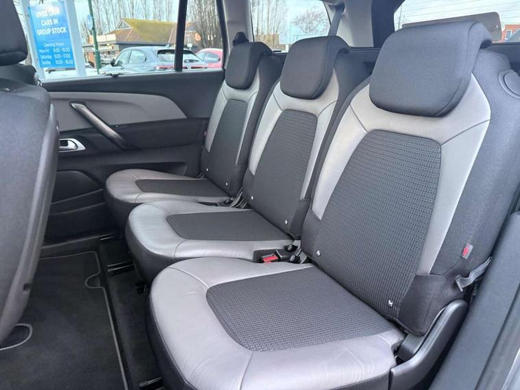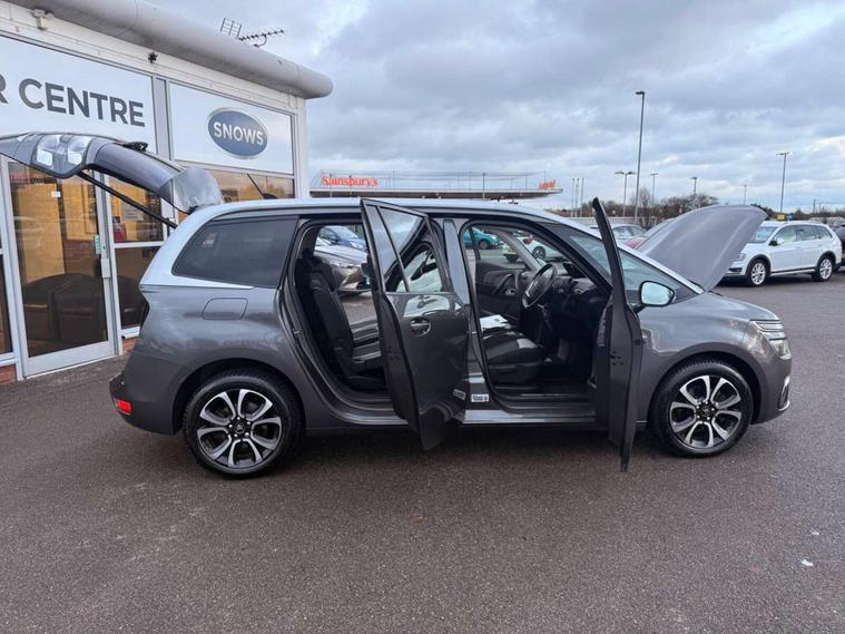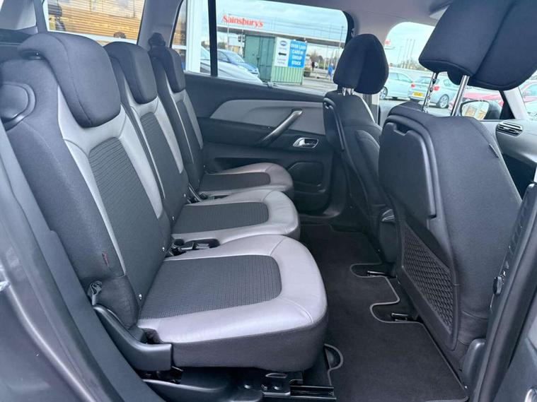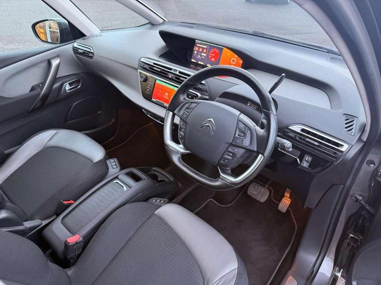 12" Panoramic HD central display, 7" Touch drive interface, Active blind spot monitoring system, Active cruise control with speed limiter and braking function, Active lane departure warning system, Audible lights on warning, Citroen connect nav with speed cam and danger zones alert, Coffee Break Alert, Driver attention alert system, Find my car feature, Forward collision warning, Front parking sensor, LED alert on door mirrors, Mirror screen with mirror link and car play, Park assist function, Rear parking sensor, Remote fuel cap release, Reversing camera, Service indicator, Speed limit recognition system, Trip computer, Variable assistance power steering, Bluetooth hands free and media streaming, DAB Digital radio, RDS radio with 6 speakers and Aux socket, Steering wheel mounted controls, 3D LED rear lights, Aluminium front sill scuff protectors, Aluminium side profile with integrated roof bars, Auto dimming electrochrome rear view mirror, Automatic activation of hazard warning lights, Automatic lights and windscreen wipers, Body colour bumpers, Body colour door handles, Body colour electrically heated, folding and reverse dipping door mirrors with LED courtesy light, Chrome lower front bumper insert, Dark tinted side windows and rear windscreen, Double xenon headlights, Electric front/rear windows with one touch/auto up/down, Foot operated motorised tailgate, Front fog lights, High level LED brake light, Intelligent beam headlights, LED daytime running lights, LED front indicators, Panoramic glass sunroof with dark tinted glass/electric sunblind, Panoramic windscreen with sliding interior sun blinds, Rear fog lights, Rear wiper, Windows total closure mode, 12 volt accessory power socket in central storage compartment, 3 separate full size rear seats with adjustable recline angle and retractable headrests, 8 lashing eyes in boot, Additional 12 volt sockets in row 2 and boot, Air vents for rear seat passengers, Automatic digital dual zone air conditioning, Black panel on/off instrument lighting, Boot light, Child observation mirror, Cup holders, Dimmable interior mood lighting, Driver and front passenger seats adjustable armrests, Driver/passenger sunvisors and vanity mirrors, Fabric load cover (parcel shelf), Fan speed adjustment for rear seat passenger air vents, Fold-down aircraft style tray tables (integrated into back of front seats), Front and rear courtesy reading lights, Front and rear floor mats, Front door pockets with bottle holders, Front headrests, Front passengers seat flat folding, Height adjustable front passenger seat, Height and reach adjustable high quality leather steering wheel with 4 control zones, Height/tilt adjustable driver's seat, Illuminated and ventilated glove box, Illuminated centre console storage, Integrated retractable rear side window sun blinds, Interior lights activated when doors unlocked, Massage and lumbar function for driver and front passenger, Rear seats with individual sliding fore/after adjustment, Rear underfloor storage [row 2], Removable centre storage box with sliding lid, Storage under driver's seat, Three ISOFIX mounting points with top tether on all rear seats, Two individual seats with retractable headrests, ABS with Electronic brakeforce distribution and Emergency braking assistance, Active safety brake, Automatic electronic parking brake, Driver, front passenger, front lateral and curtain airbags, Electronic Stability Control (ESC) with intelligent traction control (auto re-activation 30mph+), Five 3 point inertia reel seat belts, Front inertia reel seatbelt with pre-tensioners and force limiters, Hill start assist function, Mono-tone horn, Passenger airbag deactivate switch, Tyre pressure monitor, Tyre under inflation indicator, Unfastened seatbelt visual warning system on all seats + audible warning for driver/front passenger (front passenger presence detection), Immobiliser, Keyless entry and start, Perimetric and volumetric anti theft alarm, Remote central locking + deadlocks, Aluminium dashboard trim and air vent surrounds, Two tone soft touch upper dashboard, 17" Pontevedra diamond cut alloy wheels,