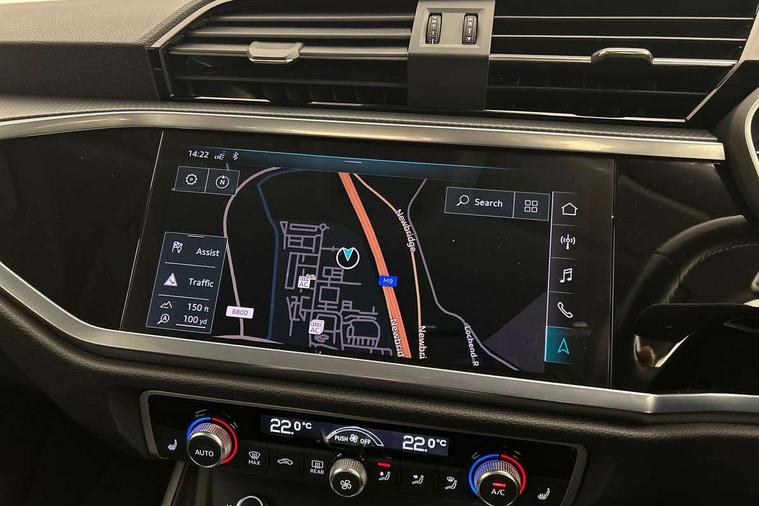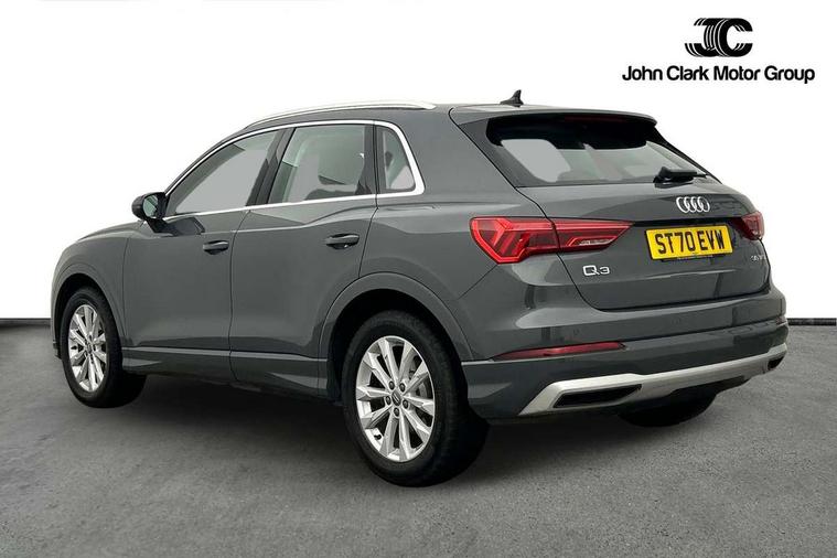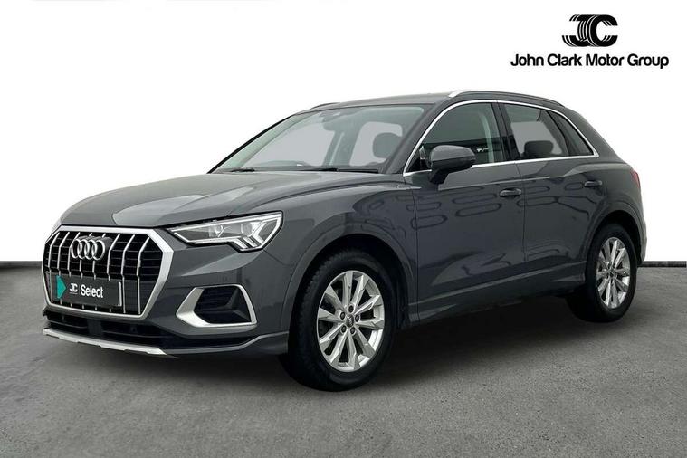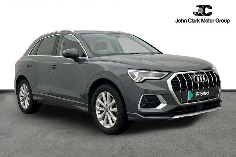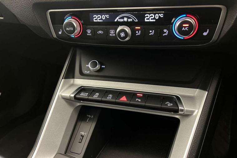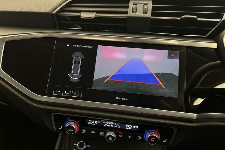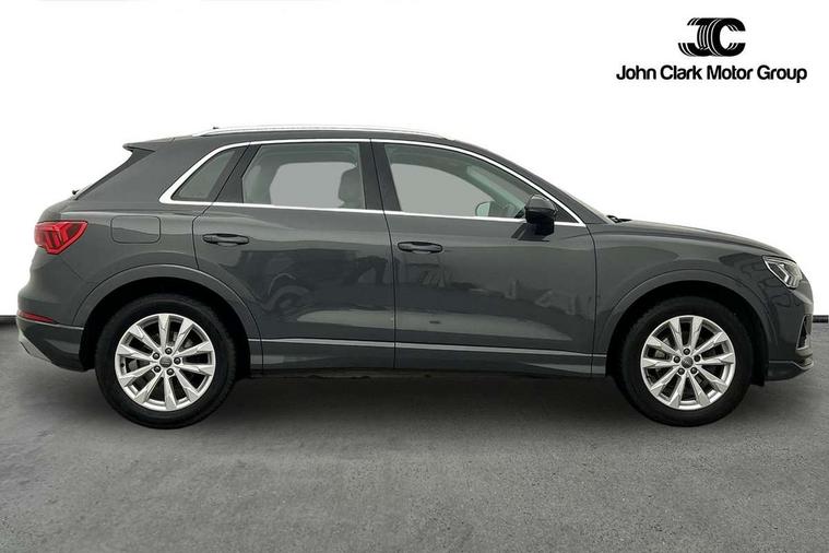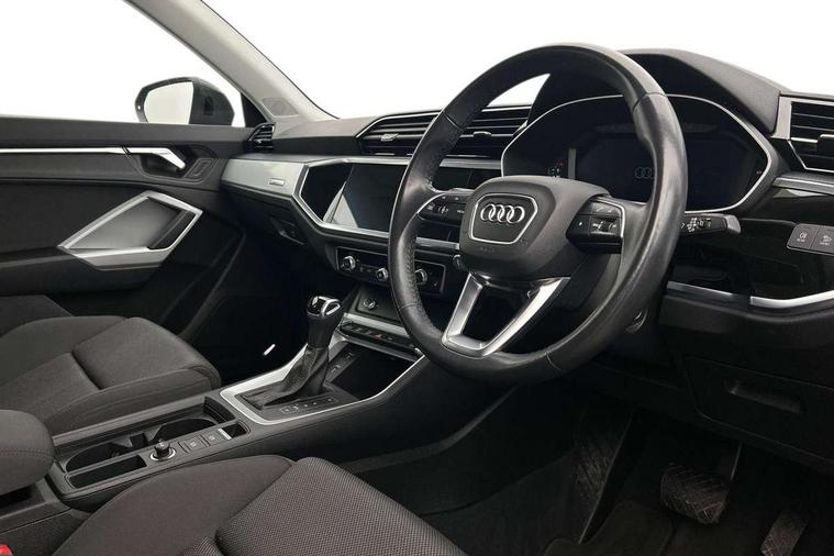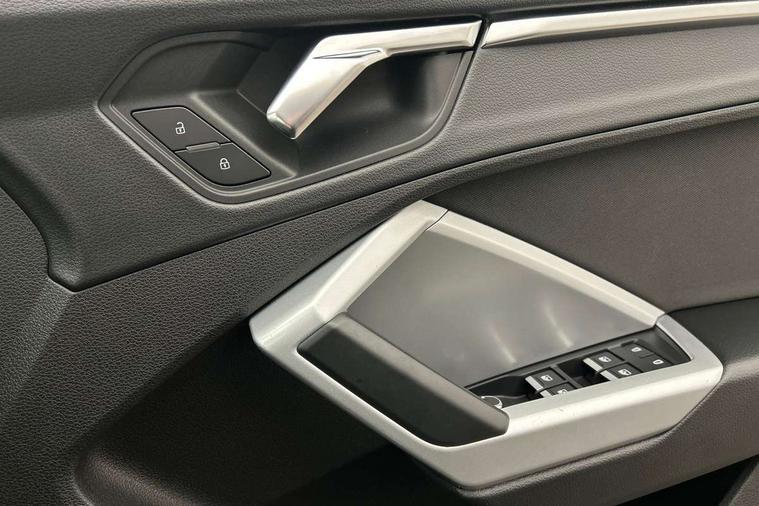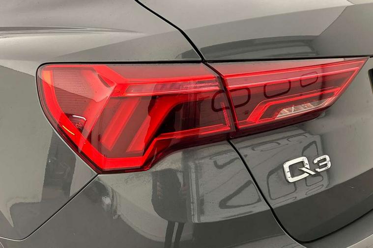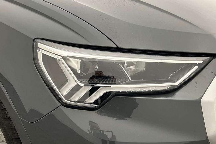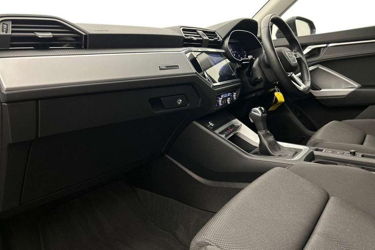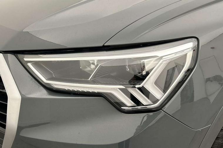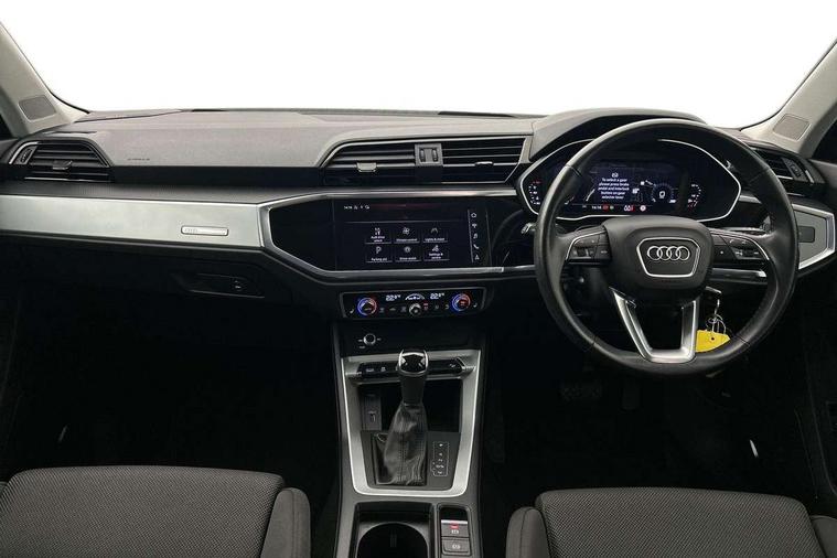 Audi connect safety and service (e-call), Audi drive select, Audi lane departure warning, Audi side assist, Audi smartphone interface includes wireless Apple carplay/Android Auto, Audi Virtual Cockpit - 10.25" display, Bluetooth interface, Camera based traffic sign recognition, MMI Navigation Plus with high resolution 10.1 inch touchscreen colour display, Power operated tailgate, Progressive steering, Service interval indicator, Start stop system with recuperation, Voice control system with natural language interaction, 48V Mild hybrid technology, Standard suspension, 1 x USB type C and 1 USB type A charging points, 6 passive loudspeakers, DAB digital radio module, Acoustic windscreen, Aluminium roof rails, Aluminium window trim, Auto dimming frameless rear view mirror, Body coloured bumpers, Electrically folding, adjustable and heated door mirrors with integrated LED side indicators and kerb view function for passenger side, Front and rear electric windows, Front fog lights, Front side air inlets in matt selenite silver, Front spoiler in matt selenite silver, Grille vertical bars in aluminium silver/Matt, High gloss black finish B and C pillars, LED headlights with LED daytime running lights and dynamic rear indicator, LED rear lights, Rain and light sensors, Rear diffuser strip in matt selenite silver, Silver chrome grille surround, Titanium black radiator grille, 12V socket in rear centre console, 40:20:40 folding with manual adjustment for 60:40 forwards/backwards position and backrest angle, Adjustable rear seat bench/backrest, Aluminium door sill trims, Dual zone electronic climate control, Front and rear floor mats, Front and rear headrests, Front and rear roof module including reading lights, Front centre armrest, Glove compartment lighting, Height and reach adjustable steering wheel, ISOFIX child seat mounting for front passenger with airbag deactivation and outer rear seat including top tether attachment point for outer rear seats, Luggage compartment light, Lunar silver cloth headlining, Manual front seats with height adjustment, Stainless steel luggage compartment sill finisher, Tool kit, Non smoking pack - Q3, 3x3 point rear seatbelts, 6 airbags - Driver, front passenger, curtain and side windows, Electrically operated child locks on rear doors, Electromechanical parking brake, Electronic stabilisation control including ABS, ASR and EDL, Hill descent control, Hill hold assist, Pre sense basic, Seatbelt monitoring, Tyre pressure warning, Warning triangle and first aid kit, Anti theft alarm, Anti theft wheel bolts, Audi pre-sense front with pedestrain and cyclist recognition, Remote central locking, Micrometallic silver inlay, MMI touch colour display in glass look, black with surround in aluminium look, Tyre repair kit,