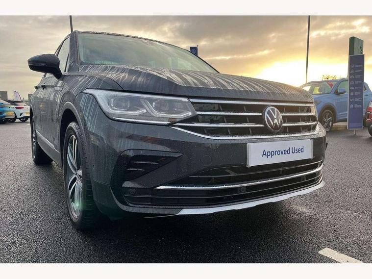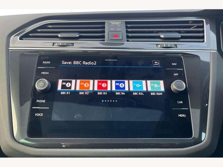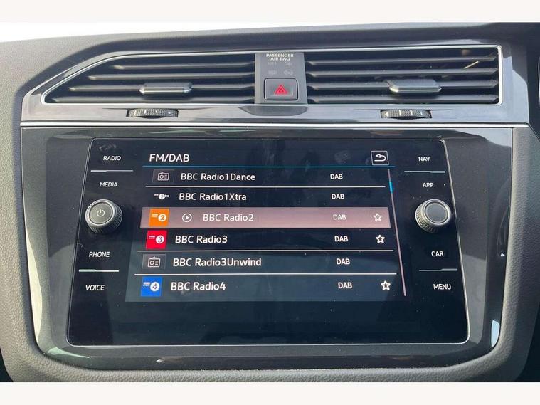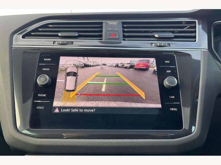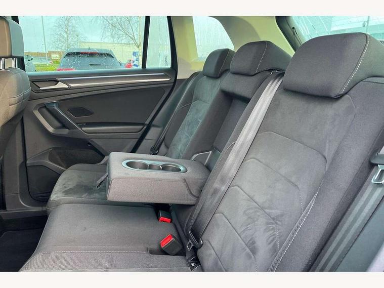 Adaptive cruise control ACC stop and go including speed limiter, App-Connect incl. App-Connect Wireless for Apple CarPlay and Android Auto, Bluetooth phone integration system, Digital Cockpit Pro - Active info display, Distance control assist, Driver alert system, Driver profile selection, Dynamic road sign display, eCall emergency call system, Electromechanical speed sensitive power steering, Engine start/stop button, Lane keeping system Lane Assist, Lights on warning, Motorised electric tailgate operated via key fob, drivers door and foot movement under tailgate, Multifunction front facing camera, Outside temperature display, Premium multifunction display with multi colour display, Remote control boot opening, Rev counter, Revision / skills operating concept travel assistant, Service interval indicator, Speed limit display, Start/stop system with regenerative braking, Tailgate/trunk lid unlocking from outside, Trip computer, Warning sound and light for doors and tailgate open, Battery regeneration during braking, XDS electronic differential lock for improved traction and handling, 2 USB-C ports in the front, 1 USB-C charging socket on the center console in the rear, Diversity antenna for FM reception, Radio, SD card slot, Simultaneous pairing of 2 compatible mobile devices, SMS functionality - read, compose and send SMS messages using touch-screen display, Title and cover art display, Aluminium door sill protectors, Auto dimming interior rear view mirror, Automatic headlight control system, Body colour door handles, Body coloured bumpers, Body coloured door mirrors with integrated indicators, Coming/leaving home lighting function, Dynamic headlight range control, Front and rear electric windows, Heated rear window, High level 3rd brake light, IQ light-Adv high beam, Dynamic light assist for LED matrix headlamp+LED separate DRL+DCL, dark red rear LED tech, Poor weather light+ cornering light, Laminated safety glass windshield, heat and sound insulating, LED rear number plate lights, Poor weather light and cornering light, Privacy glass for rear side windows and rear window, Rain sensor windscreen wipers, Rear exhaust tailpipe, Rear fog lamp, Rear side wing doors, Rear windscreen washer and wiper with interval delay, Side and rear windows in heat insulating glass, Tilting and sliding panoramic sunroof with rear panoramic sunroof, Trailer Stability Programme, Windscreen wipers/ intermittent wipe + 4 position delay, 12V outlet in center console rear and in luggage compartment, 12V outlet in front and tray, 2 cup holders in front, 2 LED front reading lights, 2 LED rear reading lights, 3 bench rear seats in 2nd row, 3 rear headrests, 4 load lashing points, 40:20:40 split folding rear seats, Air Care Climatronic 3 zone automatic climate control with enhanced air filter and controls in the rear, Backrest release for left front seat, Climate control unit rear with touch function, Door and side trim panel in foam film and woven fabric, Front + rear carpet mats, Front centre armrest, Front footwell illumination, Front seats head restraints (x-adjustment), Height adjustable front seats, Height/reach adjust steering wheel, Instrument lighting white adjustable panel illumination, Interior light with delay, Isofix Preparation 2 Rear child seats, Leather gear knob, Lockable cooled glovebox, Luggage compartment lighting, Luggage net, Rear bench seat asymetrically split folding, longitudinally movable and folding with load-through hatch and center armrest, Remote unlocking for rear seat backrest, Removable luggage cover, Removable rear headrests, Safety optimised front head restraints, Single front passenger seat, Sliding/reclining rear seats, Standard rear seat release, Storage compartment in driver's door, Storage compartment in passenger's door, Storage compartment in rear doors, Storage compartments in luggage area left and right, Storage tray on dashboard, Sun visors with illuminated vanity mirrors, Top front comfort seats, Variable boot floor, height adjustable and removable, Ambience pack - Tiguan, Chrome pack - Tiguan, Easy open and close pack with safelock - Tiguan, 3 point seat belt for centre rear seats, 3 point seat belts with seat belt pretensioners for the outer rear seats, Active bonnet, Curtain airbags for front and rear passengers, Driver/Front Passenger airbags, Drivers knee airbag, Electronic parking brake with auto hold, Electronic Stability Control with driver steering recommendation, ABS, ASR, EDL, EDTC and trailer stabilization, Front assist with autonomous emergency braking (for Adaptive Cruise Control ACC up to 130 mph), Front disc brakes, Front passenger airbag deactivation, Front side airbags, Height adjustable front 3 point seatbelts + pretensioners, Hill hold control, Manual child proof rear door locks, Pedestrian monitoring system, Power assisted brakes, Proactive passenger protection system in combination with front assist, Rear disc brakes, Rigid safety cell with front and rear crumple zones, Two tone horn, Warning sound and light for front seat belts if unfastened, Anti theft alarm system with interior monitoring, backup horn and towing protection, Anti theft wheel bolts, Central locking system with safelock radio remote control and 2 remote control folding keys, Electronic engine immobiliser, Tool kit,