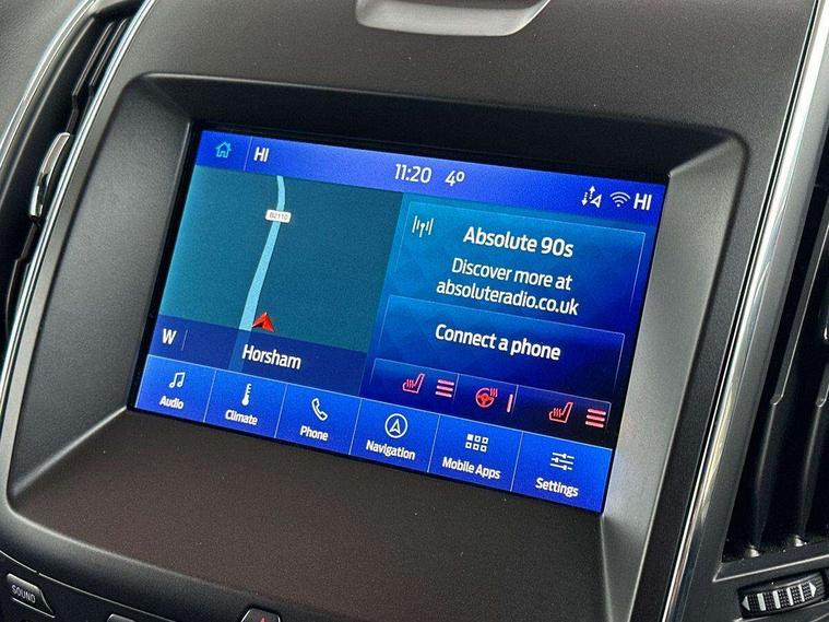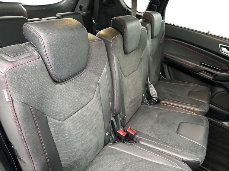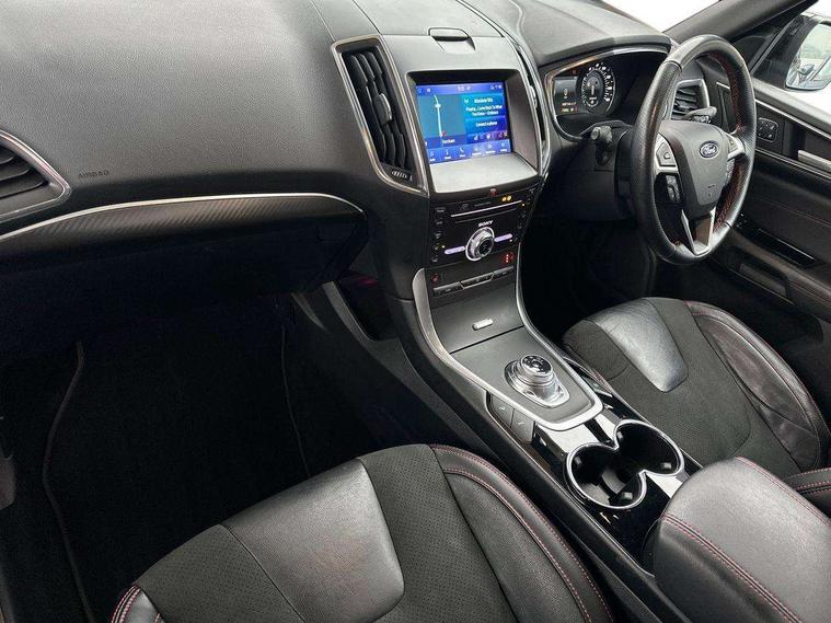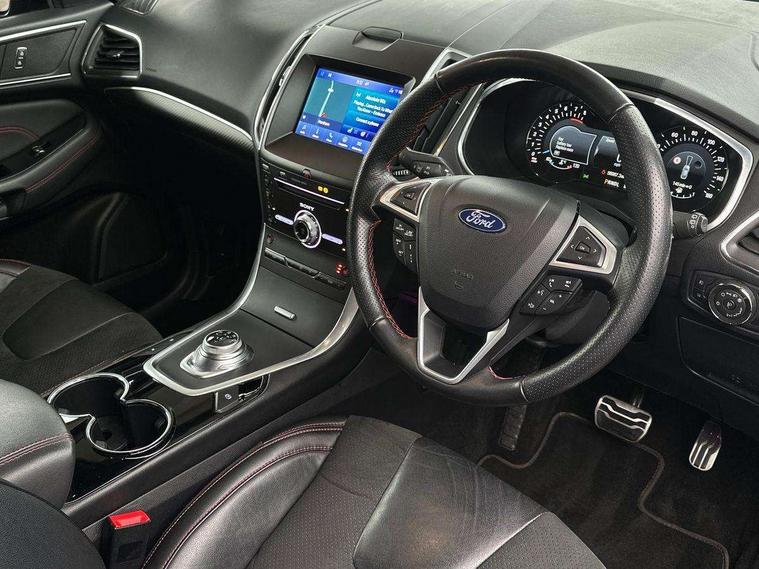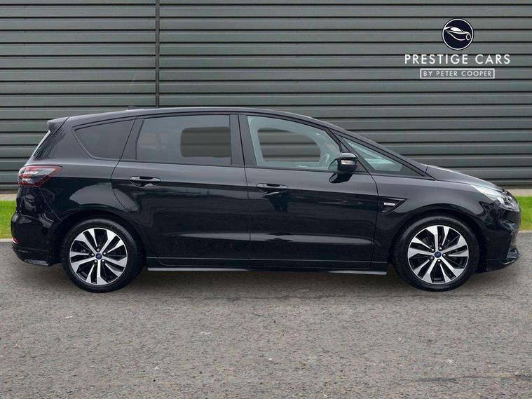 'Ford Power' starter button, 10.1" semi digital cluster, Easy fuel capless refuelling system, eCall emergency call system, Front and rear parking sensors, Lane keeping aid including driver impairment monitor and active steering with lane departure warning, PAS, Rotary gear shift dial, Traffic sign recognition, Unique instrument cluster, Sports suspension, Steering wheel mounted controls, 3rd brake light, Auto dimming rear view mirror, Automatic headlights, Automatic wipers with variable sensitivity adjustment, Black trim to side windows, Body colour door handles, Body coloured bumpers, Full body coloured trim, Halogen front fog lights, Halogen projector headlights, LED daytime running lights, LED rear lights, Lower front grille with chrome surround, Power fold mirrors - heated, indicators with puddle lamps, Power operated front and rear windows, Quickclear heated front windscreen, Rear privacy glass - dark glass to rear windows, Rear side wing doors, Rear spoiler, ST-Line illuminated scuff plates, Tailgate wash/wipe, Tinted glass, Unique front, rear and side sports bodystyling with dark exterior detailing, Unique ST-Line badging, 10 way power adjustable drivers seat with memory function, 10 way power passenger seats, 2 x 3rd row individual seats with fold flat, 230V power outlet in centre console, 3 x 2nd row individual seats wih fold flat, slide and recline, Aluminium sports pedals, Ambient lighting, Dark headliner, Dual zone electronic automatic temperature control, Floor mats in all three rows, Front and rear head restraints, Front seat back table trays, Heated steering wheel, ISOFIX attachments for child seats in 2nd row, Overhead console with sunglasses stowage, Perforated leather trimmed steering wheel with red stitching, Pollen and odor air filter, Reach and rake adjustable steering column, Salerno part leather upholstery with perforated miko suede inserts + red stitching, Single front passenger seat, Sports seats, Winter pack - S-Max, 3 point seatbelts on all seats, ABS/EBD, Driver/Front Passenger airbags, Drivers knee airbag, Electric handbrake, ESP+EBA, Front and rear (row 2) curtain airbags, Front side airbags, Manual child lock in rear doors, Passenger airbag deactivate switch, Pre collision assist system, Traction control, Tyre pressure monitoring system, Immobiliser, Keyless entry system, Locking wheel nuts, MyKey system, Remote control central locking, Thatcham alarm, Tyre inflation kit,