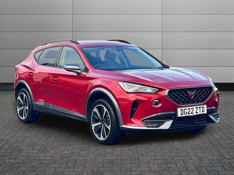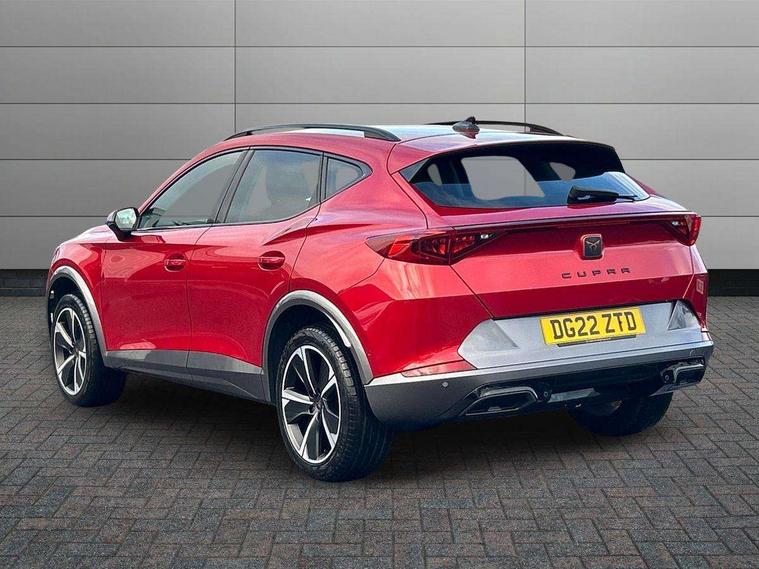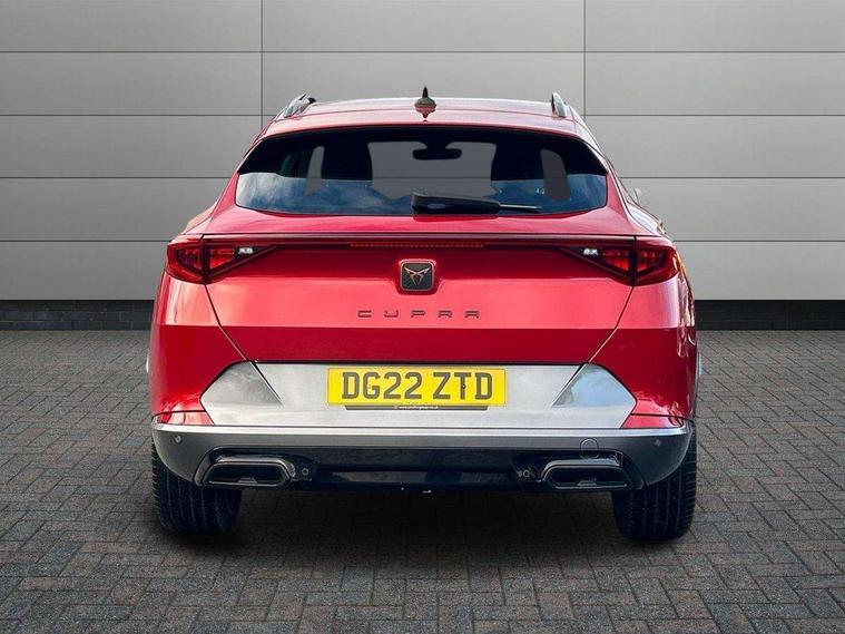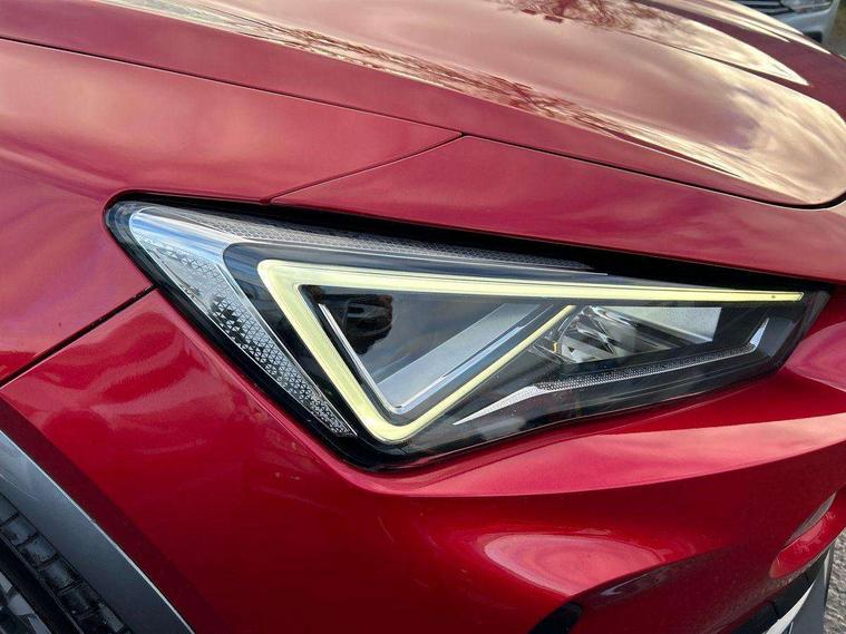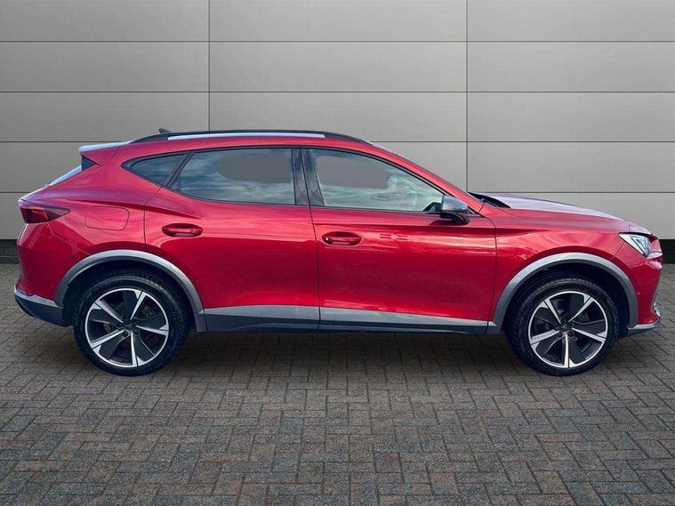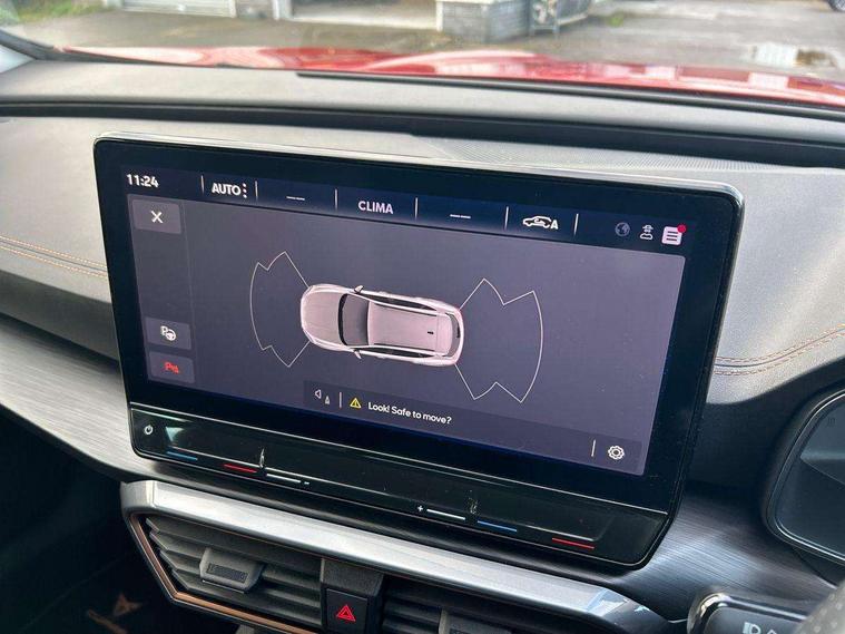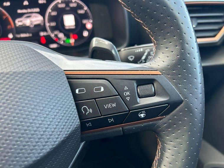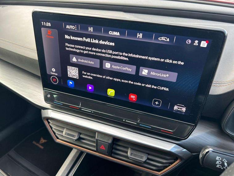 Digital cockpit and configurable dashboard, Driver alert system, Driving profile selection, E-call, Forward collision warning with automatic braking, Lane assist, Navigation system with 12'' Touchscreen Display, PAS, Predictive adaptive cruise control with speed limiter, Rear parking sensors, RPM, trip computer, outside temp gauge, instrument light brightness, low fuel warning light, lights on reminder, gearshift indicator, Service interval indicator, Start/stop system with regenerative braking, Voice control system, Wireless apple carplay, Wireless phone charger, Electronic locking differential and dynamic traction support, Standard suspension, 2 front and 2 rear USB type C sockets, Auxiliary input socket, DAB radio, Auto dimming rear view mirror, Body colour door handles, Body coloured bumpers, Dark grey wing mirror, Daytime running light with automatic headlight control and coming home feature, Dynamic headlight range control, Electric front/rear windows, Electrically adjustable, heated and folding door mirrors, Front fog lamps with cornering function, Gloss black roof rails and window surrounds, LED Headlights, LED Taillights with dynamic indicator, Rain sensing wipers, Rear diffuser with black simulated exhaust pipes, Rear side wing doors, Rear wash/wipe, Third brake light, Tinted rear windows, Welcome lights, 12v power supply in centre console, 12V socket, 12v socket in loadspace, 2 front and 2 rear reading lights, 230V socket, 3 seat bench in 2nd row, 60/40 split rear bench seat with armrest and mechanical seat release, Dust/pollen filter, Front and rear head restraints, Front centre armrest, Height/reach adjust steering wheel, Illuminated interior front door sills, Illuminated sunvisor with mirror, Interior ambient lighting, Isofix, Leather multi function heated steering wheel with gear shift paddles, Luggage tie-down hooks, Manually adjustable height and lumbar support for front seats, PVC/Cloth upholstery with copper stitching + Sport seats, Single front passenger seat, Three zone climate control with control panel in rear, Variable luggage/load compartment floor, Safety and driving pack (M) - Formentor, 3 point seatbelts on all rear seats, ABS, Brake control system - ESC and brake booster, Child proof door locks, Driver and front passenger airbags with front passenger airbag de-activation, Electronic parking brake, Front and rear disc brakes, Front side curtain airbags, Hill hold control, Seat belt reminder for front and rear seats, Tyre pressure monitoring system, Anti theft alarm system, Keyless entry and start system (KESSY), Locking wheel bolts, Copper and aluminium interior detailing,