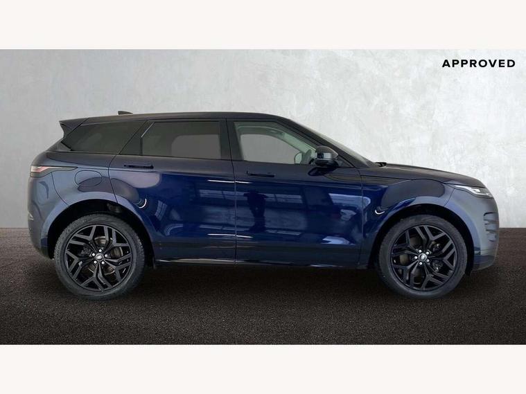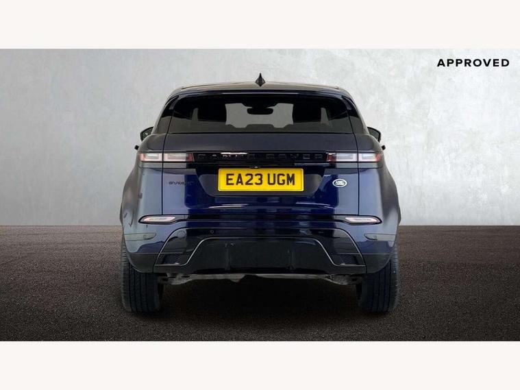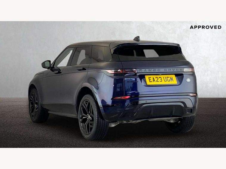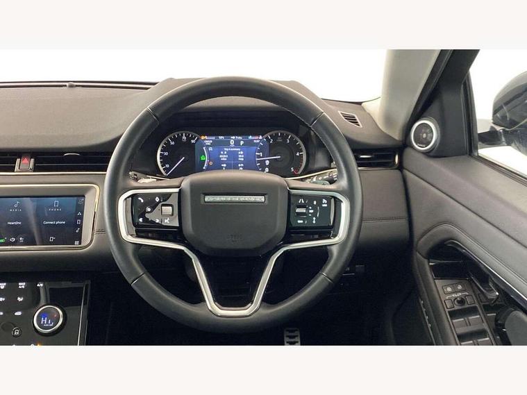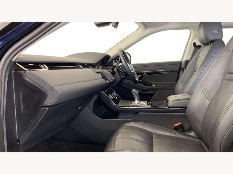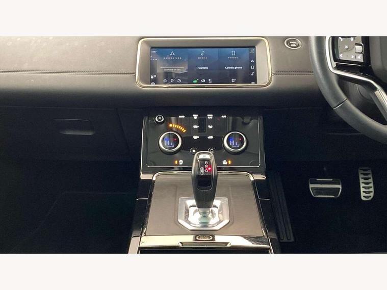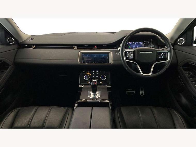 Adaptive cruise control, Android Auto, Apple car play, Blind spot assist, Bluetooth connectivity, Brake pad wear indicator warning light, Driver condition monitor, eCall emergency system, Electronic power assisted steering (EPAS), Front and rear parking aid, InControl remote, Land Rover InControl apps, Lane keep assist, Pivi pro connected includes upgraded infotainment, connected navigation pro, Nuance speech licence, Push button starter, Rear collision monitor, Rear traffic monitor, Traffic sign recognition with adaptive speed limiter, Voice control system, All terrain progress control, Efficient Driveline, Passive suspension, Terrain Response 2 Auto, Digital Audio Broadcast radio-DAB, Steering wheel mounted controls, Auto headlights, Automatic headlight levelling, Electric windows with one touch open/close and anti trap, Evoque and R-Dynamic badge, Flush deployable exterior door handles, Heated rear window with timer, Heated washer jets, Heated windscreen, Power fold, auto-dimming, heated door mirrors with approach lights and auto dimming driver side, Rain sensing windscreen wipers, Rear fog lights, Rear side wing doors, Rear wiper, Tailgate spoiler, Third brake light, 40:20:40 split folding rear seats with centre headrest and armrest, Ambient interior lighting, Bright metal pedals, Isofix system on outer rear seats, Overhead lighting console, Overhead stowage for sunglasses, Passive front head restraints, Rear air vents, Rear centre headrest, Rear head restraints, Satin chrome gearshift paddles, Single passenger seat, Sunvisors with illuminated vanity mirrors, Twin sliding front centre armrest, 3 rear 3 point seatbelts, Anti-lock braking system (ABS), Customer configurable autolock, DSC - Dynamic Stability Control, Electronic brake force distribution, Electronic parking brake, Electronic traction control, Emergency braking, Front and rear seatbelt reminder, Hill descent control, Hill launch assist, Low traction launch, Power operated child locks, Roll stability control, Six airbags - Driver and passenger airbags/driver knee airbag/front side airbag and curtain airbags, Torque vectoring brake, Tyre pressure monitoring system, Alarm, Immobiliser, Intrusion sensor, Keyless entry, Locking wheel nuts,