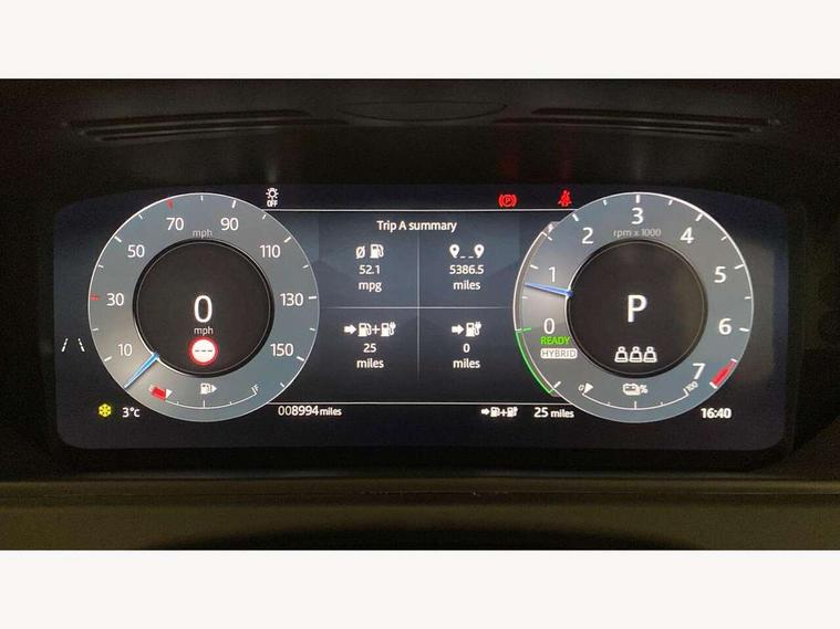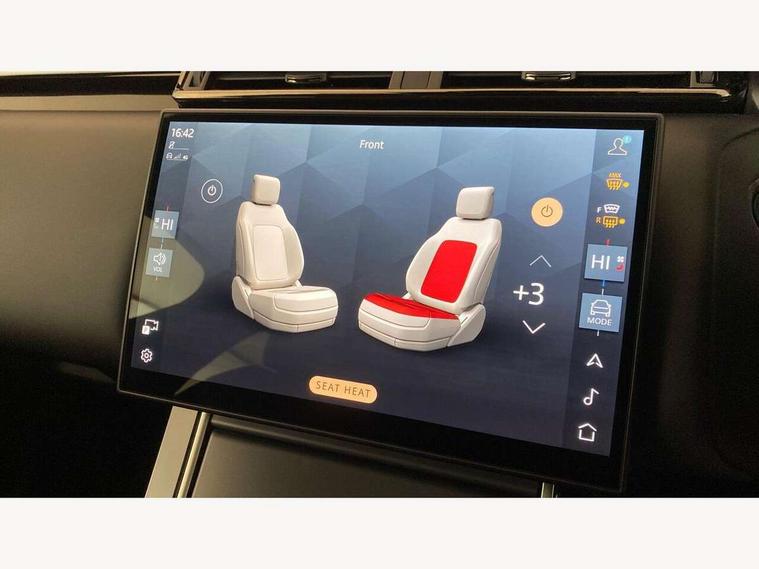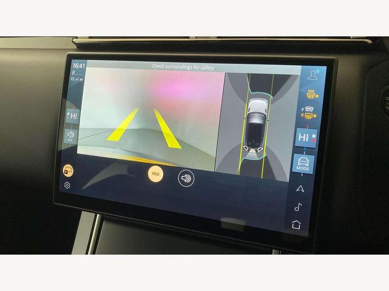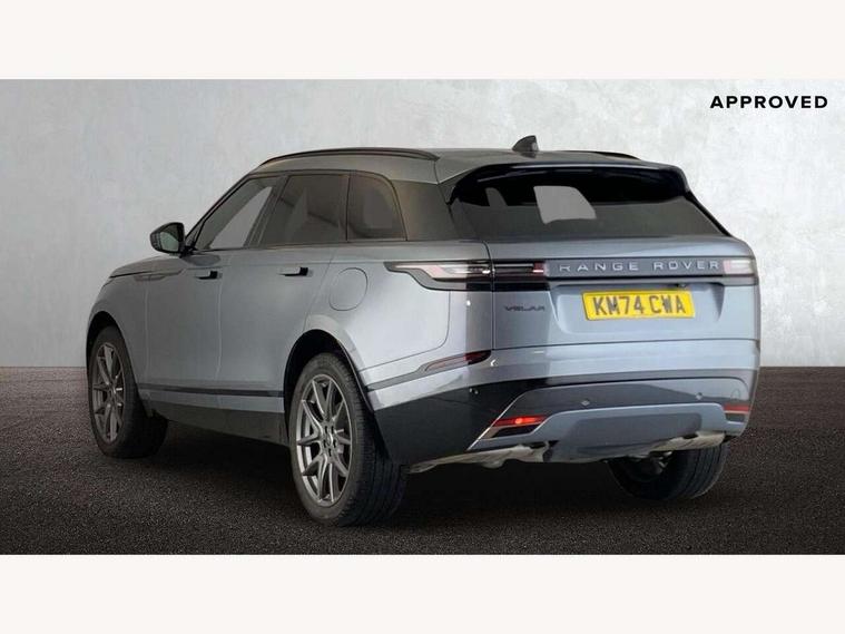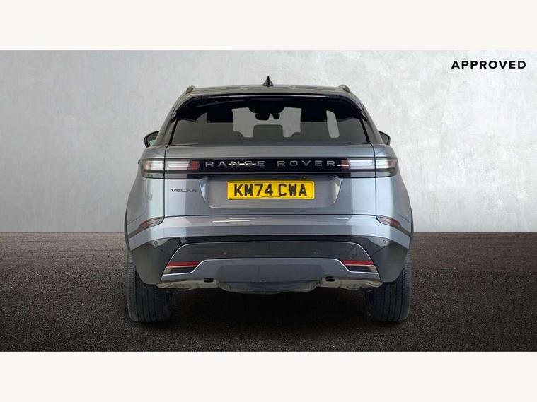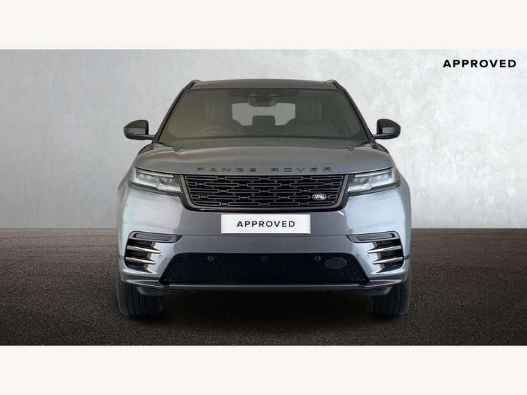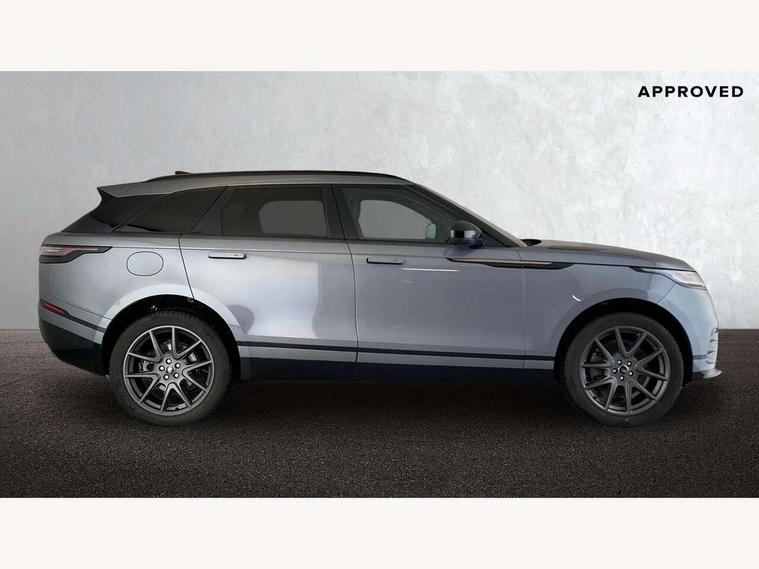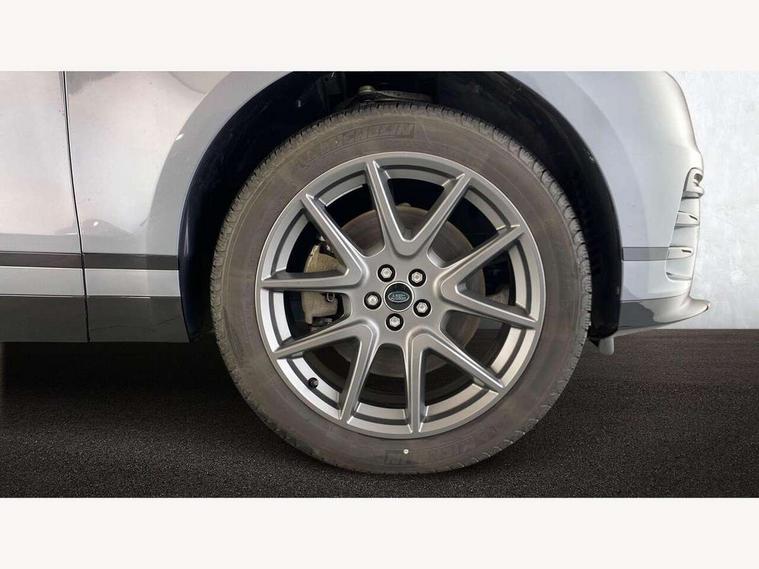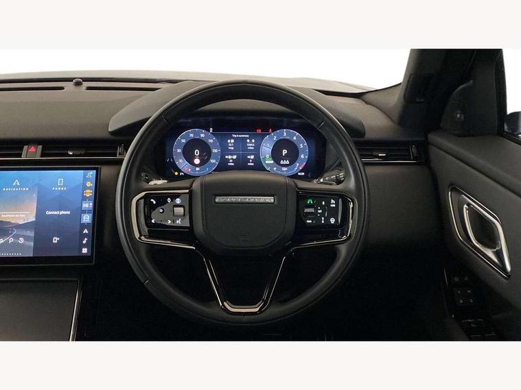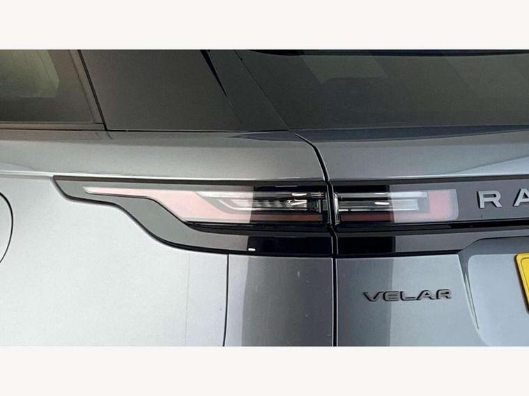 Adaptive cruise control with steering assist, Android Auto, Apple CarPlay, Blind spot assist, Bluetooth connectivity, Brake pad wear indicator warning light, Driver condition monitor, eCall emergency call system, Front and rear parking aid, InControl remote, Land Rover InControl apps, Lane keep assist, Pivi pro with connected navigation, Rear collision monitor, Rear traffic monitor, Service indicator, Speed proportional electronic power assisted steering (EPAS), Traffic sign recognition with adaptive speed limiter, Trip computer, Voice control system, Wireless device charging, 7kw on board charger, 8 speed automatic transmission, AC/DC charging, Adaptive dynamics, All terrain progress control, Coil suspension system, Home charging cable, Open differential with torque vectoring by braking, Public charging cable, Single speed transfer box, DAB radio, Steering wheel mounted controls, 3rd brake light, Acoustic laminated windscreen, Auto dimming interior rear view mirror, Automatic headlamp levelling, Automatic headlights, Body coloured bumpers, Boot protection plate, Electric windows with one touch open/close and anti trap, Flush deployable exterior door handles, Follow me home headlights, Heated rear window with timer, Heated washer jets, Heated windscreen, Metal front tread plates, Metal load space scuff plates, Pixel LED headlights with signature DRL, Power fold, auto-dimming, heated door mirrors with memory and approach lights, Rain sensor windscreen wipers, Rear animated directional indicators, Rear fog lights, Rear side wing doors, Rear wash/wipe, Tailgate/boot lid spoiler, Trailer stability assist, Velar badge, 3 seat bench in 2nd row, Ambient lighting, Bright metal pedals, Carpet mats, Driver/passenger sunvisors with illuminated vanity mirrors, Ebony morzine headlining, Electrically adjustable steering column, Extended leather upgrade, Heated steering wheel, Isofix system on outer rear seats, Loadspace cover, Overhead lighting console, Overhead stowage for sunglasses, Passive front headrests, Rear air vents, Rear centre headrest, Single front passenger seat, Twin front cupholders, Twin sliding front centre armrest, Online pack with data plan - Velar, Power socket pack 2 - Velar, 380mm front brakes and 325mm rear brakes, 3x3 point rear seatbelts, Anti-lock braking system (ABS), Cornering brake control, Curtain airbags, Customer configurable autolock, Door side intrusion beams, Driver airbag, DSC - Dynamic Stability Control, Electronic brake force distribution, Electronic parking brake, Electronic traction control, Emergency braking, Front and rear seatbelt reminder, Hill descent control, Hill launch assist, Low traction launch, Passenger airbag, Power operated child locks, Rear airbags, Roll stability control, Side airbags, Tyre pressure monitoring system (TPMS), Unpainted brake calipers, Global lock and unlock switch on driver door, Immobiliser, Intrusion sensor, Keyless entry, Lock only switch on front passenger door, Locking wheel nuts, Perimetric alarm, Remote central locking, All season tyres,
