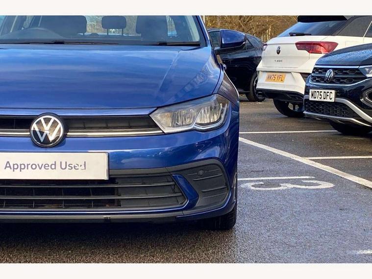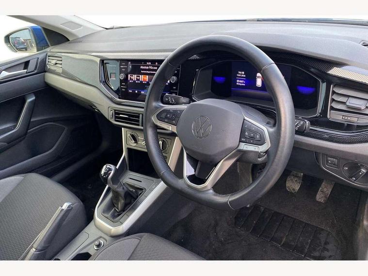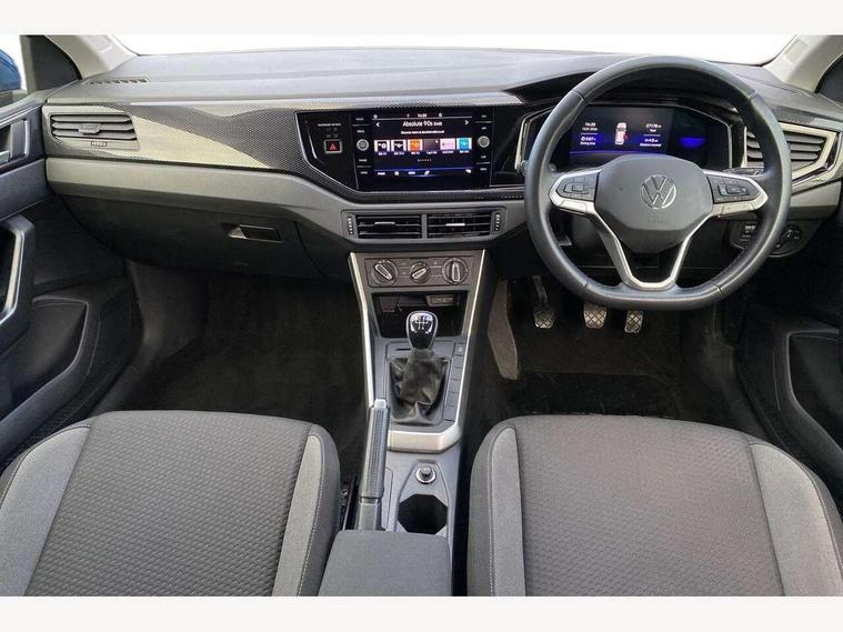 Adaptive cruise control without follow-to-stop and speed limiter, Bluetooth mobile phone interface, Driver alert system, Emergency call service, Front assist system, Power assisted speed sensitive steering, Preparation for We connect and We connect plus, Speedo and rev counter, electronic odometer, trip, service interval display and fuel gauge, Standard rear axle, Travel Assist - Lane keeping system and traffic jam assist, Travel assist including emergency assist, Trip computer, Warning signal and warning light for front and rear seatbelts not fastened, Washer fluid level indicator, Wireless app connect, Front wheel drive, Rear shock absorpion, Start-stop system with battery regeneration (recuperation - energy recovery during braking), DAB Digital radio, Diversity antenna for FM reception, Front and rear 6 speakers, Automatic dimming interior rear view mirror, Body colour bumpers, Body colour door handles, Body colour door mirrors, Electric front windows, Heat insulating darkened glass in side and rear windows, Heat insulating glass windscreen, Power folding adjustable/heated exterior mirrors and front passenger exterior mirror lowering function, Rain sensor, Rear electric windows, Rear fog light, Rear side wing doors, Rear windscreen washer and wiper with interval delay, Third brake light, 12V power socket in centre console, 2 front and 2 rear reading lights, 2 USB-C ports in the front, 2 USB-C charging sockets on the center console in the rear, 3 rear head restraints, 60/40 split folding rear seat and rear seat bench not split, Ceramique headliner, Chrome plated radiator grille inserts, air vent surrounds and light switch surrounds, Door and side trim panel, Driver and front passenger seat height adjustment, Driver/passenger sunvisors with illuminated vanity mirrors, Front centre armrest, Front seat backrest storage pockets, Front standard seats, Handbrake lever handle in leather, Hartley/Thomas cloth upholstery, Isofix child seat preparation easy-fit (for two outer rear seats, and front passenger seat) compatible with I-size, Leather trimmed gear knob, Luggage compartment cover, Luggage compartment floor, Luggage compartment lighting, Multifunction steering wheel, Single front passenger seat, Standard pedal cluster, Light and vision pack - Polo, 3 point height adj front seatbelts + pretensioners, 3x3 point rear seatbelts, ABS, Driver and front passenger airbag with front passenger airbag deactivation, Drivers and front passengers safety optimised head restraints, ESC (Electronic stability control) + EDL (Electronic Differntial lock) and ASR (Traction control), Extended and predictive pedestrian/ cyclist protection, Front curtain and side airbags with center airbag, Front disc brakes, Hill hold control, Manual child lock in rear doors, Rear drum brakes, Single tone horn, Tyre pressure loss indicator, Alarm with interior protection, Anti-theft alarm system with interior monitoring, backup horn, and towing protection, Anti-theft wheel bolts, Electronic engine immobiliser, Lava stone black gloss/matt decorative inserts in dash and front door panels, Low rolling resistance tyres,