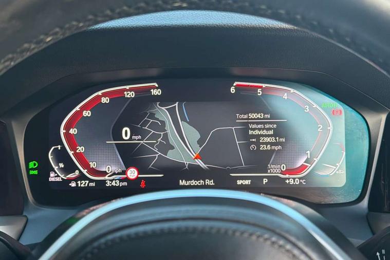 Active guard plus, Attentiveness assist, Auto start-stop, BMW ConnectedDrive online services, BMW Live Cockpit Professional sat nav system including 10.25" high resolution display and Intelligent Voice Assistant, BMW service history, BMW Teleservices, Brake pad wear indicator in front and rear, Check Control warning system for monitoring of lights and door/luggage compartment open warning, Condition based service, Electric power steering with Servotronic steering optimised at all speed ranges, iDrive controller on centre console, Instrument cluster with speedometer with mph readout, tachometer, fuel gauge and oil temperature gauge, Integrated owners handbook, Oil sensor for level and grade, warning by check control system, On board computer - average speed+fuel consumption, service interval, clock/date, odometer/trip meter, outside temperature display and ice warning, Optimum shift indicator, Personal Profile - automatic lock when driving away selectable, Variable sport steering, 8 speed automatic steptronic transmission, Balanced 50/50 weight distribution, Battery cut-out switch, Diesel particulate filter, Drive performance control - ECO PRO, comfort and sport modes, Incorrect fuelling protection, Larger capacity fuel tank, M sport suspension, Stroke dependent dampers, DAB tuner, Electronic service booklet, Acoustic glazing, Active airstream chrome frame kidney grille with 8 high gloss black vertical slats, Automatic headlight beam throw control with load dependent regulating reaction, dynamic compensation of braking dive and acceleration squat, Black roof mouldings, Body colour - fuel filler flap, front and rear bumpers, door handles and mirror caps with integrated turn indicator + bottom segment in matt black, Dynamic brake lights, Electric windows - front and rear, with open/close fingertip control, anti-trap facility and comfort closing, Exhaust tailpipe - split left and right, Extended LED headlights, Exterior mirrors - electrically folding with anti-dazzle, Fading support, Front and rear bumper system with replaceable deformation elements, Front black door sill finishers with BMW designation, Green tinted heat protection glazing, High gloss shadow line exterior trim, Interior rear view electrochromatic mirror with automatic anti dazzle function, LED front fog lights, Lightweight engineering, M designation on front side panels, left and right, Matt black exterior B pillar, Model designation on right side of tailgate, Rain sensor with automatic headlight activation, Rear wiper, Shark fin antenna, Two part LED tailights in L-shape with components in smoked glass, brake light, LED turn indicator and rear fog light, Visible VIN plate, Welcome lights in interior and door handle area, Windscreen wipers with integrated washing jets, 12V power socket in front storage compartment, 2 front cupholder in centre console with clamping elements and matt black inlay, 3 rear seats with non folding headrests with 3 point seat belts, 3 zone automatic air conditioning, 4 pieces lashing eyelets in luggage compartment, 40:20:40 split folding rear seat with loading system, Ambient lighting with welcome carpet light, Anthracite headlining, Armrest integrated in front and rear door trim + front centre console armrest, Centred top Luggage compartment lights, Four grab handles integrated in roof lining, Front and rear door exit lighting (left / right), Front and rear door pockets, Front and rear reading lights, Front and rear velour floor mats, Front head restraints, Front sport seats, Heated driver and front passenger seats, Height adjustable mechanically and infinitely variable steering column, Illuminated armrest storage compartment, Illuminated glove compartment with separate small compartment, Interior lighting - front centre over interior mirror with soft light, rear centre and front and rear footwell lighting, M Sport multifunction leather steering wheel, Make-up mirror lights, Rear centre armrest with 2 cupholders, Rear centre console with storage compartment and ventilation grille, Sunvisors with vanity mirrors and ticket pocket, Toolkit located in luggage compartment, Connected pack professional - 3 Series Saloon/Touring, M Aerodynamics pack - 3 Series Saloon/Touring, 2 tone horn, BMW emergency call, Brake energy regeneration, Braking pre-tensioning, Child proof locking system in rear door, Child seat ISOFIX attachment rear outer seats, Coasting in idle in ECO PRO mode, Crash sensor activating of airbags, Unlocking doors, hazard warning lights, fuel cut off, interior lighting+activation of safety battery terminal clamp, Driver and front passenger side airbags, integrated in the door side seat backrest bolsters for all seat variants, Driver/Front Passenger airbags, Dry braking, Dynamic brake control, Dynamic stability control + (DSC+) - Anti-lock Braking System (ABS) with brake assist and cornering brake control + Automatic Stability Control (ASC), Dynamic Traction Control - DTC, Electromechanical parking brake including automatic hold function and automatic release of the parking brake when pulling away, Electronic differential lock control (EDLC), Front passenger manual airbag deactivation, Head airbags for all 4 outer seats, Hill start assist, Seat belt security check for driver and front passenger, Side impact protection, Three 3 point seat belts on all seats including front belt stopper, pyrotechnic belt tensioners and belt force limiters, Tyre pressure monitoring with three level warning strategy, Ventilated front and rear disc brakes, Warning triangle and first aid kit, Alarm system (Thatcham 1) with remote control and electronic engine immobiliser, Central locking switch for all doors, fuel filler cap and luggage compartment, Remote control with integrated key one button open/close vehicle and windows, sole opening of the luggage compartment lid and panic mode, Start/stop button with Comfort Go keyless engine start and auto Start/stop deactivation button, Vehicle key with M specific designat
