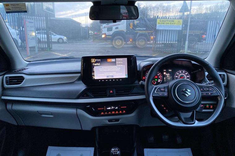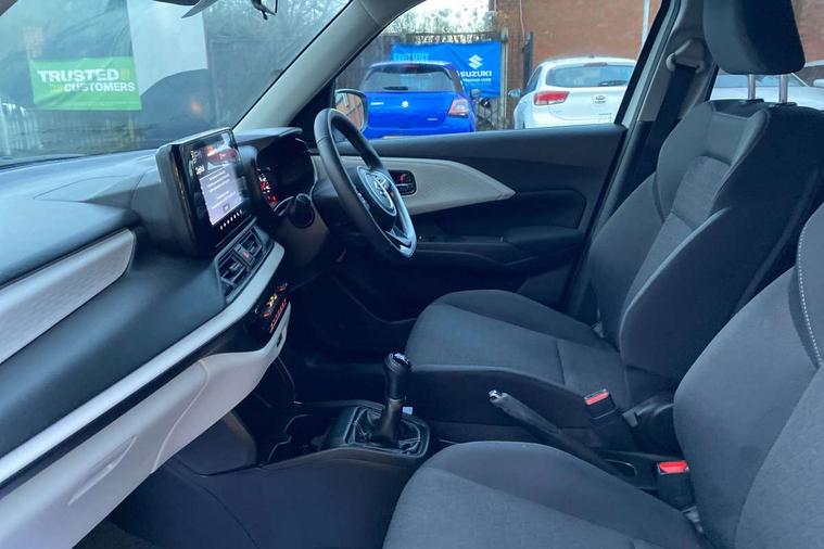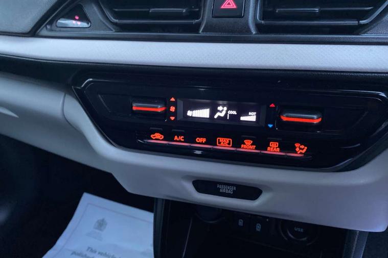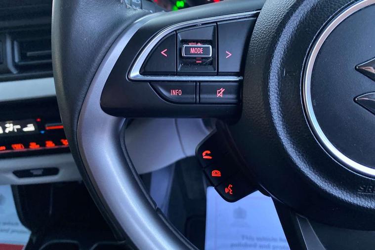 Adaptive cruise control, Automatic start/stop system, Blind spot monitoring, Colour LCD information display, Digital clock, Driver monitoring system, eCall, Fuel consumption display (average/instantaneous) and range display, Intelligent speed control support, Lane departure prevention, Lane departure warning system, Lane keeping assist (LKA), Low fuel level warning light, Navigation system, Outside temperature display, PAS, Rear cross traffic alert, Rear parking camera, Rear parking sensors, Remote fuel cap release, Smartphone integration with Apple CarPlay and Android auto, Suzuki connect, Tailgate, Traffic sign recognition, Weaving alert, 4 speakers + 2 tweeters, 9-inch infotainment display, Auxiliary input socket, Bluetooth audio streaming, DAB Digital radio, Steering wheel audio controls, USB Type A and C, 'Guide me home' headlamps, 1 speed with intermittent rear wiper + washer, 2 speeds front wiper with intermittent + washer, Automatic headlights, Black coloured A & B pillars, Black Upper and lower front grille, Body colour door mirrors and handles, C pillar trim moulding, Electric door mirrors, Electric front windows, Electric rear windows, Green tinted glass, Heated door mirrors, High beam assist, LED daytime running lights, LED High mounted stop light, LED position lamps, LED projector headlamps, LED rear combination lamp, Manual headlamp level control, Rain sensor, Rear fog lights, Rear privacy glass, Rear side wing doors, Rear spoiler, Side spoiler, 1 cup holder in rear, 12V Accessory socket in front console, 2 cup holders in front, 2 Isofix seat anchors, 3 bench rear seats in 2nd row, 3 rear head restraints, 3 spoke leather covered steering wheel, 60/40 split rear seats, Accessory socket, Centre console storage, Centre lower box, Child seat tether anchorages x 2, Chrome handbrake release button, Chrome interior door handles, Cloth upholstery, Door pockets with bottle holder, Driver/passenger sunvisors with ticket holders + vanity mirrors, Front cabin lights, Front headrests, Front map light, Front passenger side assist grip, Glovebox, Heated front seats, Heater, Height adjustable driver's seat, Luggage area lamp, Manual air conditioning with digital control panel, Material door trim ornament, Parcel shelf, Passenger seat back pocket, Pollen filter, Single front passenger seat, Tilt adjustable steering wheel, Tilt/telescopic adjustable steering wheel, 3 point ELR seatbelts for centre seat, 3 point ELR seatbelts front and rear, ABS+EBD+Brake assist, Curtain airbags, Driver airbag, Dual sensor brake support, ESP + traction control, Front and rear seatbelt reminder, Front passenger airbag, Front passenger airbag deactivation, Front seatbelt pretensioners with force limiters, Hill hold control, Rear child proof door locks, Rear seatbelts with pre-tensioners and load limiters, Side airbags with incorporated into front seats, Tyre pressure indicator, Deadlocks, Freewheeling key cylinders, Immobiliser, Keyless entry and start, Light - on and Key in reminder, Locking wheel nuts, Remote central locking, Painted instrument panel ornament, 16" Painted alloy wheels, Emergency flat tyre repair kit,