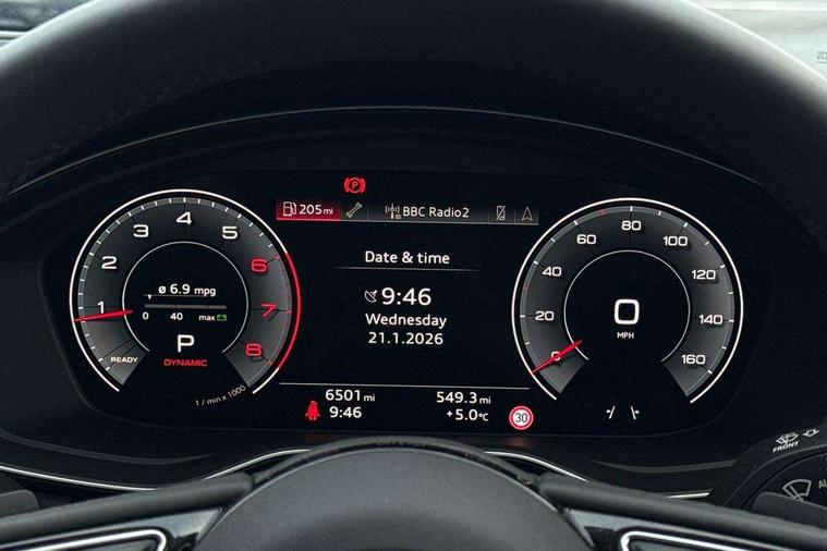 Audi connect safety and service (e-call), Audi drive select (Auto, Comfort, Dynamic and Individual), Audi smartphone interface, Audi virtual cockpit - 12.3" full colour digital instrument cluster, vehicle/engine speed, Radio/media information+Driver assistance systems, Automatic start-stop system with coasting functionality and efficiency programme, Bluetooth interface, Camera based traffic sign recognition, Electro-mechanical power steering, Email, calendar and text messages displayed via MMI, Front and rear parking sensors, Lane departure warning, MMI nav+ with MMI touch - 10.1" high resolution MMI display, touch sensitive, 3D map, route/country info, dynamic route guide, personal route assist, Power operated tailgate, Rear view camera, Service interval indicator, Voice control system, 54 litre fuel tank, Comfort dynamic suspension, 8 passive loudspeakers, CD player, DAB digital radio reception, Two additional USB ports for rear passenger in rear centre console, Two SDXC card slots, Auto dimming door mirrors, Auto dimming rear view mirror, Body colour bumpers, Body colour door handles, Body colour side sill trim, Body coloured door mirrors, Electric adjustable heated door mirrors, Electric folding door mirrors, Electric front windows, Front fog lights, Kerb-view function for passenger side, LED headlights and rear lights with LED daytime running lights, LED side indicator lights integrated into door mirrors, LED third brake light, Matt aluminium silver tailpipe trim, Radiator grille in matt anthracite black and air inlets with inserts in matt aluminium silver, Rain and light sensors, Rear diffuser in matt anthracite black with trim strip in matt aluminium silver, Rear side wing doors, Rear wiper, Sport front and rear bumpers with side skirts, Variable front intermittent wipers, Windscreen with acoustic glazing, 3 seat bench in 2nd row, 3 spoke high multi-function leather sport steering wheel with paddle shift and height and reach adjustable, 4 way electric lumbar support for driver and front passenger, 40/20/40 split folding 3 seater rear bench seat, Black carpets, Deluxe 3 zone electronic climate control, Front centre armrest, Front door sill trims with aluminium inlay, Front head restraints, Front/rear floor mats, Heated front seats, ISOFIX child seat mounting and top tether, Luggage compartment mat, Manual seat adjustment, Rear centre armrest, Rear headrests, Single front passenger seat, Sunvisors with vanity mirrors, Twin leather upholstery + front sports seats, LED interior light pack - A5/RS5, 3x3 point rear seatbelts, 6 airbags - Driver, front passenger, curtain and side airbags, Attention and drowsiness assist, Electromechanical parking brake, Electronic Stabilisation Control (ESC) including ABS, ASR and EDL, Front passenger airbag deactivation, Height adjustable front seatbelts, Hill hold assist, Manual child lock in rear doors, Multi collision brake assist, Pop-up bonnet for pedestrian protection, Pre sense city, Seatbelt monitoring, Tyre pressure warning, Variable restraint system, Warning triangle and first aid kit, Anti theft alarm system, Anti theft wheel bolts, Immobiliser, Keyless Go, Remote central locking, Aluminium ellipse silver inlays, Tool kit, Tyre repair kit,