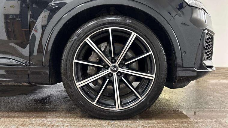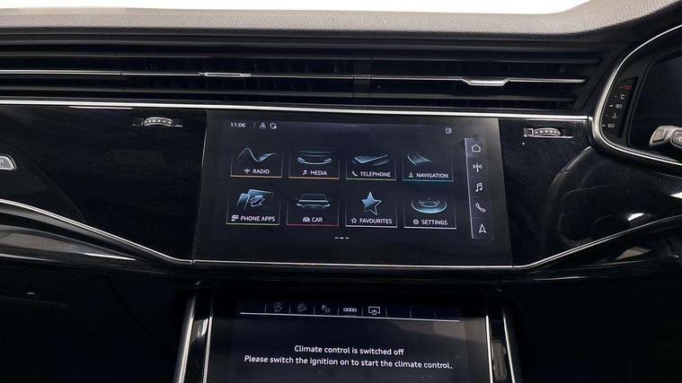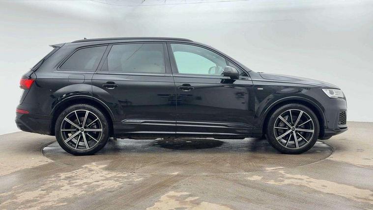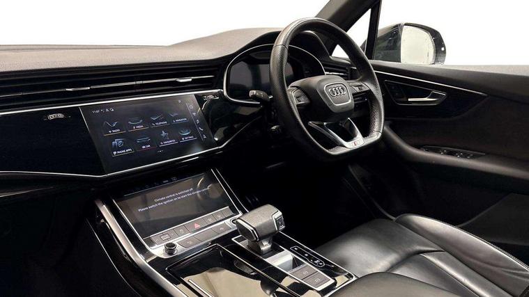 Audi connect safety and service (e-call), Audi connect with Amazon Alexa Integration, Audi drive select (Auto, Comfort, Dynamic, Efficiency, Individual, Off-road and All road), Bluetooth interface, Camera based traffic sign recognition, Electromechanical steering, MMI navigation plus with MMI touch screens includes 10.1" and 8.6" screens with haptic feedback, Natural voice recognition, Parking system plus with 360 degree display (front, rear and side sensors) - acoustic and visual park assist system, Power operated tailgate, Rear view camera, Smartphone interface includes wireless Apple carplay/Android Auto, Start/stop system, 48V Mild hybrid technology, 85 litre fuel tank, Adaptive air sports suspension, Quattro all wheel drive with self locking centre differential, Audi music interface - front 2 USB-C ports with charger and data functions, Audi sound system with 6 channel amplifier, 180 watt amplifying capacity and 10 loudspeakers including subwoofer, DAB digital radio module, 3rd brake light, Audi matrix LED headlights with dynamic front and rear indicators, Auto dimming frameless rear view mirror, Black roof rails, Bumpers in contrast paint scandium grey finish includes door trim and wheel arch trim strips, inlays in door strip contain quattro embossing, Electrically adj heated/folding + automatically dimming exterior mirrors with memory + automatic kerb side function for passenger side exterior mirror, Heat insulating glass in windshield, Integrated LED indications in door mirrors, LED daytime running lights, LED rear tail lights, Privacy glass - dark tinted rear and rear side windows from B-pillar backwards, Rear side wing doors, Rear wiper, 2 seat bench in 3rd row, 3 seat bench in 2nd row, 4 zone deluxe automatic climate control, 7 seat layout with ISOFIX points for the front passenger seat and rear passenger seat, Black cloth headlining, Comfort front centre armrest, Electric adjustable front seat with 4 way lumbar support, driver memory functionality, Folding rear seats, Front head restraints, Front/rear floor mats, Heated front seats, Illuminated door sill trims with S logo, LED interior ambient lighting, Luggage compartment cover, Luggage compartment sill protection in stainless steel, Rear head restraints, Single front passenger seat, Stainless steel pedals, Sunvisors with illuminated vanity mirrors, Titanium black styling pack - Q7/SQ7, 3 point seatbelts on all rear seats, Audi pre sense front, Child locks on rear doors, Driver and front passenger, front side and curtain airbags, Electromechanical parking brake, Electronic Stabilisation Control (ESC) including ABS, ASR and EDL, Extended pedestrian protection measures, Hill hold assist, Seatbelt monitoring, Tyre pressure loss indicator, Warning triangle and first aid kit, Anti theft alarm, Anti-theft wheel bolts and wheel loosening detection, Keyless Go, Remote central locking, Polished oak trim with grey finish inlay, Tool kit, Tyre repair kit,