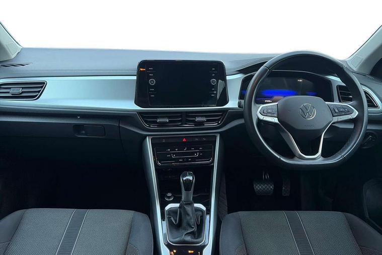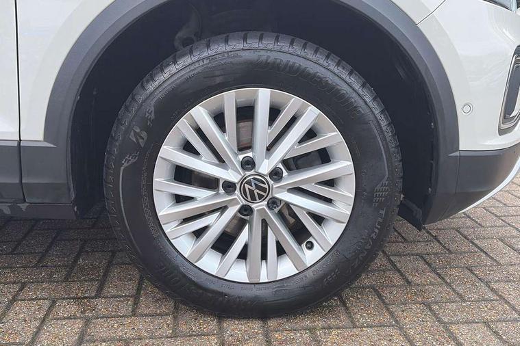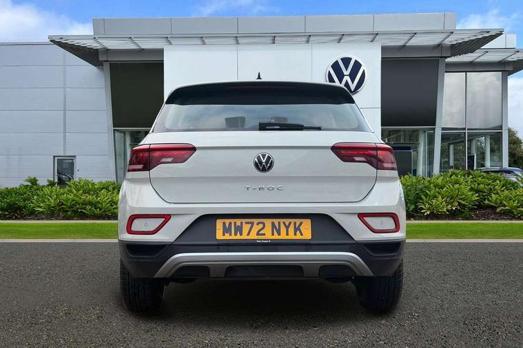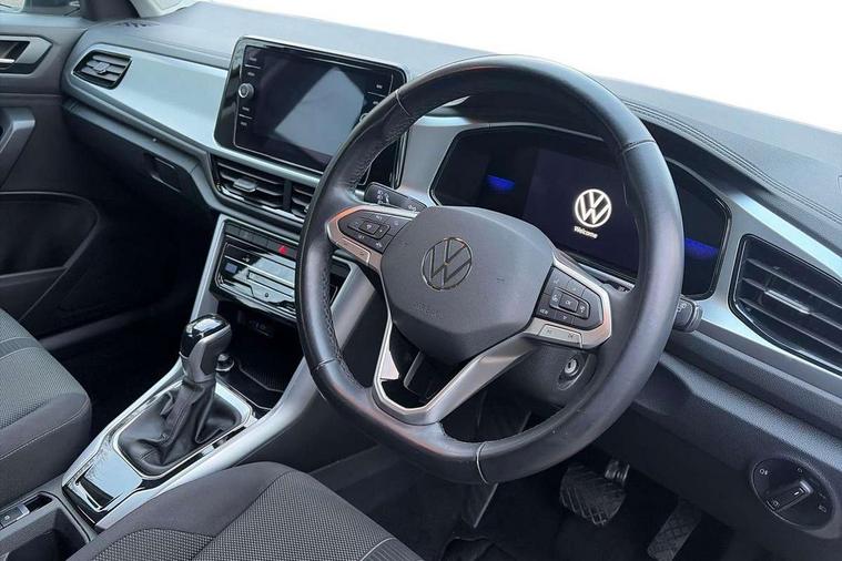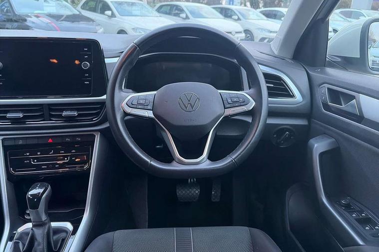 Bluetooth mobile phone interface, Driver alert system with fatigue detection, Driver tips and journey analysis, Emergency call service, Lane keeping system Lane Assist, Modified key software - reduce switch off time for key status change to Long no motion, Online services, Park assist including front and rear parking sensors, Power assisted speed sensitive steering, Service interval indicator, Tailgate/trunk lid release from outside, Think blue trainer driver tips and journey analysis, Warning sound and light for front seatbelts unfastened, Wireless app connect, Battery regeneration during braking, Front shock absorption, Rear shock absorption chassis with increased ride height, Start/stop function with battery regeneration, DAB Digital radio, Diversity antenna for FM reception, Front and rear 6 speakers, Music playback - MP3, WMA and AAC files, Premium USB cable in choice of either Apple or Android smartphone compatibility, SD card slot, Simultaneous pairing of 2 compatible mobile devices, Title and cover art display, We Connect and We Connect Plus functionality, 3rd brake light, Auto dimming interior rear view mirror, Automatic hazard lights activation under emergency braking, Automatic headlight control with LED separate daytime running lights with coming/leaving home function, Black roof rails, Body coloured bumpers and radiator grille with chrome trim and front fog lamps with chrome bezel, Body coloured exterior mirror housings and door handles, Extended roof spoiler, Exterior mirrors aspherical on driver side, convex on front passenger side, External USB type C socket and charging sockets, Front windscreen wiper with intermittent wipe and 4 position delay, Heated rear window, LED Headlights, LED rear combination lamps, LED rear number plate lights, LED tail lamp rear comination lamps, Power windows with comfort operation and circuit breaker, Rain sensor, Rear exhaust tailpipe, Rear fog light on one side and reversing lights on both sides, Rear side wing doors, Rear wash/wipe with intermittent wipe setting, Remote electrically foldable door mirrors, puddle lights and reverse activated passenger's door mirror, 12V power socket in centre console, 3 rear head restraints, 3 seat bench in 2nd row, 4 load lashing points in luggage compartment, Air care climatronic air conditoning system with active combination filter and 2-zone temperature control, Ambient lighting with mirror logo projection, Cloth upholstery, Door and side trim panel in cloth, Drawer under drivers seat, Driver/front passenger seat height adjustment, Front centre armrest, Front comfort sports seats, Front cupholders x 2, Front reading light, Instrument lighting, white adjustable panel illumination, Interior light delay, Isofix child seat preparation, Leather gearshift handle, Load-through provision with cup holder when folded down ('Unsplit rear seat bench, split folding backrest, with centre armrest), Luggage compartment lighting, Lumbar support for driver's and front passengers seat, Non-folding front passenger seat backrest, Single front passenger seat, Storage compartment in left and right luggage area, Storage compartment in rear doors, Storage compartments in driver and front passenger doors, Sunvisors with illuminated vanity mirrors, Variable boot floor, height adjustable and removable, Driver assistance pack without proactive passenger protection - T-Roc, 3 point height adj front seatbelts + pretensioners, 3 point seatbelts in outer rear with ECE label, ABS, Child locks on rear doors, Driver and front passenger airbag with front passenger airbag deactivation, Driver and front passenger safety-optimised head restraints, Drivers seatbelt reminder, Electronic parking brake, Electronic Stability Control (ESC) inc EDL (Electronic Differential Lock) and ASR (Traction Control), Front and rear passengers curtain airbag system including front side airbags, Front assist with city emergency braking and pedestrian monitoring, Front disc brakes, Front seat side impact airbags, Hill start assist, Predictive pedestrian protection, Rear disc brakes, Single tone horn, Tyre pressure loss indicator, Volkswagen roadside assistance, Alarm with interior protection, Anti-theft alarm system with interior monitoring, backup horn, and towing protection, Remote central locking with SAFELOCK, radio remote control with 2 remote control folding keys, Pewter matt decorative inserts for intrument panel, centre console and door panels at the front, Trims for alloy wheels,