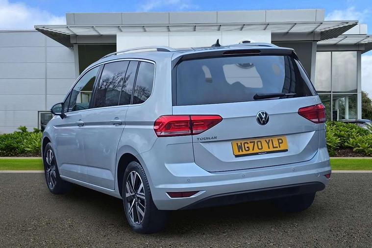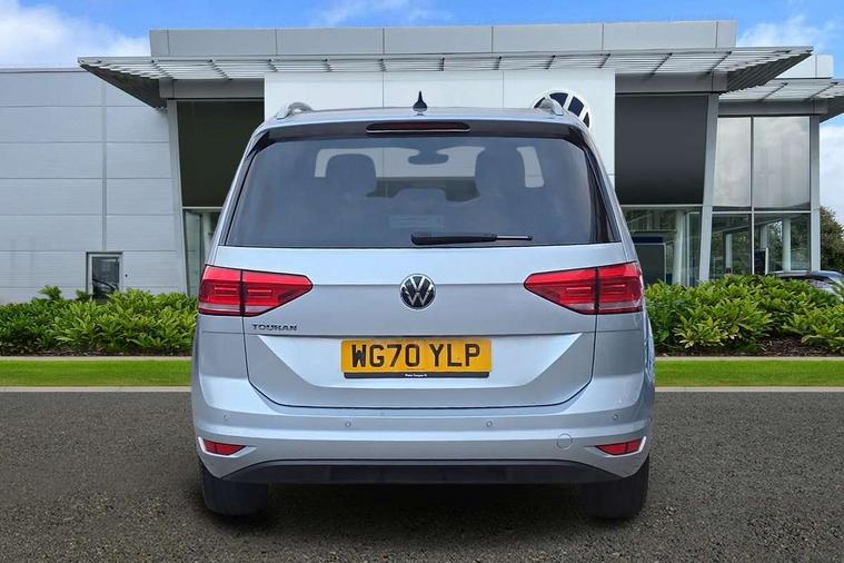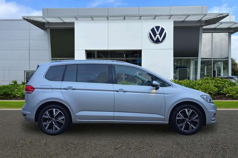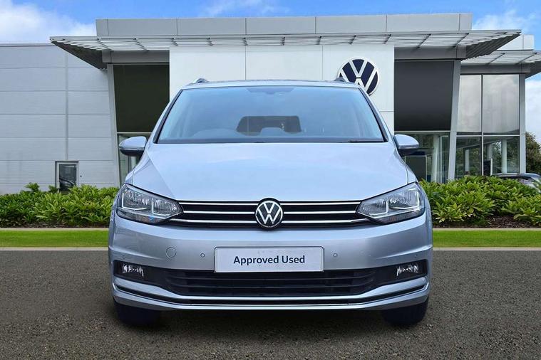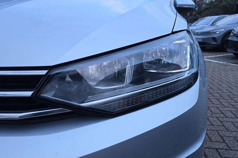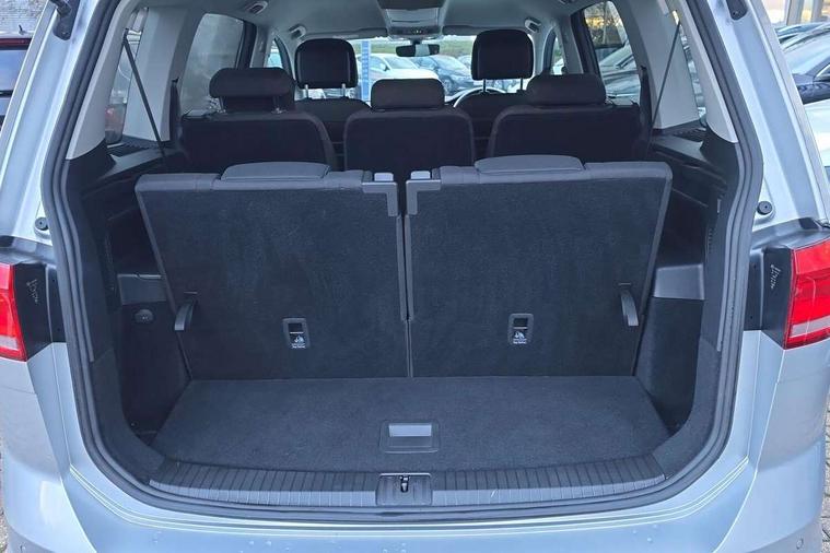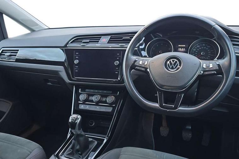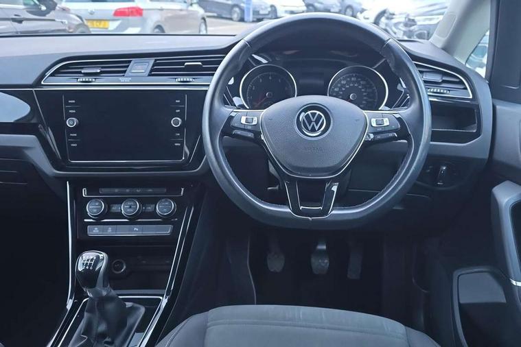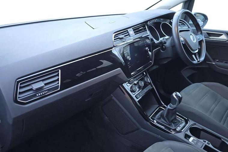 Adaptive cruise control, Audible lights on warning, Bluetooth telephone connectivity, Car information display, Driver alert system, Driver electronic voice amplification function, Electronic odometer, External temperature gauge, Flat tyre indicator, Mobile pairing with SMS function, Multifunction colour display, Rev counter with fuel gauge, Speed limiter, Speed sensitive power steering, Stop/start system, Think blue trainer driver tips and journey analysis, Trip and service interval display, Petrol Particulate Filter, XDS electronic differential lock, 4x20 watt output, Audio Connectivity System, DAB Digital radio, MP3/WMA compatability, SD card slot, Title and cover art display, USB connection, Aerial integrated into side window, Body colour bumpers, Body colour door handles, Body colour door mirrors with integral indicators, Chrome fog light surround, Chrome lower front bumper insert, Chrome trimmed front air intake surrounds, Chrome trimmed radiator grille louvre inserts, Chrome trimmed side windows, Dusk sensor + auto driving lights, Electric folding door mirrors with reverse activated kerb-view adjustment on passenger's door mirror, Front and rear electric windows, Front fog lights with static cornering function, Fully galvanised body, Gloss black finish B pillar, Green tinted heat insulating glass, High level third brake light, Rear tinted glass from B-pillar backwards approx 65% tinted, Rear wash/wipe with intermittent wipe setting, Silver roof rails, Tailgate wiper- reverse gear activation, Twin chrome exhaust tailpipes, Volkswagen roundel, Windscreen wipers intermittent wipe, 12V power point for Row 2, 12V socket in luggage compartment, 2 individual fold flat 3rd row seats, 2 three point seatbelts in 3rd row, 2nd row centre armrest, 2nd row centre seat converts into table, 3 single slide/fold/removable 2nd row seats, 3 spoke steering wheel, 3 Zone electronic climate control with automatic air recirculation, 3x3 point seatbelts on 2nd row with height adjust on outer seats, 4 boot load lashing points, 4 way adjustable front head restraints, 5 headrests, Ambient lighting in door trim and foot well, Driver and front passenger under seat drawer, Dust/pollen filters, Foldable front passenger seat backrest, Front + rear carpet mats, Front and rear reading lights, Front centre armrest with storage compartment, Front cupholders x 2, Front seat storage pockets, Front seatback folding tables, Height adjustable driver's seat, Height/reach adjust steering wheel, Illuminated glovebox, Illuminated vanity mirrors, Instrument lighting white adjustable panel illumination with red night time illumination, Interior light with delay, Isofix on 2nd row outer seats, Isofix on 3rd row seats, Large storage compartment in roof console, Leatherette on rear of front seats, Low tunnel 2nd row seat, Media box in dashboard on passenger side, Multi storage in passenger/luggage areas, Multi-function centre console with storage facilities, Retractable luggage cover, Split folding rear seat backrests, Storage bins on all doors, Convenience Pack - Touran, Mirror pack - Touran, 3 point height adjustable front seatbelts, Auto hold function, Automatic post collision braking system, Door open warning reflectors, Driver/Front Passenger airbags, Drivers knee airbag, EDL + ASR, Electronic parking brake, Energy recovery system, ESC with ABS, First aid kit, Front and rear (row 2) curtain airbags, Front assist including city emergency braking, Front seat side impact airbags, Front/rear disc brakes, Hill hold control, Hydraulic Brake Assist (HBA), Loose wheel warning function, Manual passenger airbag deactivation function, Pre crash preventive occupant protection, Seatbelt warning lamp and buzzer, Traction control, Two tone horn, Warning triangle, Alarm with remote central locking and interior protection, Electronic engine immobiliser, Chrome plated instrument surrounds, Piano black decorative inserts, Tyre mobility system,