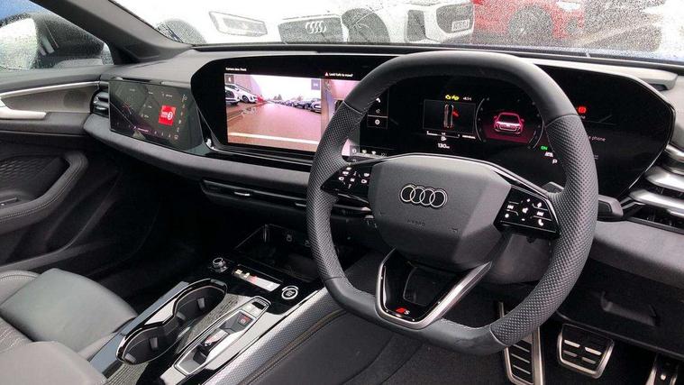 Adaptive cruise control, Advanced driver attention and fatigue montior, Audi application store, Audi assistant, Audi connect emergency call and service, Audi drive select, Audi smartphone interface, Audi virtual cockpit plus with 11.9" OLED colour display, Automatic start/stop system with coasting functionality, Camera based traffic sign recognition, Intersection assist, Lane change assistant with exit warning system, rear cross traffic alert and rear turn assist, Lane departure warning with emergency assist, MMI 10.9" front passenger touch display, MMI navigation plus with high resolution 14.5" OLED touchscreen colour display, Park assist plus, Parking system plus with 360 display, Progressive steering with servotronic, Swerve assist and turn assist, Top view camera, Traffic sign based speed limiter, Sports suspension lowered by 20mm, 2 USB-C ports in both the front and rear, Audi sound system impressive sound with 10 loudspeakers including centre speaker and subwoofer, 6-channel amplifier with a total output of 180 watts, DAB digital radio reception, Smartphone compartment with wireless charging, Aluminium window trims, Auto dimming rear view mirror, Black door handles, Dark chrome-plated tailpipe trims, Door mirrors - electrically adjustable, heated, folding and auto dimming on both sides, Front and rear electric windows, Front door sill trims with aluminium inlays, illuminated with 'S' logo, Headlight cleaning system, High beam assist, LED daytime running lights, LED rear lights pro incl. dynamic rear indicators and illuminated light strip with animated coming and leaving home function, LED third brake light, Matrix LED headlights with eight light signatures selectable via the MMI or the myAudi app, Privacy glass, Rear and side windows with heat insulating glass, Rear boot, Rear side wing doors, S Line badges on the front wings, S line bumpers, radiator grille and diffuser in phantom black and diffuser insert in matt anthracite, White rhombus logo projection light in exterior mirrors, Windscreen with acoustic glazing, 3 rear headrests, 3 seat rear bench, 3 spoke leather steering wheel with multi-function buttons with touch control, flattened on top and bottom, with S badging and contrast stitching, 3-zone automatic climate control, 40:20:40 split folding rear seat bench with centre armrest and cup holders, Comfort front centre armrest, Electrically adjustable front seats, Front and rear floor mats, Front sport seats with integrated headrest and S embossed logo, Headlining in black cloth, Heated front seats, i-Size child seat mounting on the front passenger side and outer rear seats, i-Size and top tether on the outer rear seats, Luggage compartment lid, electrically opening and closing, Manual steering column height and depth adjustment, Memory function for driver seat, Single front passenger seat, Stainless steel pedals and footrest, Steering wheel grips in perforated leather and shift paddles, Ambient lighting package plus - A5, Black styling package plus - A5, 3x3 point rear seat belts, Acoustic vehicle alerting system, Convenience key with safelock, Driver airbag, Electric child safety locks, First aid kit with warning triangle and vests, Front emergency brake assist, Front passenger airbag, Front passenger airbag deactivation, Hill hold assist, Occupant detection in rear seat area, Proactive passenger protection system for front, sides and rear, Red brake calipers, Seat belt monitoring with rear seat occupant reminder, Side airbags in front and rear with head airbag system and front interaction airbag, Tyre pressure loss indicator, Anti theft alarm, Anti-theft wheel bolts, Keyless Go, Accent surfaces and control buttons in gloss black, Black dashboard with contrast stitching, Softwrap in Dinamica with contrast stitching, Upper and lower interior elements in dinamica microfiber, 20" 5 arm fold design Audi sport alloy wheels in silk matt grey and gloss turned finish, Tyre repair kit,