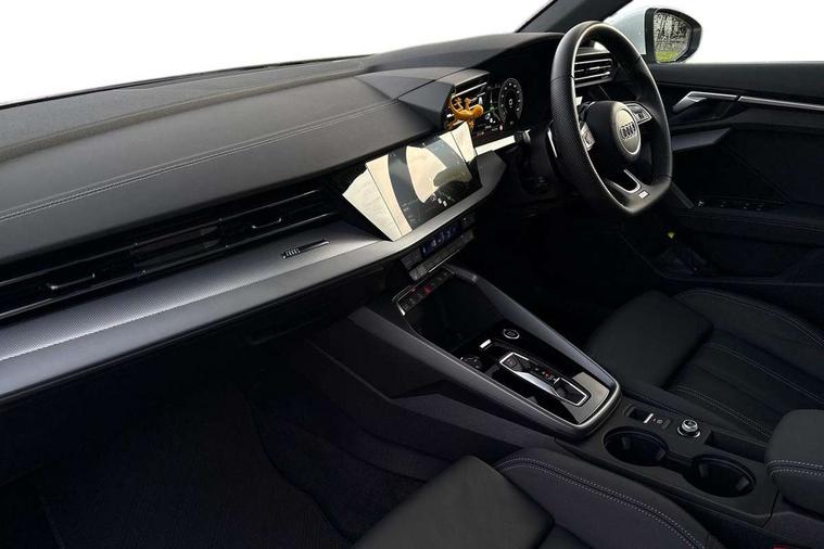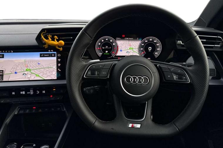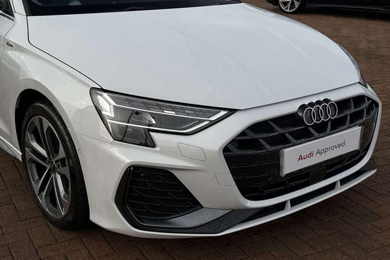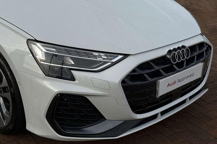 Adjustable speed limiter, Audi drive select, Audi smartphone interface with app store includes wireless Apple carplay, Android auto and Amazon alexa integration, Audi virtual cockpit plus - 12.3" full HD resolution dynamic digital instrument cluster, Automatic start/stop system with recuperation, Bluetooth interface, Camera based traffic sign recognition, Collision avoidance assistant, Cruise control, Distraction and Fatigue warning, e-Call (emergency call), Electromechanical power speed sensitive steering, Emergency assist, Lane departure warning system, MMI Navigation Plus with high resolution 10.1" colour touch screen display, Park Assist with parking system Plus, Service indicator, Trip computer, Voice control system with natural language interaction, Sports suspension, Audi Phonebox light with wireless charging, Audi sound system - 10 loudspeakers including centre loudspeaker and subwoofer, DAB Digital radio, USB ports with charging function in the rear, Acoustic glass windscreen, All weather light, Aluminium window trim, Auto dimming frameless rear view mirror, Automatic dynamic range control, Body colour exterior mirrors, Chrome exhaust tailpipes, Dipped beam, main beam, position light and turning light, Electrically adjustable/heated/folding/auto dimming door mirrors with integrated LED indications + kerb view function for passenger side, Exterior model badging, Front and rear side air inlets in grained matt black with dark liquid chrome frame, Front electric windows, Front radiator grill in high gloss dark chrome, Heat insulating glass windscreen, Illuminated door sills with aluminium inserts at the front with S logo, Intersection light, LED 3rd brake light, LED brake lights, LED daytime running x3, LED headlights with LED rear lights and dynamic rear indicators, LED rear number plate lights, LED reverse light, LED tail lights, Light and rain sensors, Manoeuvring light, Motorway light, Privacy glass - dark tinted rear window, rear door and side windows, Rear boot, Rear diffuser and grill in grained matt black with inlay in dark liquid chrome, Rear electric windows, Rear side wing doors, S line bumpers, Side S line emblems on front wings, Side sill trim in dark liquid chrome, Static cornering light, 12V socket and storage compartment in front centre console, 3 seat bench in 2nd row, 3 spoke flat bottomed leather multifunction sport steering wheel with gear shift paddles, 3-zone deluxe automatic air conditioning, 4 way electrically adjustable lumbar support for driver and front passenger, 40/20/40 split folding rear seat bench, Black cloth headlining, Black front and rear floor mats, Front and rear centre armrest in artificial leather with contrasting stitching on armrests and instrument panel, Front and rear headrests, Heated front seats, Height and reach adjustable steering wheel, Manual boot compartment lid, Manually adjustable front seats, Rear centre armrest with cupholder, S badging on the steering wheel, Seat side bolsters, Single front passenger seat, Stainless steel pedals and front footrest in black, Twin leather upholstery with front sports seats S embossed logo, Aluminium interior elements pack - A3, Multi-coloured LED interior lighting package with Multi-coloured contour lighting of instrument panel - A3, 3x3 point rear seat belts, Driver and front passenger airbag with passenger airbag deactivation, Electronic Stabilisation Control (ESC) including ABS, ASR and EDL, First aid kit with warning triangle and 2 safety vests, Front side airbags with head airbags and interaction airbag, Hill hold assist, Pre-sense front with pedestrian and cyclist detection, Seatbelt monitoring, Tyre pressure loss indicator, Anti theft alarm, Anti-theft wheel bolts, Electronically operated child locks, Immobiliser, Remote central locking with safelock, Black dashboard, Inlay in dark aluminium spectrum,