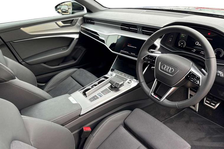 Audi connect safety and service (e-call), Audi connect with Amazon Alexa Integration, Audi drive select, Audi parking system plus - acoustic and visual park assist system for front and rear, Audi virtual cockpit, Automatic start/stop system with coasting functionality, Bluetooth interface, Camera based traffic sign recognition, Lane departure warning system, MMI navigation plus with 10.1" and 8.6" touch screens, Power operated tailgate, Progressive steering, Rear view camera, Service interval indicator, Smartphone interface includes wireless Apple carplay/Android Auto, Voice control system, 3 pin 10 amp domestic charging cable, 52 litre fuel tank, 7.4 kW onboard charger, Compact charging system, Hybrid propulsion system, Industrial connector CEE 32A, 230V, long and straight for the e-tron charging system, Mode 3 charging cable for public charging (AC), Sports suspension, Type 2 socket for AC charging, Audi front music interface, Audi sound system, Auxiliary input socket, DAB Digital radio, USB connection, Aluminium roof rails, Body colour rear roof spoiler, Body coloured door mirrors, Electric front/rear windows, Electrically adjustable heated and folding + automatically dimming exterior mirrors with memory function, Frameless auto dimming interior rear view mirror, Front intermittent wipers, Heat insulating darkened glass in side and rear windows, Heat insulating glass in windshield, LED rear lights with dynamic indicators, LED signature front daytime running light, LED third brake light, Matrix LED headlights, Matt black rear diffuser with diffuser strip and tailpipes in chrome, Matt black side air intake grille with inlay in matt aluminium, Privacy glass, Radiator grille in anthracite black matt, single frame in chrome and horizontal struts in matt aluminium silver, Rain and light sensors, Rear side wing doors, Rear wiper, 3 spoke high multi-function perforated leather steering wheel with contrast stitching and shift paddles, 4 zone deluxe automatic climate control, 40/20/40 split folding 3 rear seat bench in 3 parts with rear centre armrest, Audi phone box light, Black cloth headlining, Electrically adjustable front seats including seat height, fore/aft position, backrest angle and 4-way lumbar with memory for driver's seat, Front and rear floor mats, Front centre armrest, Front head restraints, Heated front seats, Height/reach adjust steering wheel, Illuminated door sill trims with S logo, Illuminated sun visors with vanity mirrors, Leather gear knob, Luggage compartment system, Rear headrests, Single front passenger seat, Stainless steel pedals and foot rest, Tool kit and car jack, LED Interior Ambient Lighting Pack - A6, Non smoking pack - A6, S line exterior style pack - A6, 3 point seatbelts on all seats, Airbags - Front side, front and rear including head, Audi pre-sense front, EBD - Electronic brakeforce distribution, Electromechanical parking brake, Electronic Stability Control (ESC) including ABS, ASR and EDL, Extended pedestrian protection measures, ISOFIX child seat mounting for front passenger seat and ISOFIX child seat mounting with Top Tether for outer rear seats, Manual child proof rear door locks, Seatbelt monitoring, Tyre pressure warning light, Warning triangle and first aid kit, Anti theft alarm with tow away protection, Anti-theft wheel bolts and wheel loosening detection, Immobiliser, Keyless Go, Remote central locking, Matt brushed aluminium inlays, Tyre repair kit,