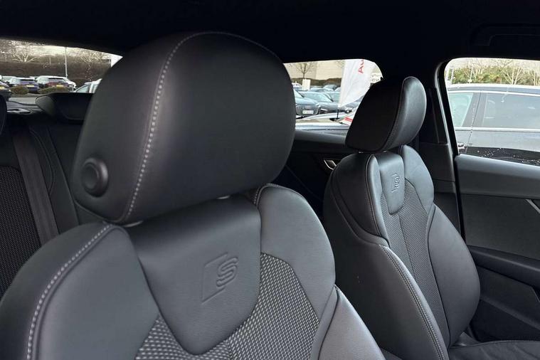3D map display, Audi connect navigation and infotainment includes innovative services, Audi connect remote and control connects your vehicle to your smartphone, Audi drive select: S tronic - power steering assistance + engine + gearshift (modes: comfort, auto, dynamic, efficiency, individual), Audi smartphone interface - Apple carplay/Android Auto, USB connect, 2xSDXC card readers, voice control for navi, telephone, music and 3rd party apps, Audi virtual cockpit, Automatic start/stop system with recuperation, Bluetooth interface includes bluetooth audio streaming, Camera based traffic sign recognition, Cruise control, Distraction and Fatigue warning, E-call, Jukebox hard drive memory for music (10GB), Lane departure warning, MMI navigation plus with 8.8" touchscreen, Natural voice recognition, Power operated tailgate, Progressive steering, Rear parking sensors, Sport suspension, 6 passive loudspeakers, DAB Digital radio, USB type C port, Audi beam, Auto dimming rear view mirror, Black window trims, Bumper in full body colour paint finish, Electrically adjustable, folding, auto dimming and heated door mirrors with integrated LED side indicators, Front windscreen with grey tinted sunband, LED daytime running lights, LED headlights with dipped beam, high beam, position lights, indicators, LED rear lights, LED third brake light, Privacy glass - dark tinted rear and rear side windows from B-pillar backwards, Rear side wing doors, Rear wiper, Variable front intermittent wipers, Wheel arch trims in manhattan grey, 12V socket in front, 3 seat bench in 2nd row, 3 spoke flat bottomed multi-function leather sport steering wheel with gear shift paddles, 4-way electric lumbar support for front seats including manual seat height adjustment for both front seats, 60/40 split folding rear seat bench, Black carpets, Black cloth headlining, Front and rear head restraints, Front centre armrest, Front sport seats, Front/rear floor mats, Height/reach adjust steering wheel, Illuminated door sill trims with S logo, ISOFIX child seat mounting in front passenger and rear outer seats, Manual air conditioning, Single front passenger seat, Stainless steel pedals, Black styling pack - Q2, 3x3 point rear seatbelts, 6 airbags - Front, curtain and front side airbags, Electromechanical parking brake, Electronic stabilisation control including ABS, ASR and EDL, Front passenger airbag deactivation, Hill hold assist, Pre-sense front with pedestrian recognition, Seatbelt monitoring, Tyre pressure warning light with visual and acoustic warning, Warning triangle and first aid kit, Anti theft wheel bolts, Electronically operated child locks, Remote central door locking, Thatcham category 1 alarm, Aluminium interior element, Black dashboard, Gloss black centre console, Matt brushed aluminium trim inlays, Tool kit,