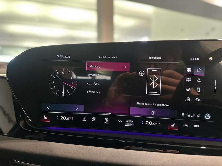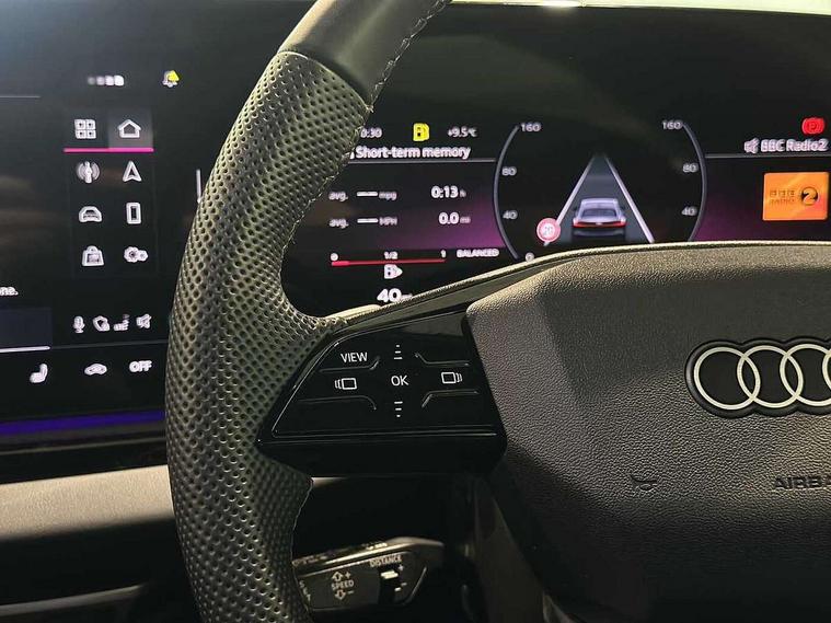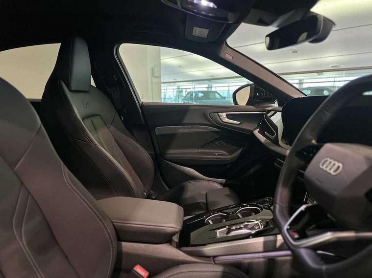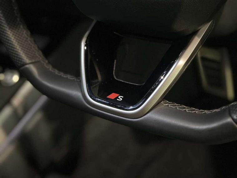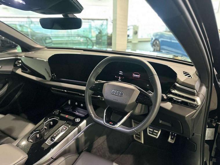 Adaptive cruise control, Advanced driver attention and fatigue montior, Audi application store, Audi assistant, Audi connect emergency call and service, Audi drive select, Audi smartphone interface, Audi virtual cockpit plus with 11.9" OLED colour display, Automatic start/stop system with coasting functionality, Camera based traffic sign recognition, Intersection assist, Lane departure warning, MMI navigation plus with high resolution 14.5" OLED touchscreen colour display, Park assist plus, Parking system plus with 360 display, Progressive steering with servotronic, Rear view camera, Swerve assist and turn assist, Traffic sign based speed limiter, Sports suspension lowered by 20mm, 2 USB-C ports in both the front and rear, Audi sound system impressive sound with 10 loudspeakers including centre speaker and subwoofer, 6-channel amplifier with a total output of 180 watts, DAB digital radio reception, Smartphone compartment with wireless charging, Aluminium window trims, Auto dimming rear view mirror, Body colour door mirrors, Door mirrors - electrically adjustable, heated, folding and auto dimming on both sides, Front and rear electric windows, Front door sill trims with aluminium inlays, illuminated with 'S' logo, High beam assist, LED headlights Plus incl. digital daytime running lights, turning light, all-weather light, motorway light, manouevring light and intersection light, LED rear lights pro incl. dynamic rear indicators and illuminated light strip with animated coming and leaving home function, LED third brake light, Privacy glass, Rear and side windows with heat insulating glass, Rear boot, Rear side wing doors, S Line badges on the front wings, S line bumpers, radiator grille and diffuser in phantom black and diffuser insert in matt anthracite, White rhombus logo projection light in exterior mirrors, Windscreen with acoustic glazing, 3 rear headrests, 3 seat rear bench, 3 spoke leather steering wheel with multi-function buttons with touch control, flattened on top and bottom, with S badging and contrast stitching, 3-zone automatic climate control, 40:20:40 split folding rear seat bench with centre armrest and cup holders, Comfort front centre armrest, Front and rear floor mats, Front seats with manual adjustment for position and 4-way electric lumbar support, Front sport seats with integrated headrest and S embossed logo, Headlining in black cloth, Heated front seats, i-Size child seat mounting on the front passenger side and outer rear seats, i-Size and top tether on the outer rear seats, Luggage compartment lid, electrically opening and closing, Manual steering column height and depth adjustment, Single front passenger seat, Stainless steel pedals and footrest, Steering wheel grips in perforated leather and shift paddles, Ambient lighting package plus - A5, 3x3 point rear seat belts, Driver airbag, Electric child safety locks, First aid kit with warning triangle and vests, Front emergency brake assist, Front passenger airbag, Front passenger airbag deactivation, Front side airbags with head airbag system and front interaction airbag, Hill hold assist, Seat belt monitoring with rear seat occupant reminder, Tyre pressure loss indicator, Anti theft alarm, Anti-theft wheel bolts, Keyless Go, Accent surfaces and control buttons in gloss black, Black dashboard with contrast stitching, Inlays in matt brushed aluminium with linear embossing, anthracite, Softwrap in leatherette with contrast stitching, Upper and lower interior elements in leatherette, Tyre repair kit,