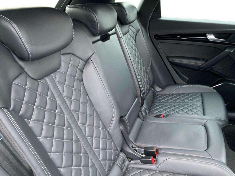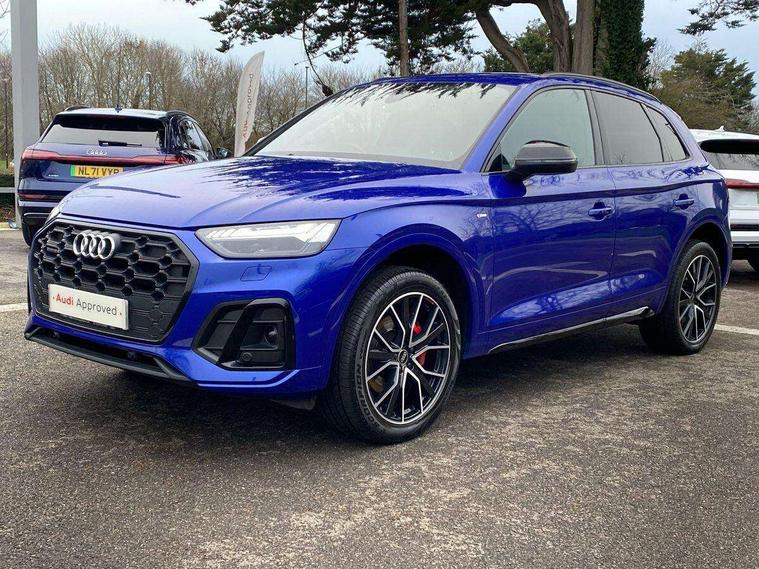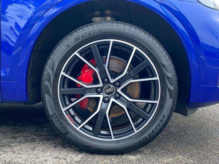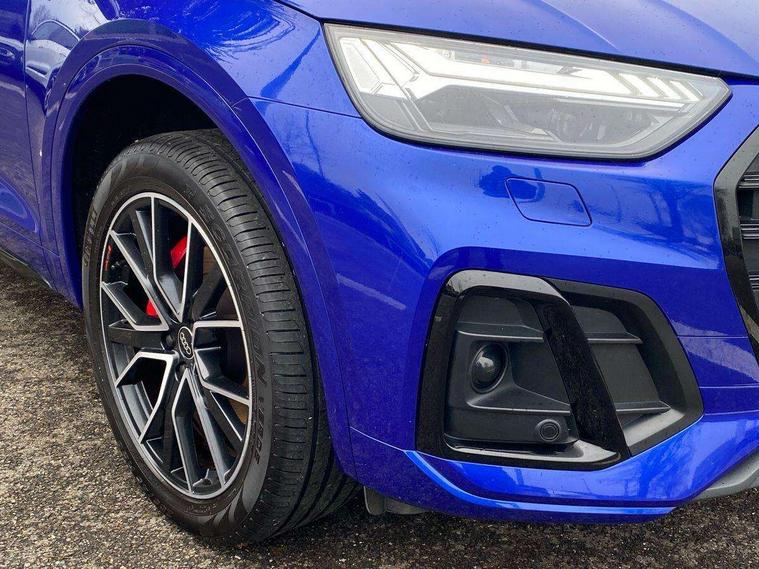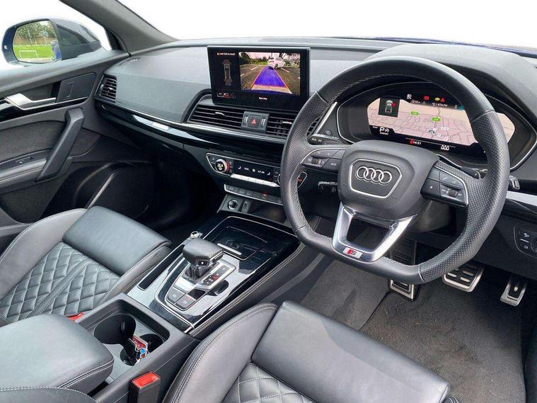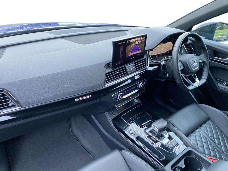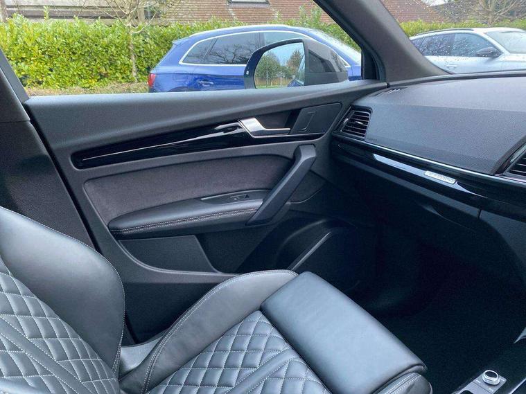 Acoustic front and rear parking sensor, Audi connect safety and service (e-call), Audi connect with Amazon Alexa Integration, Audi drive select, Audi virtual cockpit plus with 12.3" screen and three different layout designs, Audi wireless smartphone interface, Automatic start-stop system with coasting functionality and efficiency programme, Bluetooth interface, Electro - mechanical power assisted steering, MMI navigation plus with 10.1" touch screen, Power tailgate, Reversing camera, Service interval indicator, Voice control system with Audi hotword activation "Hey Audi", Quattro on demand, S line sports suspension, 8 loudspeakers, DAB Digital radio, Acoustic windscreen, Audi matrix LED headlights with dynamic front and rear indicators, Audi rings at front and rear in black, Audi rings decal on rear doors, Auto dimming door mirrors, Auto dimming frameless rear view mirror, Automatic headlight adjustment, Automatic headlights and windscreen wipers, Black roof rails, Body colour bumpers, Body colour underbody protection, Chrome plated exhaust trims, Daytime running lights, Door sills in Selenite silver, Electric adjustable/heated/folding door mirrors, Front air inlet surrounds in anthracite black, Front and rear electric windows, Headlight washers, High gloss black B pillar trims and triangular rear door trim, High level LED brake light, Rear chrome trim strip below lights, Rear privacy glass and rear side windows, Rear side wing doors, Rear wiper, Roof bars, S Line rear spoiler, 2 x USB charging port with aux input socket, 3 rear headrests, 4 way electric lumbar support for driver and front passenger, 40:20:40 split folding 3 rear bench seat in 2nd row with rear centre armrest, Black cloth headlining, Comfort front centre armrest, Contrast stitching on seats, steering wheel and gear lever gaiter, Deluxe 3 zone electronic climate control, Electrically adjustable front seats, Fine Nappa leather upholstery with diamond pattern contrast stitching + front sport seats with S embossed logo, Front/rear floor mats, Gear lever in black leather, Heated front seats, Height adjustable front head restraints, Height/reach adjustable steering column, Illuminated door sill trims with S logo, Luggage compartment cover, Rear seat bench plus-adjust for forwards/backwards position/backrest angle, cupholders in the armrest, load through hatch and remote backrest release, Removable luggage compartment floor, Single front passenger seat, Stainless steel pedals, Sunvisors with vanity mirrors, Black styling package - Q5 Edition 1, Extended interior upholstery pack - Q5, Extended LED Interior multi coloured Lighting Pack - Q5, 3 point seatbelts on all seats, 6 airbags - Driver, front passenger, curtain and side airbags, Electrically operated child locks on rear doors, Electromechanical parking brake, Electronic stabilisation control including ABS, ASR and EDL, First aid kit with warning triangle and vests, Front and rear brake calipers painted in red, Front passenger airbag deactivation, Hill descent control, Hill hold assist, ISOFIX child seat mounting for front passenger seat and ISOFIX child seat mounting with Top Tether for outer rear seats, Multi collision brake assist, Pop-up bonnet for pedestrian protection, Pre sense city, Seat belt force limiter, Seatbelt monitoring, Tyre pressure warning, Anti theft alarm, Anti-theft wheel bolts, Keyless Go access/ignition system, Remote central locking, Air vents inserts and centre console in gloss black, Piano black finish inlay,