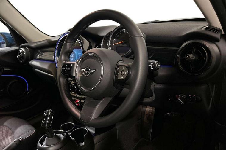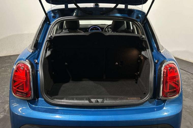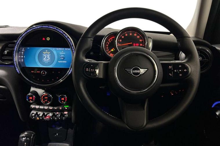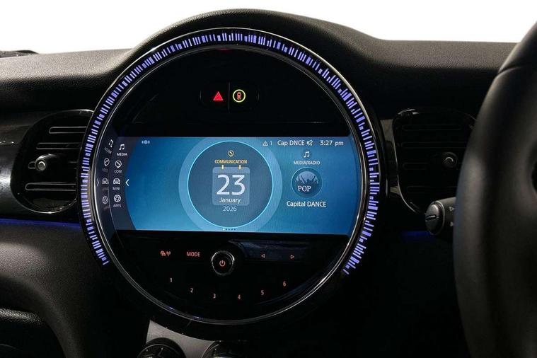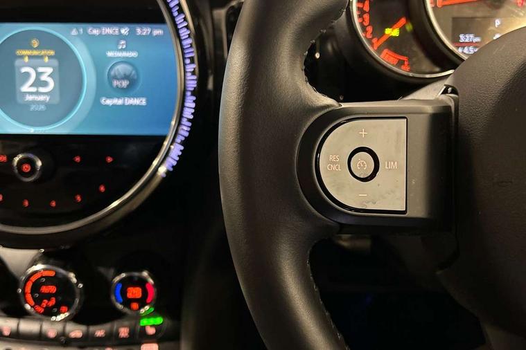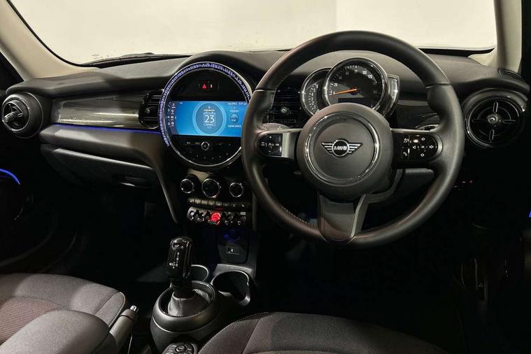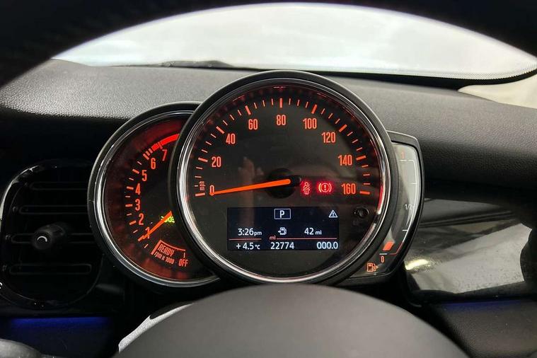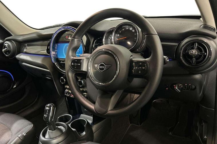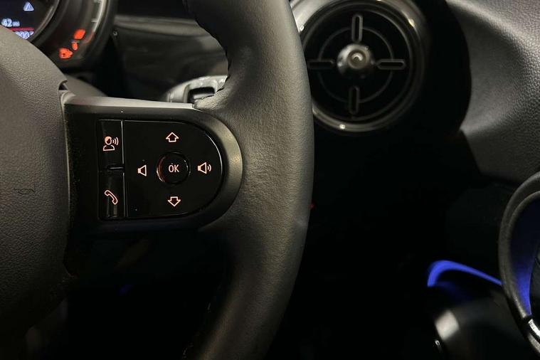 Apple CarPlay, Automatic start/stop function with brake energy recuperation, Compatible mobile phone bluetooth with audio streaming, Electro-mechanical speed dependant steering assistance, Flexible car sharing preparation, Mini E-call, MINI TeleServices, On board computer, Service interval indicator, Double Vanos system, Fully variable valve control, Gear change indicator display, High precision injection, Performance Control, Steptronic transmission with double clutch, 8.8" touchscreen with LED ring, FM tuner and DAB digital radio, 3rd brake light, Automatic headlight activation switch, Body colour fuel filler cap, Chrome border high gloss black slats radiator grille, Dynamic brake lights, Electric front+rear windows, Exhaust tailpipe on left with chrome finisher, Heated rear window, Heated windscreen washer jets, Metal door sill strips with MINI imprint, Model logo Cooper on right of tailgate, Rain sensor window wipers, Rear fog lights, Rear LED lights with union jack design, Rear side wing doors, Rear window wiper, Side scuttle panel with integrated indicator, Sun/heat protection glass, White indicator lenses, 12V Accessory socket in centre console, 3 seat bench in 2nd row, 4 lashing eyes in luggage compartment, 60/40 split folding rear seat, Ambient lighting, Carbon black colour line - Knee roll and door armrest, Chrome interior highlights, Cupholders, Front and rear head restraints, Front and rear isofix with front passenger airbag deactivation, Front and rear velour floor mats, Glove compartment, Height and length steering column adjustment, Interior lighting with 12 different colours across the dashboard, underneath door bezel with illuminated laser-engraved design on central display, Leatherette gearshift lever and handbrake gaiters, LED reading lights, vanity mirror lights, front foot well light and spotlight on front seats, Mechanical seat adjustment - forward/back & backrest for front seats and driver seat height adjust, Multifunction steering wheel, Satellite grey headlining including grab handles and clothes hooks, Single front passenger seat, Sport leather steering wheel with speed limiter and audio/communication controls, Storage compartments in doors, Sunvisors with vanity mirrors, 3 point seatbelts on all five seats, 6 Airbags - front, side, head and seat belt tensioners, Anti-lock braking system (ABS), Child locks on rear doors, DSC - Dynamic Stability Control, Front and rear disc brakes, Hill start assist, Single tone fanfare horn, Tyre pressure monitoring system, Alarm system with tilt sensor, monitoring doors, bonnet interior and tailgate, Electronic vehicle immobiliser, Start/stop toggle with keyless go, Piano black interior trim, Tool kit, Tyre repair kit,