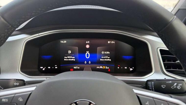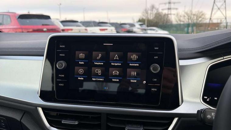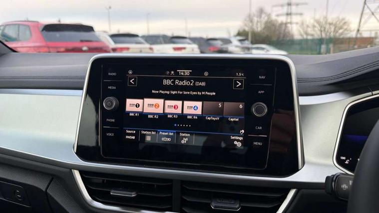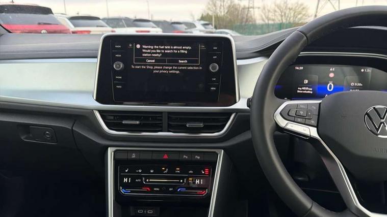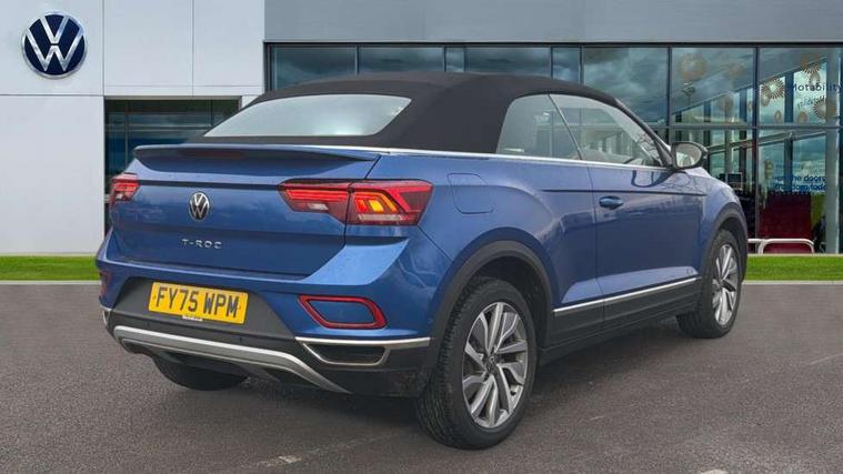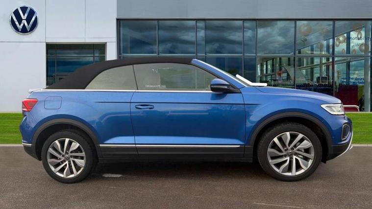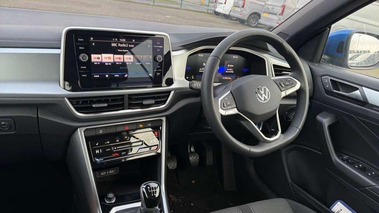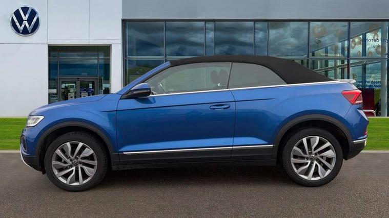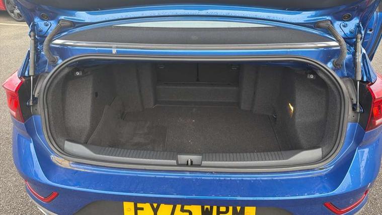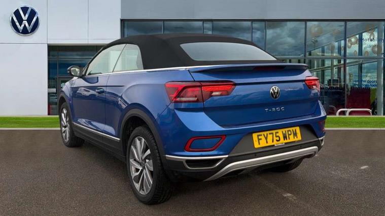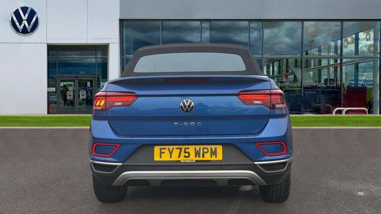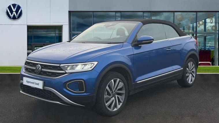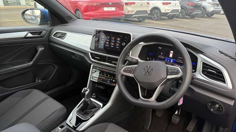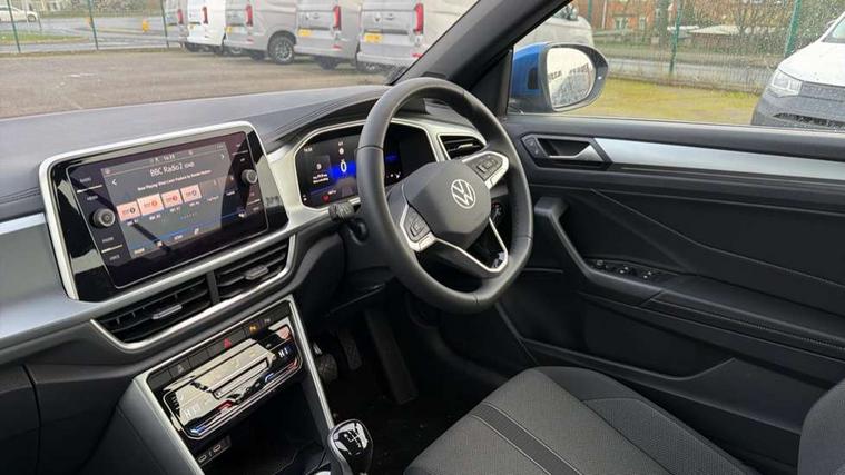 Adaptive cruise control and speed limiter, Advanced driver attention and drowsiness monitor, Brake pad wear indicator, Car information display, Driver tips and journey analysis, Dynamic road sign display, Emergency call service, Modified key software - reduce switch off time for key status change to Long no motion, Multifunction computer with visual gear change recommendation for fuel consumption, Multifunction front facing camera, Online services, Park assist including front and rear parking sensors, Speedo and rev counter, electronic odometer, trip, service interval display and exterior temperature gauge, Start/stop system with brake energy recovery, Tailgate/trunk lid release from outside, Warning sound and light for front seatbelts unfastened, Wireless App-Connect for apple Carplay and android Auto, Digital radio reception (DAB), Diversity antenna for FM reception, Mobile phone interface with inductive charging feature, Music playback - MP3, WMA and AAC files, SMS functionality - read, compose and send SMS messages using touch-screen display, Title and cover art display, USB-C Interface and USB charging socket, We Connect and We Connect Plus functionality, Ambient lighting with logo projection, Auto dimming interior rear view mirror, Automatic hazard lights activation under emergency braking, Automatic headlight control with LED separate daytime running lights with coming/leaving home function, Black roof, Body colour door handles, Body colour rear boot spoiler, Body coloured bumpers and radiator grille with chrome trim and front fog lamps with chrome bezel, Chrome effect left and right trapezoid exhaust tailpipe fascia surround, Dark red rear combination lamps in LED technology, Dusk sensor, Exterior mirrors aspherical on driver side, convex on front passenger side, Headlight range control, Heat insulating glass windscreen, LED 3rd brake light, LED rear number plate lights, Power operated canvas convertible top, Power windows with comfort operation and circuit breaker, Rain sensor, Rear boot, Rear exhaust tailpipe, Rear fog light on one side and reversing lights on both sides, Remote electrically foldable door mirrors, puddle lights and reverse activated passenger door mirror, Volkswagen roundel, Windscreen wiper with intermittent wipe light, Without exterior ambient lighting, 12V socket in centre console storage area, 2 LED front reading lights, 2 seat bench in 2nd row, 50:50 Split folding rear seat backrests with fixed rear seat bench, Air care climatronic air conditoning system with active combination filter and 2-zone temperature control, Black door lower parts with chrome trim, Chrome plated surround to light, mirror and window switch, Door and side trim panel with leatherette insert, Easy entry backrest release, Front and rear carpet mats with black stitching, Front centre armrest, Front cupholders x 2, Front door pockets, Front seat back storage pockets, Heated multi function steering wheel, Height/reach adjust steering wheel, Instrument lighting, white adjustable panel illumination, Interior light delay, Interior light in footwell, Interior lighting with switch off delay and contact switches on all doors, Interior white ambient lighting and surround lighting, Isofix child seat preparation, Lockable glove compartment with light, Luggage compartment lighting, Rear head restraints, Single front passenger seat, Sun visors with illuminated vanity mirrors, Driver assistance pack without proactive passenger protection - T-Roc cabriolet, 2 x 3-point seatbelts/outer rear seats with ECE label, Driver and front passenger airbag with front passenger airbag deactivation, Driver and front passenger safety-optimised head restraints, Drivers seatbelt reminder, Electronic parking brake, Electronic Stability Control (ESC) including ABS, ASR and EDL, Front and rear disc brakes, Front assist with autonomous emergency braking, Pedestrian monitoring, Predictive pedestrian protection, Rigid safety cell with front and rear crumple zones, Side airbag/thorax airbag system, for front passengers, Three point height adjust front seatbelts + pretensioners, Two tone horn, Tyre pressure loss indicator, Volkswagen roadside assistance, Anti-theft alarm system with interior protection and central locking system with SAFELOCK, radio remote control and 2 remote control folding keys, Electronic engine immobiliser, Trims for alloy wheels,