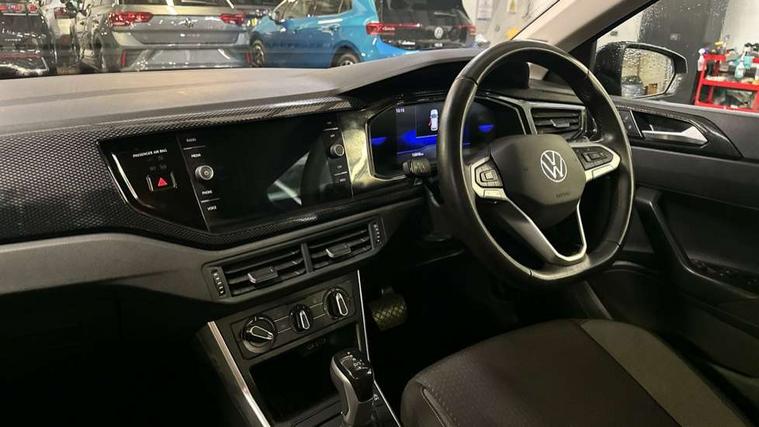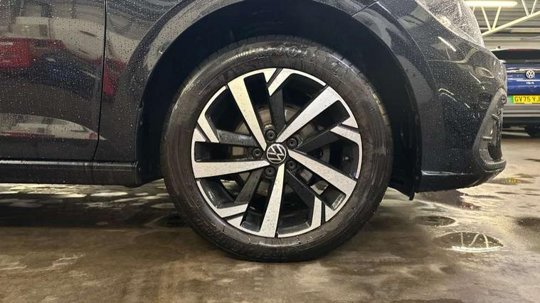 Advanced driver attention and drowsiness monitor, Bluetooth mobile phone interface, Dynamic road sign display, Emergency call service, Multifunction front facing camera for distance control, Park distance control, Power assisted speed sensitive steering, Predictive adaptive cruise control without follow-to-stop and speed limiter, Preparation for navigation system with media and internet package, Preparation for We connect and We connect plus, Rear view camera, Speedo and rev counter, electronic odometer, trip, service interval display and exterior temperature gauge, Standard rear axle, Travel Assist - Lane keeping system and traffic jam assist, Travel assist including emergency assist, Trip computer, Warning signal and warning light for front and rear seatbelts not fastened, Washer fluid level indicator, Wireless app connect, Front wheel drive, Rear shock absorpion, Start-stop system with battery regeneration (recuperation - energy recovery during braking), DAB Digital radio, Diversity antenna for FM reception, Front and rear 6 speakers, Automatic dimming interior rear view mirror, Automatic headlight control with LED separate daytime running lights with coming/leaving home function, Body colour bumpers with chrome inserts, Body colour door handles, Body colour door mirrors, Electric front windows, Engine badge deletion, Headlight range adjustment, Heat insulating and laminated safety glass windshield, LED Headlights, LED rear combination lamps, Power folding adjustable/heated exterior mirrors and front passenger exterior mirror lowering function, Rain sensor, Rear electric windows, Rear fog light, Rear side wing doors, Rear tinted glass from B-pillar backwards approx 65% tinted, Rear windscreen washer and wiper with interval delay, Third brake light, 12V power socket in centre console, 2 front and 2 rear reading lights with switch off delay and dimmer, 2 USB-C ports in the front, 2 USB-C charging sockets on the center console in the rear, 3 rear head restraints, 60/40 split folding rear seat and rear seat bench not split, Ceramique roof lining, Chrome plated radiator grille inserts, air vent surrounds and light switch surrounds, Door and side trim panel, Driver and front passenger seat height adjustment, Driver/passenger sunvisors with illuminated vanity mirrors, Front centre armrest, Front seat backrest storage pockets, Front standard seats, Handbrake lever handle in leather, Hartley/Thomas cloth upholstery, Headliner in recycled material, Isofix child seat preparation easy-fit (for two outer rear seats, and front passenger seat) compatible with I-size, Leather trimmed gear knob, Luggage compartment cover, Luggage compartment lighting, Removable luggage compartment floor, Single front passenger seat, Standard climatic zones, Standard pedal cluster, Three spoke leather wrapped multifunction steering wheel with shifting paddles, Light and vision pack - Polo, 3 point height adj front seatbelts + pretensioners, 3 point seat belt for centre rear seat, 3 point seatbelts, outer rear with ECE lable, ABS, Driver and front passenger airbag with front passenger airbag deactivation, Drivers and front passengers safety optimised head restraints, ESC (Electronic stability control) + EDL (Electronic Differntial lock) and ASR (Traction control), Extended and predictive pedestrian/ cyclist protection, Front assist with autonomous emergency braking (for Adaptive Cruise Control ACC up to 130 mph), Front curtain and side airbags with center airbag, Front disc brakes, Hill hold control, Manual child lock in rear doors, Rear drum brakes, Single tone horn, Tyre pressure loss indicator, Alarm with interior protection, Anti-theft alarm system with interior monitoring, backup horn, and towing protection, Anti-theft wheel bolts, Electronic engine immobiliser, Lava stone black gloss/matt decorative inserts in dash and front door panels, 16" Torsby alloy wheels, Low rolling resistance tyres,