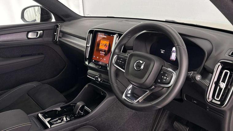 12.3" Progressive Driver Display, 9" centre console portrait touch screen, Adjustable steering wheel force, Android auto (Wired), Apple carplay (wired), Bluetooth handsfree system, Cruise control, Driver alert control, E-call, Front park assist, Google automotive services - Enabled entertainment apps, navigation with google maps, voice recognition with google assistant, Hands free power tailgate, Intelligent speed assistance, Lane keeping aid, Oncoming Lane Mitigation, Rear park assist, Speed sensitive steering, Volvo cars services with app - Driving journal, emergency and breakdown call, engine remote start, remote door locking/unlocking and vehicle dashboard, Wireless/Inductive Mobile Phone Charging, Automatic transmission with start/stop and manual change functions, Dynamic chassis, DAB Digital radio, Steering wheel mounted remote controls, Adaptive brake lights with high level LED brake lights, Auto dimming interior mirror, Automatic headlamp levelling, Automatic LED Headlights + Active high beam incorporating daytime running lights, Front aluminium tread plates, Front and rear electric windows, High gloss black front and rear skid plate, High gloss black front bumper deco, High gloss black mesh front grille with high gloss black surround, High gloss black window trim, Home safe and approach lighting, Integrated roof rails in high gloss black, LED front fog lights, Puddle lights, Rain sensor with automatic windscreen wiper activation, Rear side wing doors, Rear wiper, Roof antenna, Roof spoiler, Visible VIN plate, 12V socket in front tunnel console and luggage compartment, 2-Zone electronic climate control with CleanZone air quality system and pollen filter, 3 seat bench in 2nd row, 3 Spoke tailored steering wheel with chrome trim, 60/40 versatile split folding rear seat, Centre console cupholders and storage, Flexible load floor and grocery bag holder, Floor mats, Front cabin courtesy lights, Front door pocket, front cupholder, ambient front door, rear reading, rear courtesy, instrument panel and tailgate lighting, Front footwell illumination, Front headrests, Front reading lights, Front seat cushion extensions, Front side step illumination (under door), Glovebox bag hook, Heated front seats, Height adjustable passenger seat, Height/reach adjustable steering column, High gloss centre tunnel deco, Illuminated glovebox, Illuminated luggage compartment, Illuminated vanity mirrors + ticket holder, Integrated waste bin, Isofix attachments on outer rear seats, Load cover, Load protection net, Multi directional lumbar support for driver and passenger seat, Power driver seat with memory + exterior mirrors memory, Rear armrest with cupholders, Rear headrests, Single front passenger seat, Underfloor cargo storage, Climate pack without heated front seats - XC40, 3x3 point rear seatbelts, City safety with steering support with Pedestrian + cyclist + front collision warning with full auto brake and rear auto brake, Driver and passenger airbags, Drivers knee airbag, Electronic parking brake with auto hold, First aid kit, Front and outer rear seatbelt reminder and pretensioners, Front seats SIPS airbags, Hill descent control, Hill start assist, Inflatable curtain, Passenger airbag cut-off device, Power child locks on rear doors, Road sign information display, Run off Road Protection, SIPS (Side Impact Protection System), Slippery road and hazard light alert, Stability and Traction Control with Spin control, Engine Drag Control and Corner Traction Control, Tyre pressure monitoring system, Vehicle deceleration control with Anti-lock Brake System, Electronic Brake Distribution and Emergency Brake Assist, Warning triangle, WHIPS whiplash protection system - front, 2 x Key integrated remote control central locking including with deadlocking system and auto open/close windows, Anti-theft alarm including immobiliser/volume sensor + level sensor, Keyless drive includes keyless entry and keyless start, Locking wheel nuts,